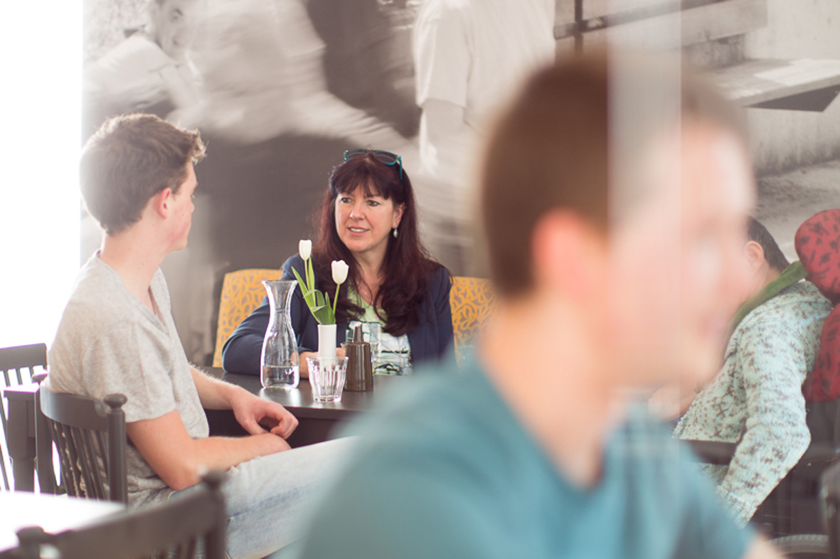 Besuch im Café Viele Leute