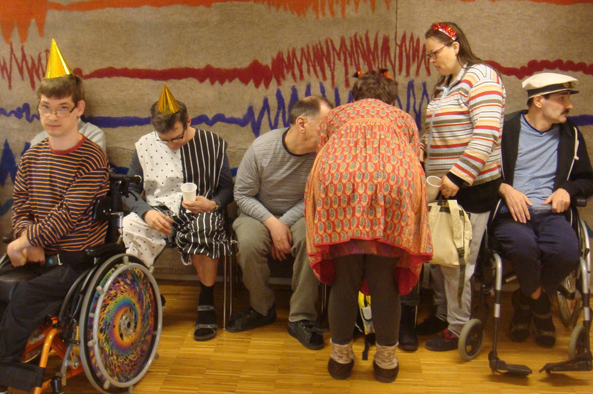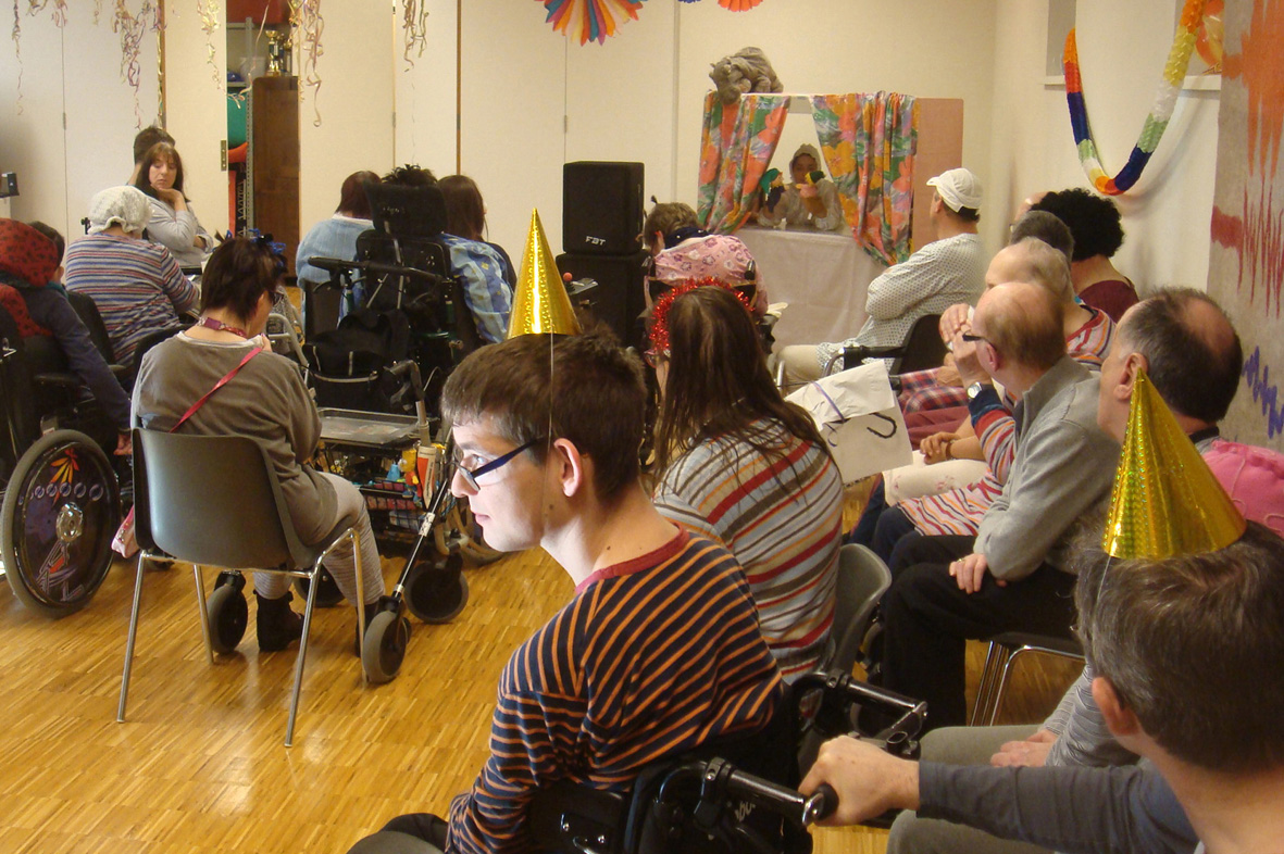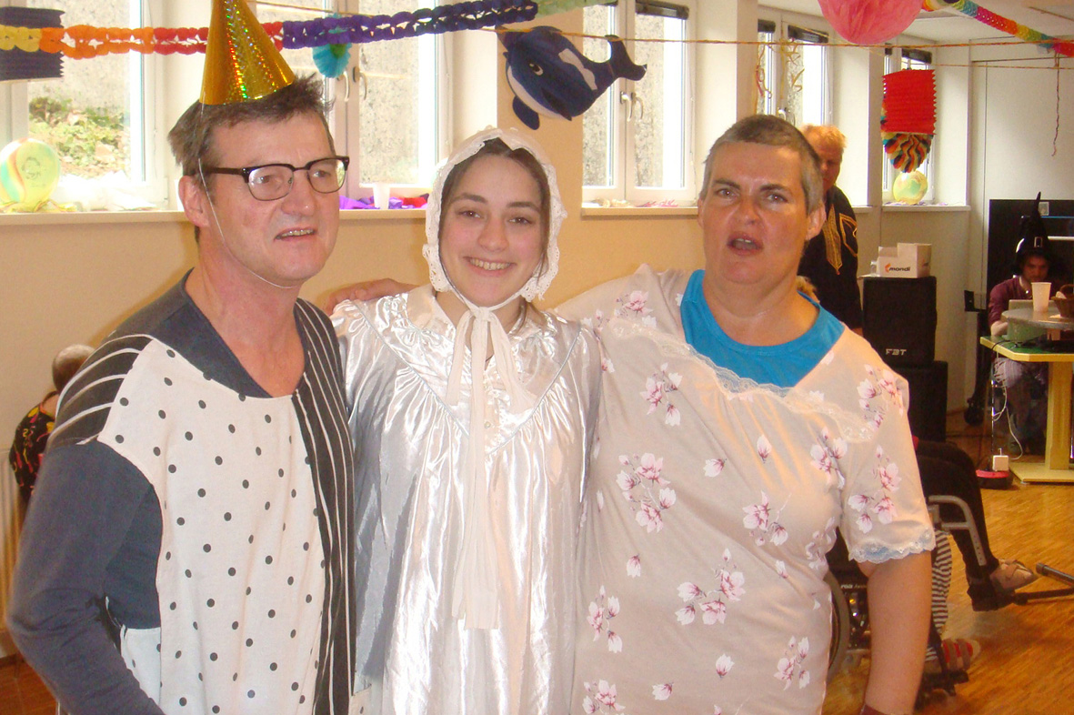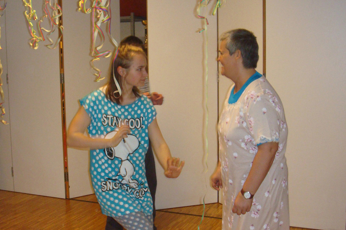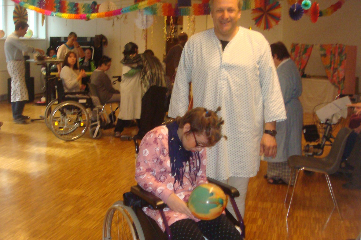 Mit guter Laune und wunderbaren Faschingskrapfen genossen die Teilnehmerinnen und Teilnehmer das Fest. Polonaise tanzend, bewegte sich die illustre Gesellschaft durch den bunt geschmückten Bewegungsraum. Einer der Höhepunkte war eine Puppentheateaufführung. Auch die WerkstättenmitarbeiterInnen waren mit dem Besuch und dem Verlauf der von ihnen gestalteten Pyjamaparty sichtlich zufrieden :)