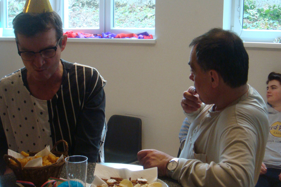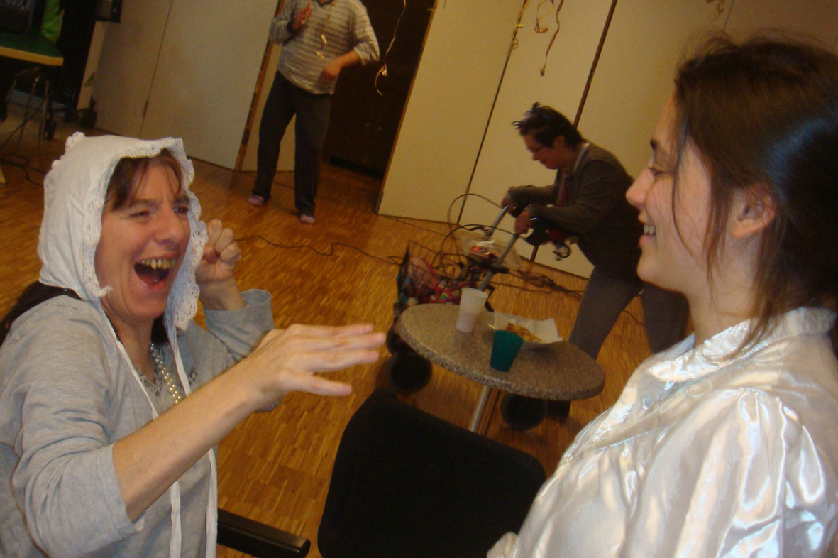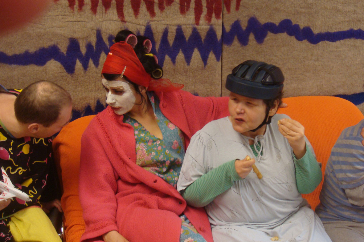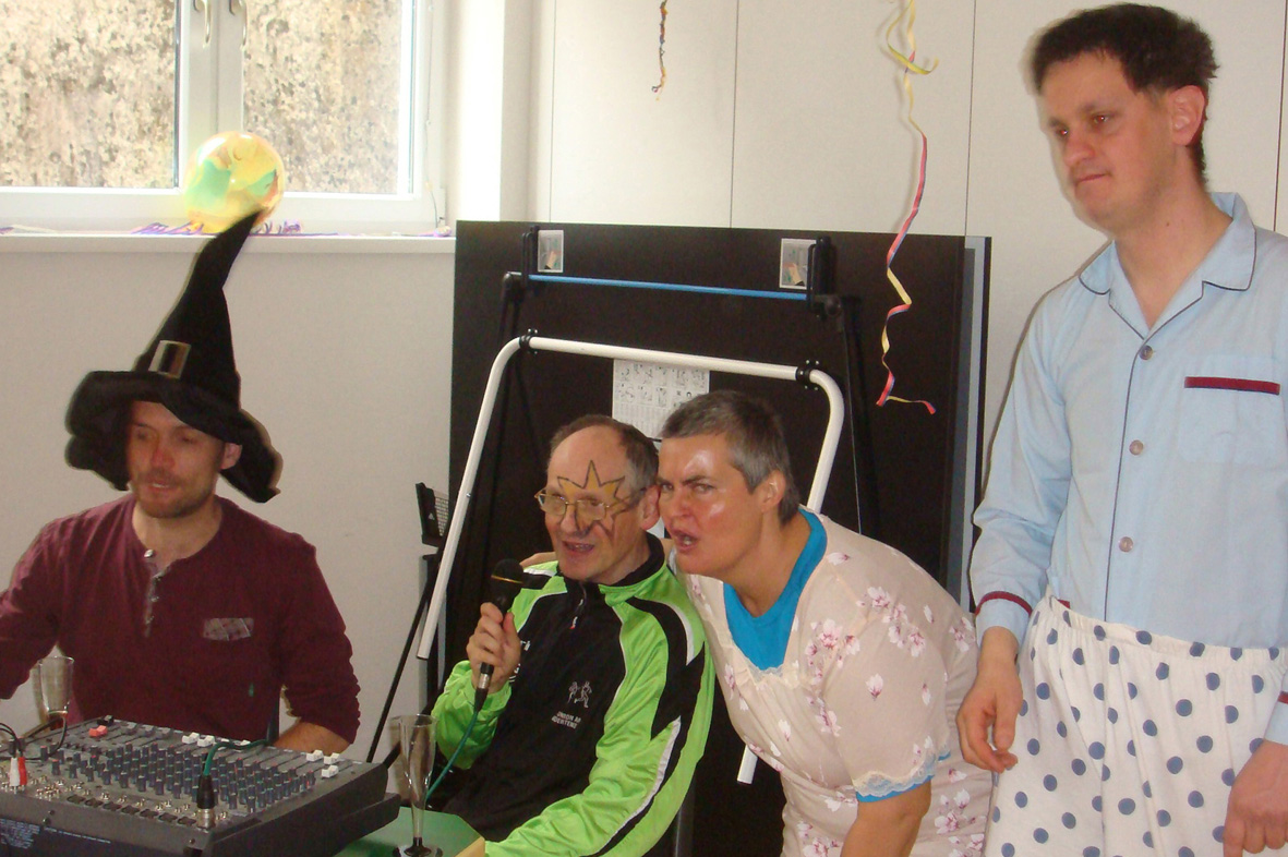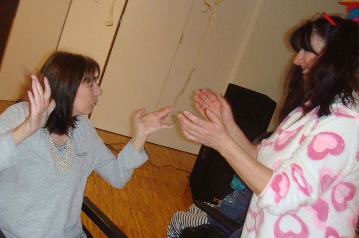 Mit guter Laune und wunderbaren Faschingskrapfen genossen die Teilnehmerinnen und Teilnehmer das Fest. Polonaise tanzend, bewegte sich die illustre Gesellschaft durch den bunt geschmückten Bewegungsraum. Einer der Höhepunkte war eine Puppentheateaufführung. Auch die WerkstättenmitarbeiterInnen waren mit dem Besuch und dem Verlauf der von ihnen gestalteten Pyjamaparty sichtlich zufrieden :)