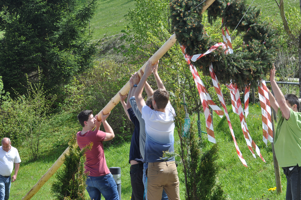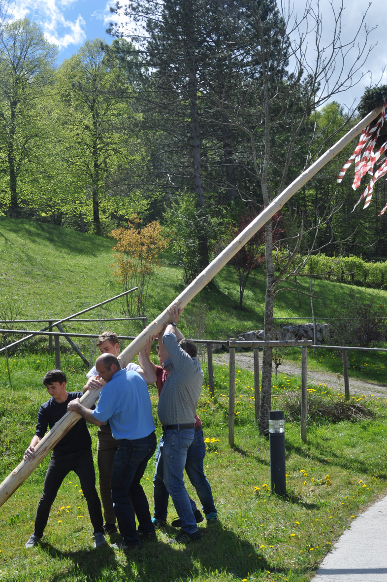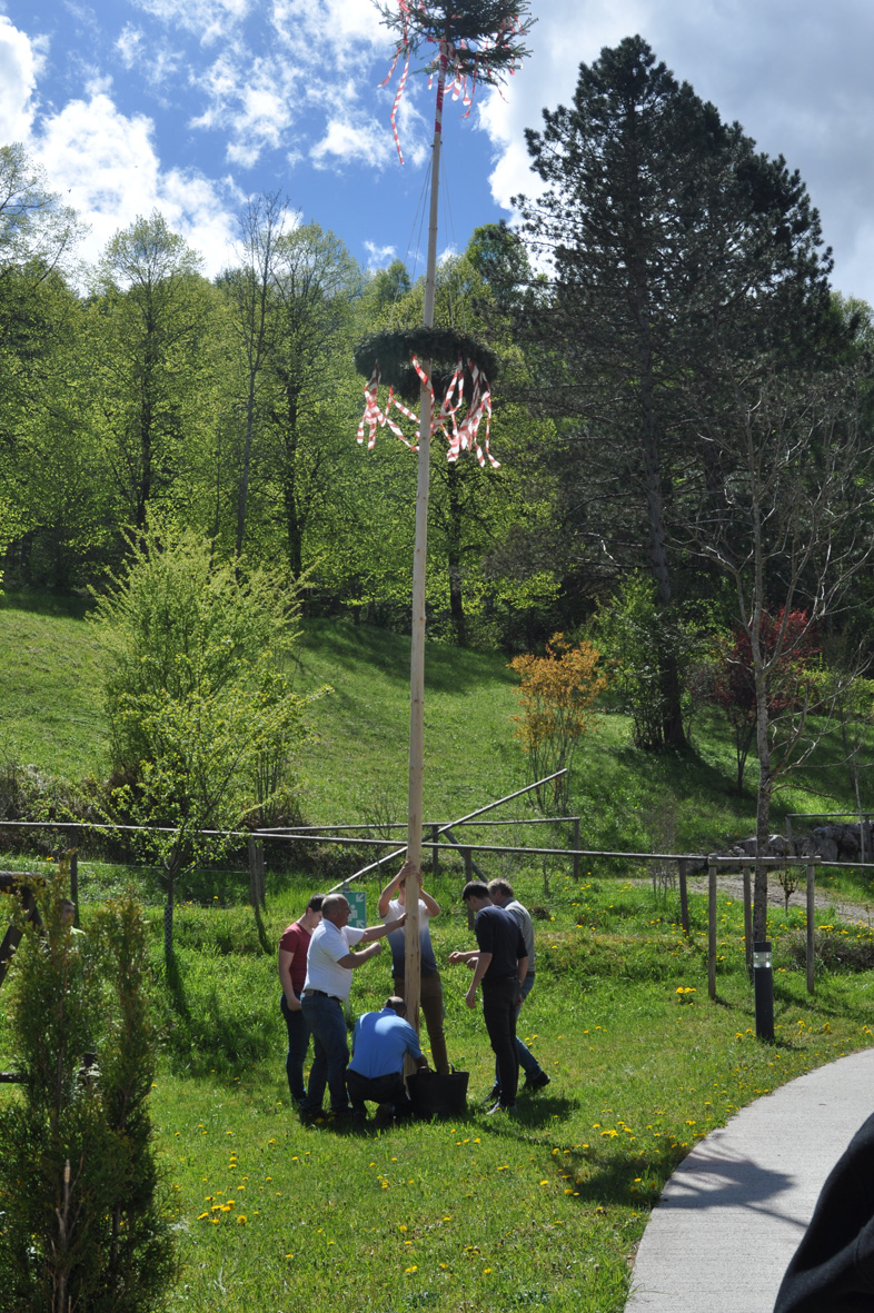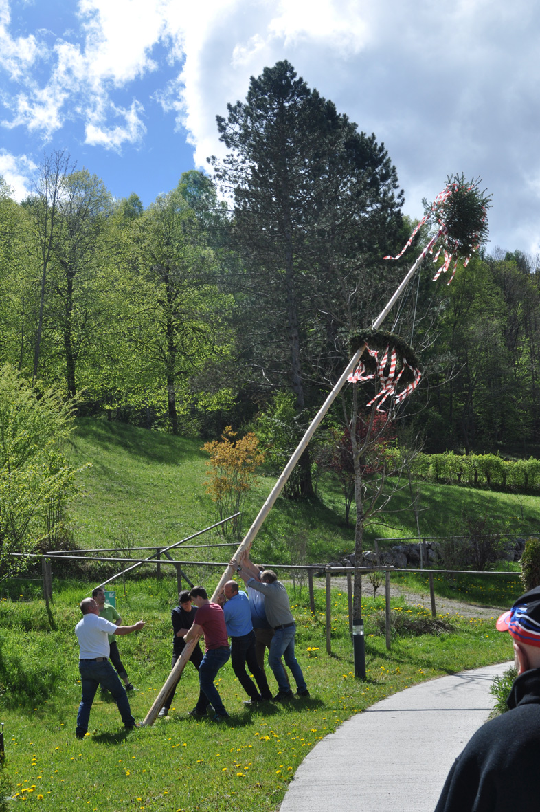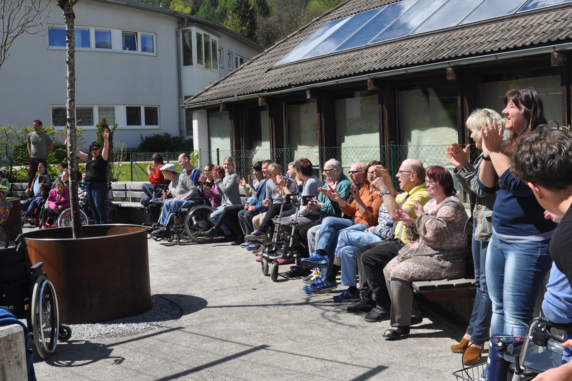 Die helle Sonne im Zwischenareal der beiden Wohnhäuser, ob seiner Form das "Auge" genannt, blendete manche fast ein wenig, ein paar starke Arme stellten den Baum auf, während Ziehharmonika-Musik erklang. Wenig später gabs im Innenbereich noch etwas mehr Musik und Kuchen plus Kaffee.