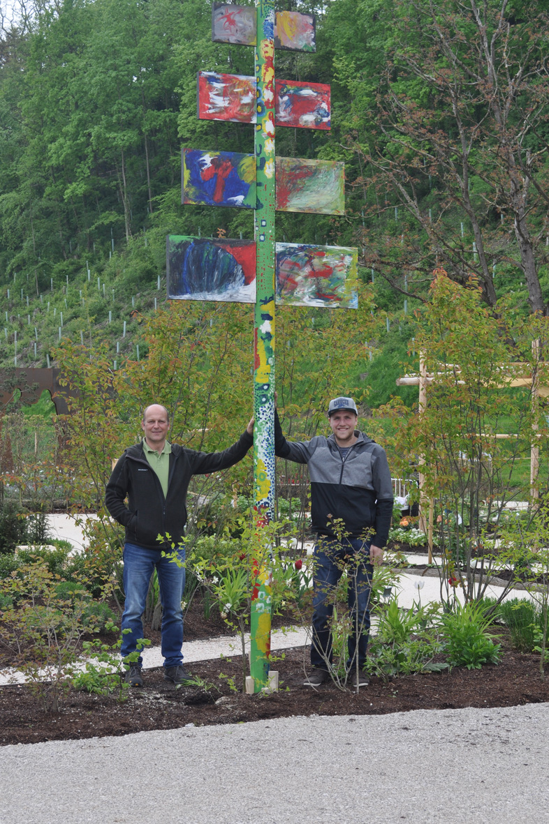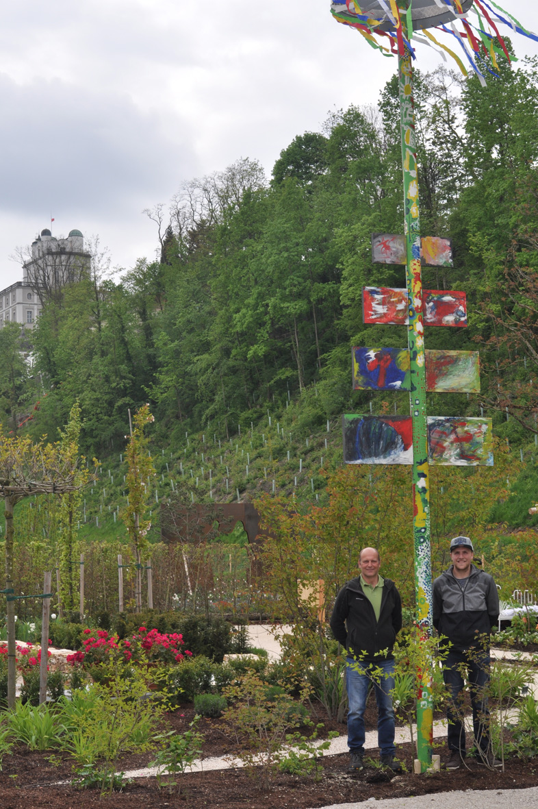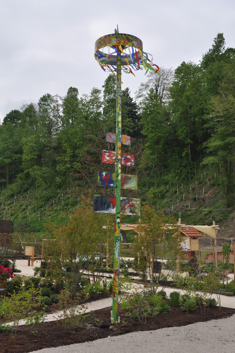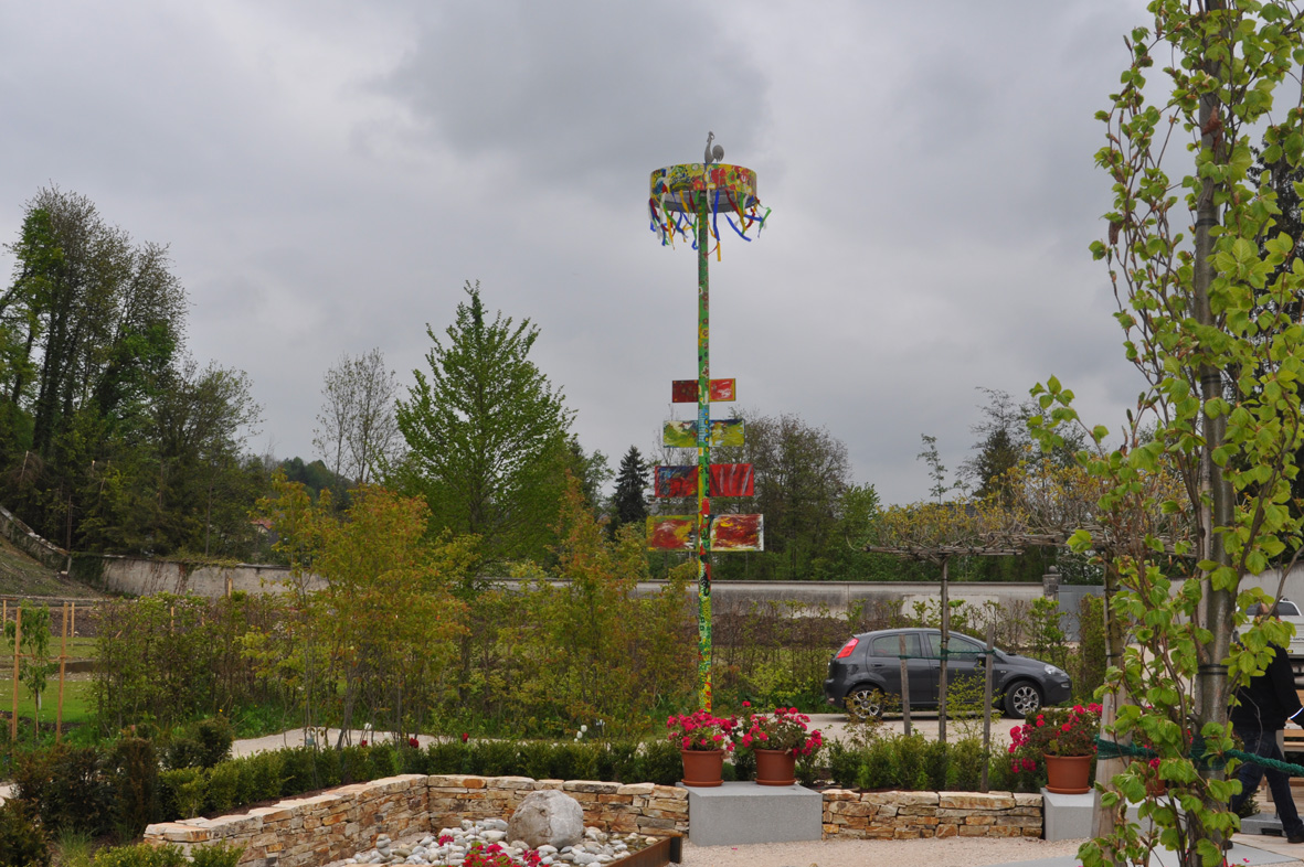 Der von Mag. Manfred Schöller im Fach Klang & Farbe gemeinsam mit unseren KlientInnen künstlerisch gestaltete Maibaum ist auf der Dendlleiten bereits von Weitem prominent zu sehen. In der Folge, wenn das Wetter es zulässt, wird er gebührend mit unseren KlientInnen eingeweiht werden.