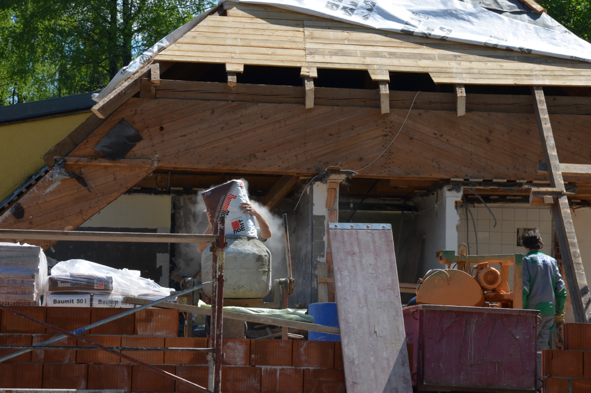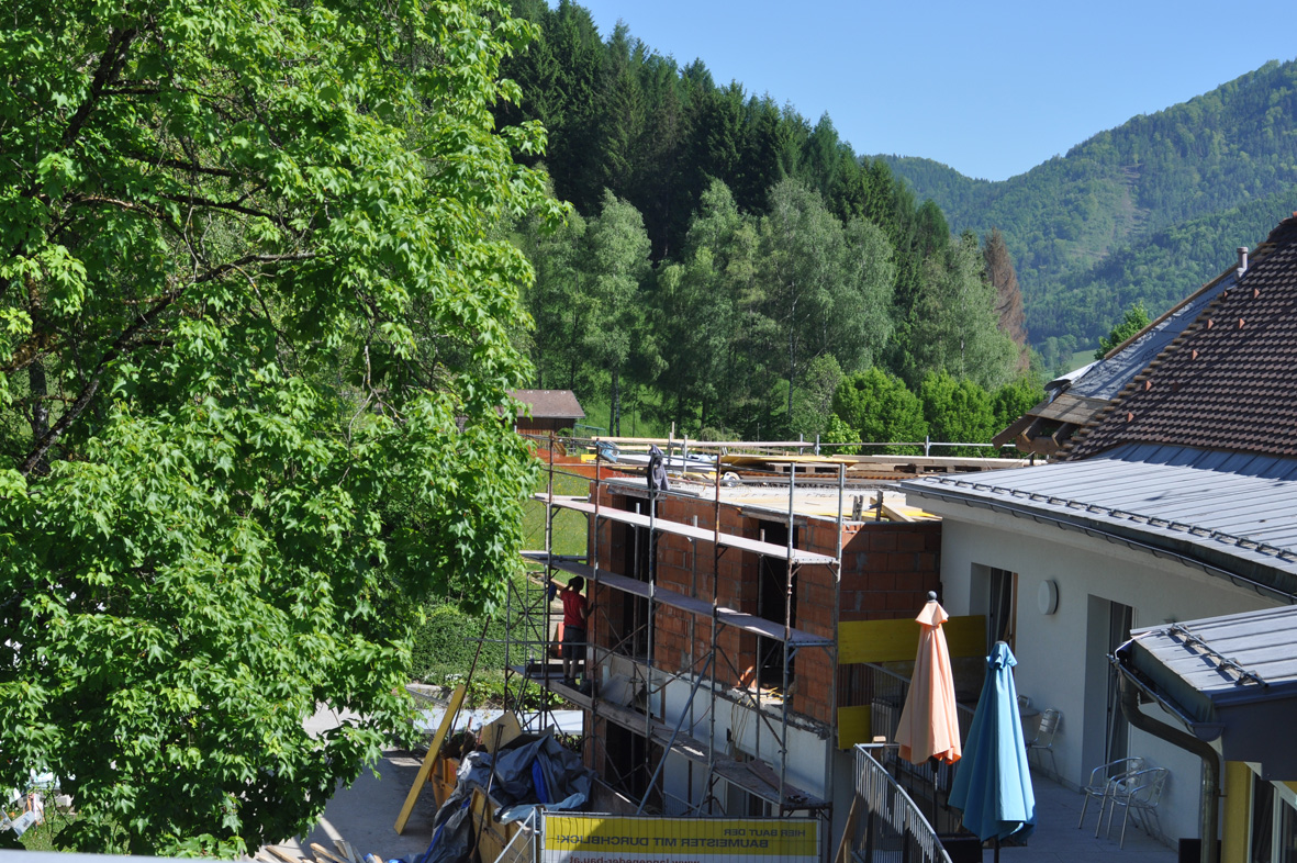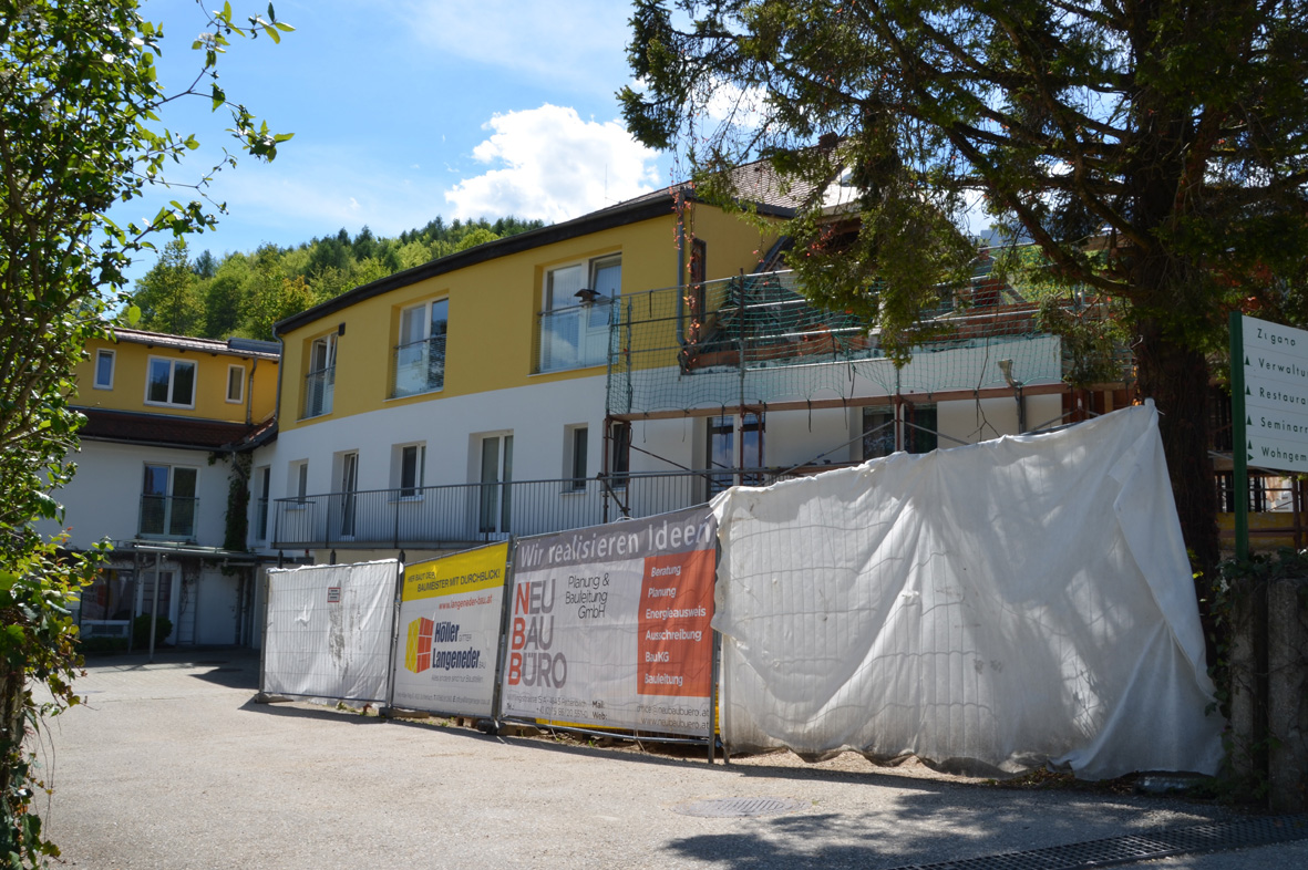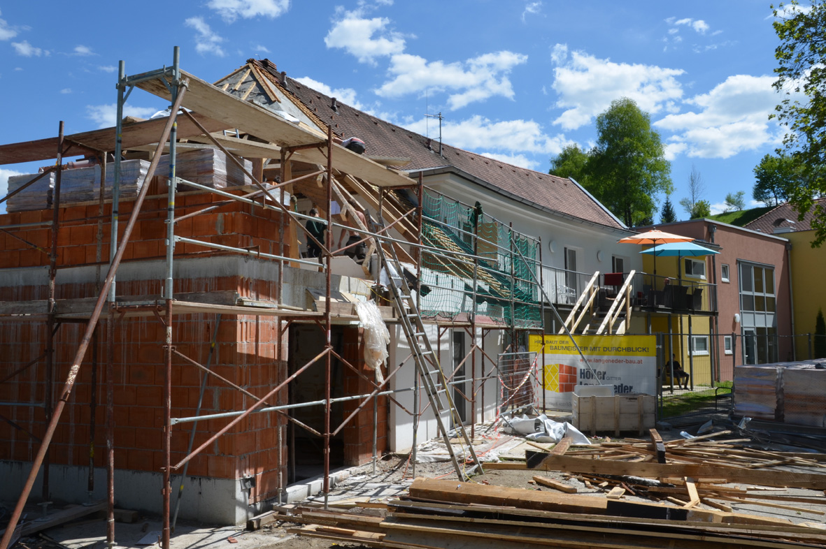 Um sich in Zukunft über Wohnraumerweiterung mit einigen neuen Zimmern auf den beiden WGs freuen zu können, müssen Belegschaft und BewohnerInnen dort noch tagsüber örtlich ausweichern, um Lärm und Staub zu entkommen. Eindrücke vom heurigen Baustellensommer 2017: