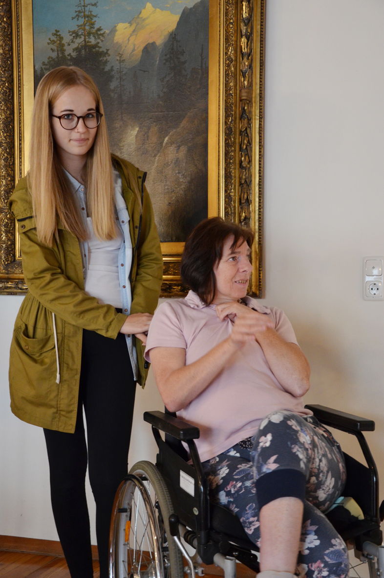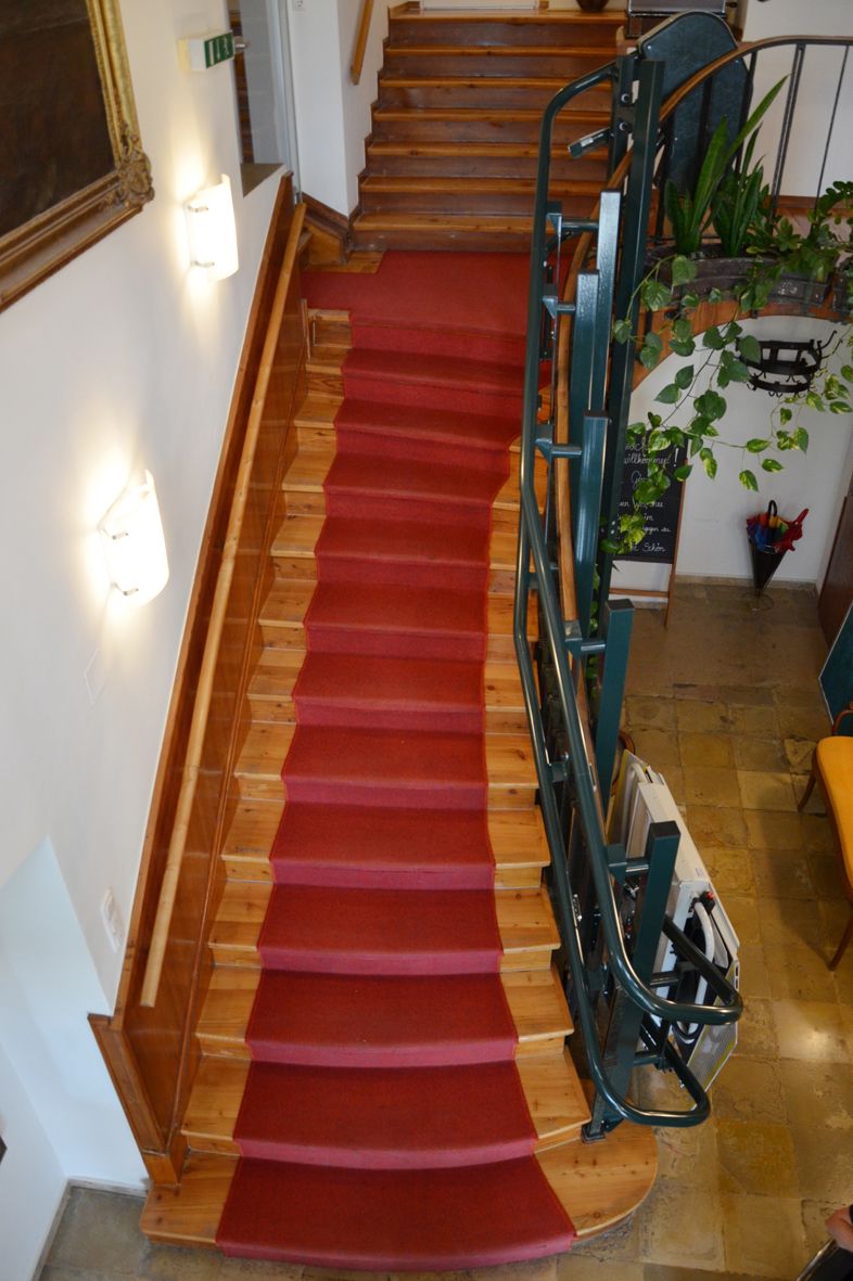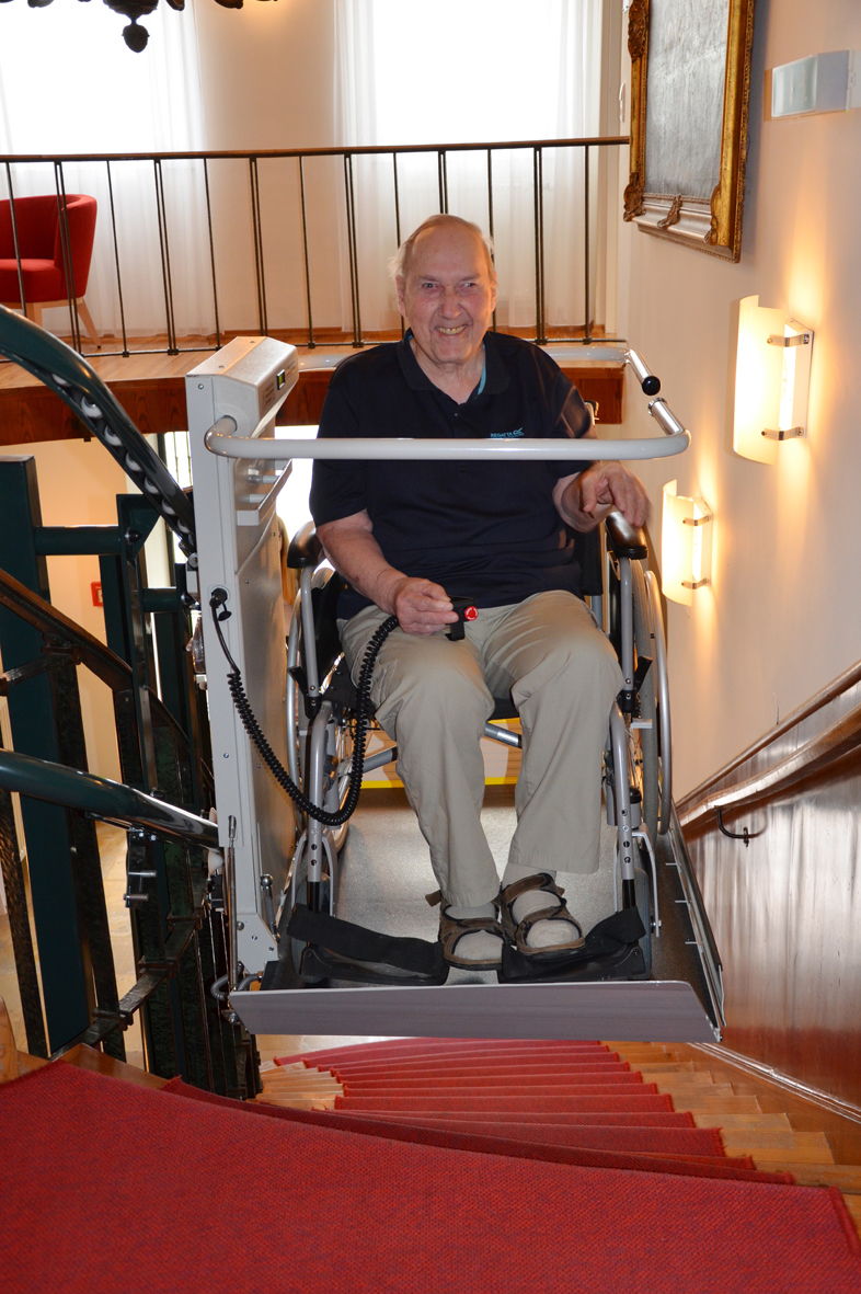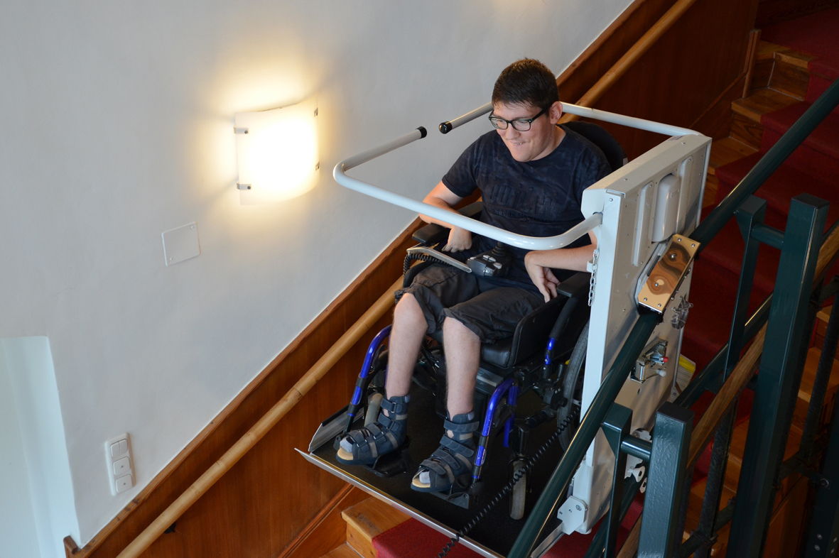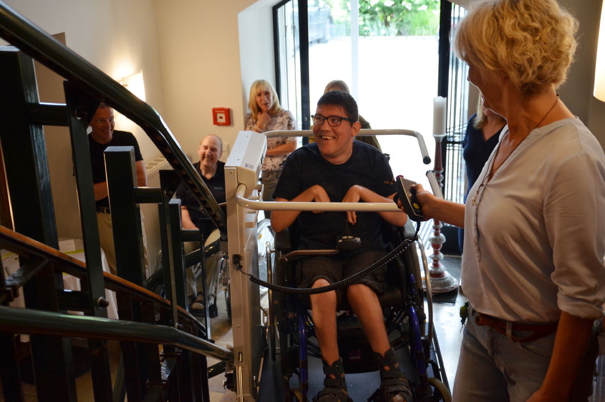 Mit einer gemeinsamen Testfahrt wurde am 18. Juli der neue Treppenlift im Altbau der Schön, dem Kreuzbichlhof, in Betrieb genommen. Einige Bewohnerinnen und Bewohner waren gekommen um – zum Teil zum allerersten Mal – den Verwaltungsbereich unserer Einrichtung zu besuchen. Durch die großartige Unterstützung vieler Spenderinnen und Spender, die das Spendenprojekt "Treppenlift" unterstützt hatten, wurde die Errichtung möglich.