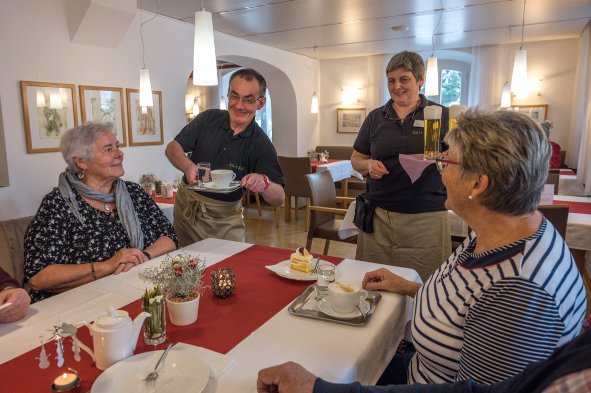 Es war wirklich schön, von so vielen Gästen besucht zu werden. Im Kreuzbichlhof war überall etwas los: Kerzenziehen und Keksebacken für Kinder (und größere Kinder ;) , Geschenke aus unseren Werkstätten für Fähigkeitsorientierte Aktivitäten – der wolle, der holz und der kreativ – sowie aus unserer Gärtnerei, die wunderbare Adventkränze und Gestecke hergestellt hatte. Süße und pikante Spezialitäten aus unserer Küche und wohlige Wärme im Restaurant schön&gut. Hier wurde genascht, geplaudert und gelacht. Klassische Adventspezialitäten gab es an den Schön-Standeln im Freien, wo auch nach Einbruch der Dunkelheit Licht und Wärme von Feuerkörben und Fackeln kamen...