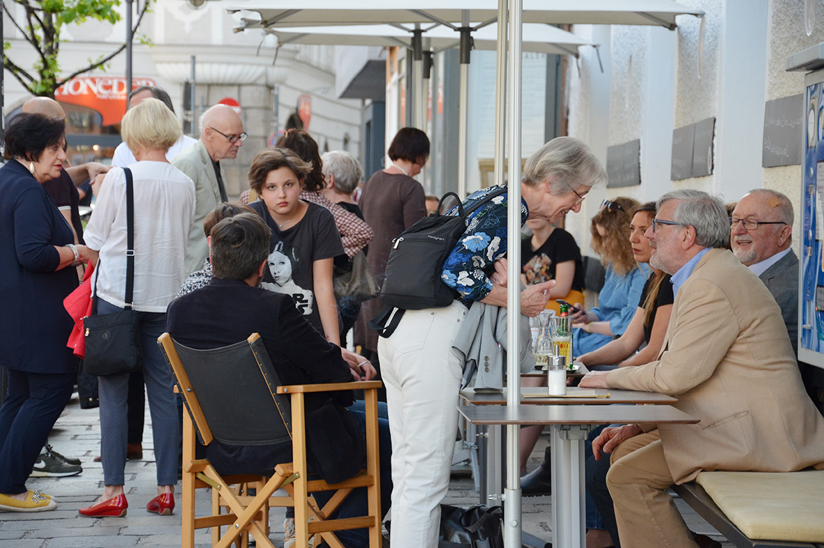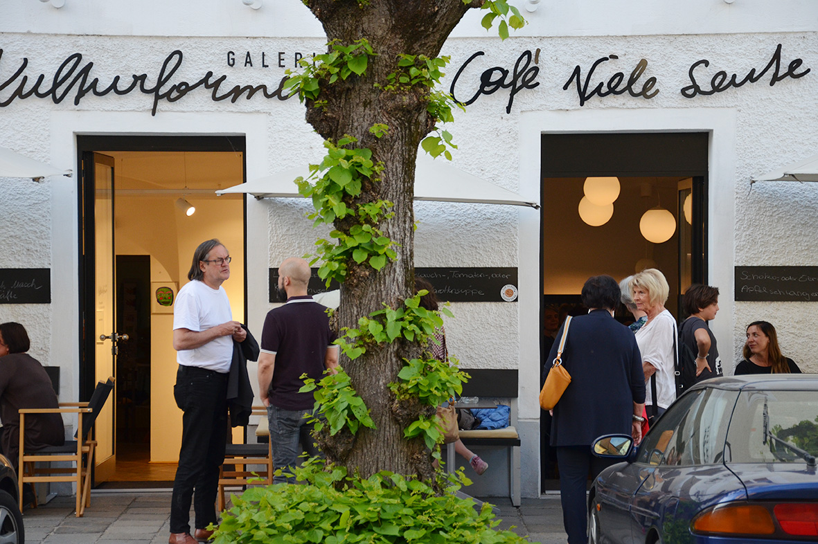Bis auf den letzten Platz gefüllt, waren die Galerie KULTURFORMEN und das Café Viele Leute bei der gelungenen Eröffnung der aktuellen Ausstellung Kopf und Kopf.