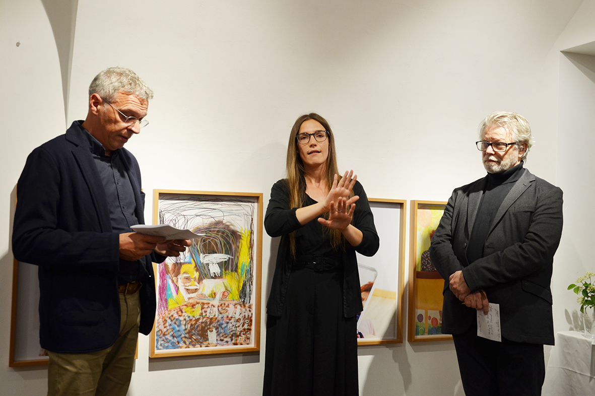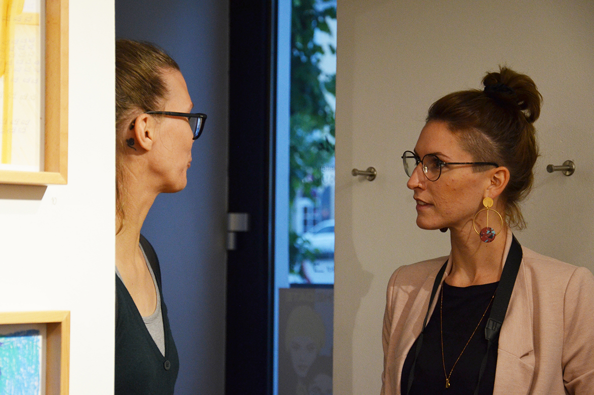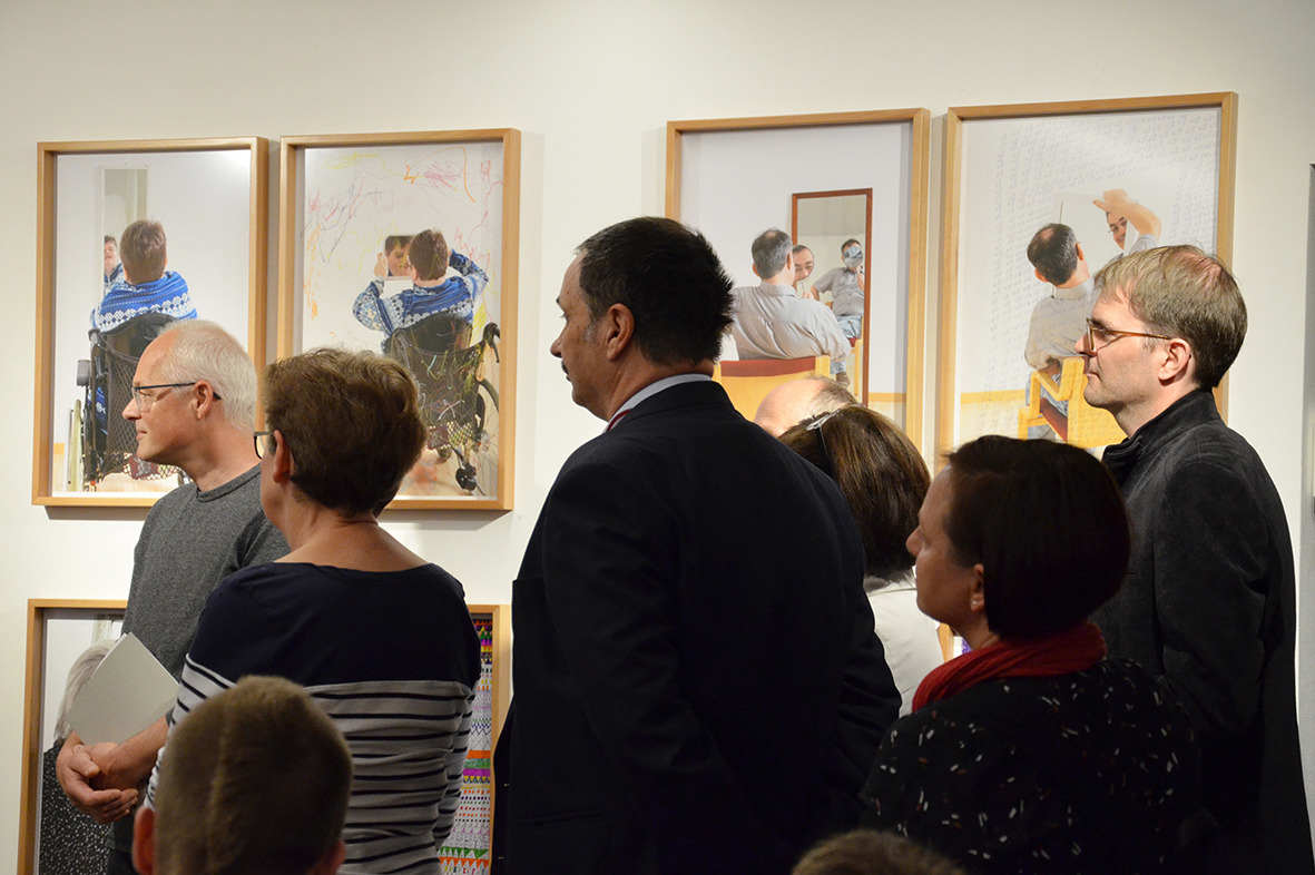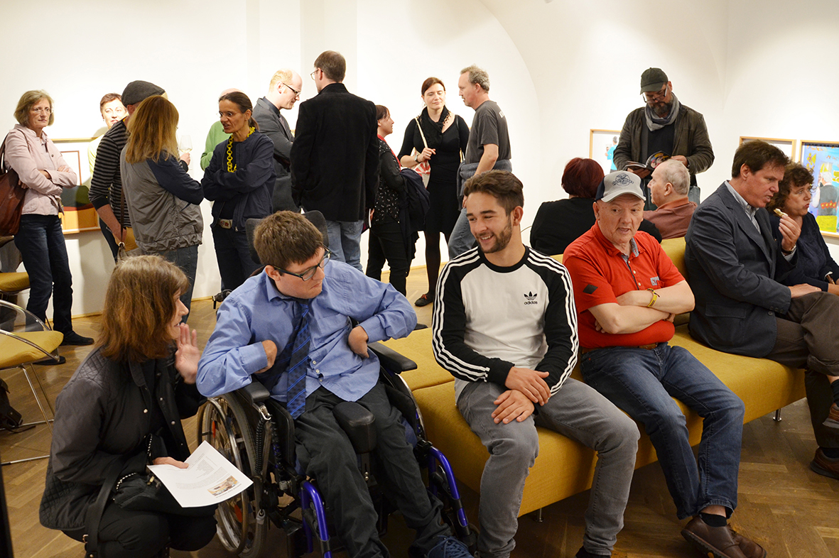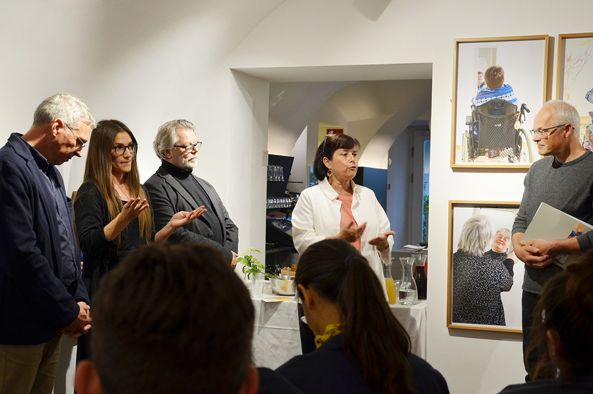 Die Ausstellung ist Teil des Programms des internationalen inklusiven Festivals sicht:wechsel und wurde bereits einige Tage vor dem offiziellen Start des Festivals feierlich eröffnet. Festivalleiter Alfred Rauch, Landesrätin Birgit Gerstorfer, Manuel Höfer für das Landesmusikschulwerk und Thomas Weixlbaumer als Geschöäftsführer von Schön und Gastgeber, sprachen die Eröffnungsworte, die gleichzeitig jeweils in Gebärdensprache übersetzt wurden. Als Vertreter der Landesmusikschule Kirchdorf war Andreas Reckenzain gekommen. Bis zum letzten Platz waren die Galerie und das Café Viele Leute mit Gästen gefüllt. Besonders gefreut haben sich die Initiatoren des Projektes, dass auch viele der an der Ausstellung beteiligten Künstlerinnen und Künstler aus Schön gekommen waren.