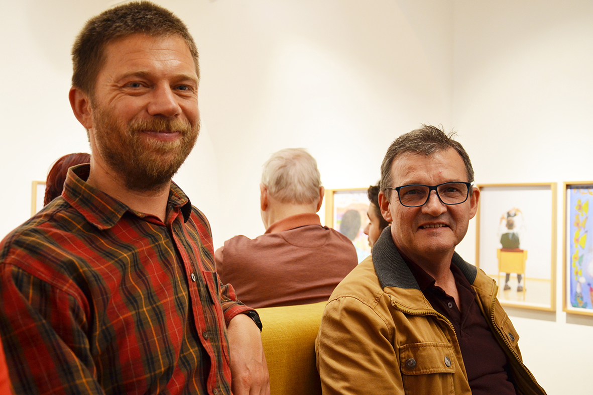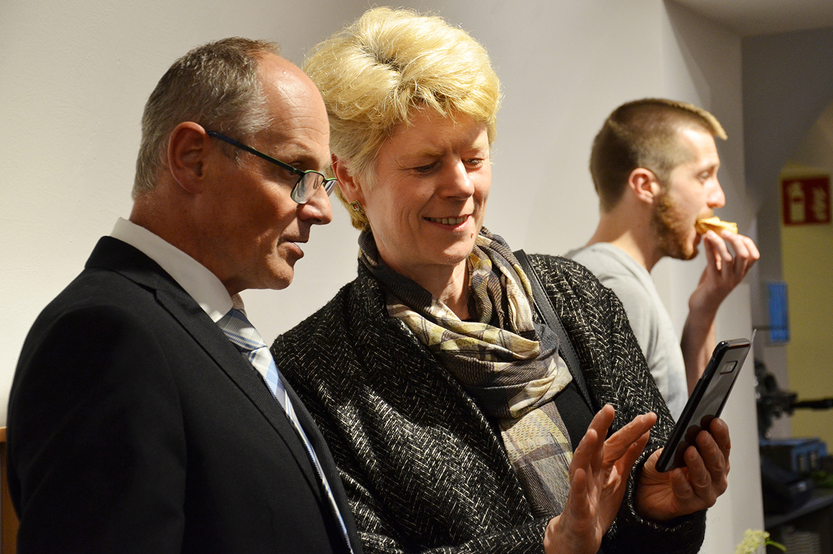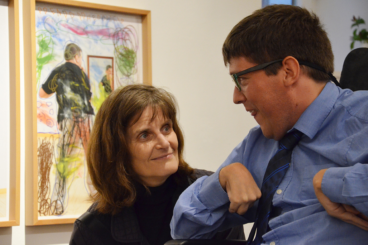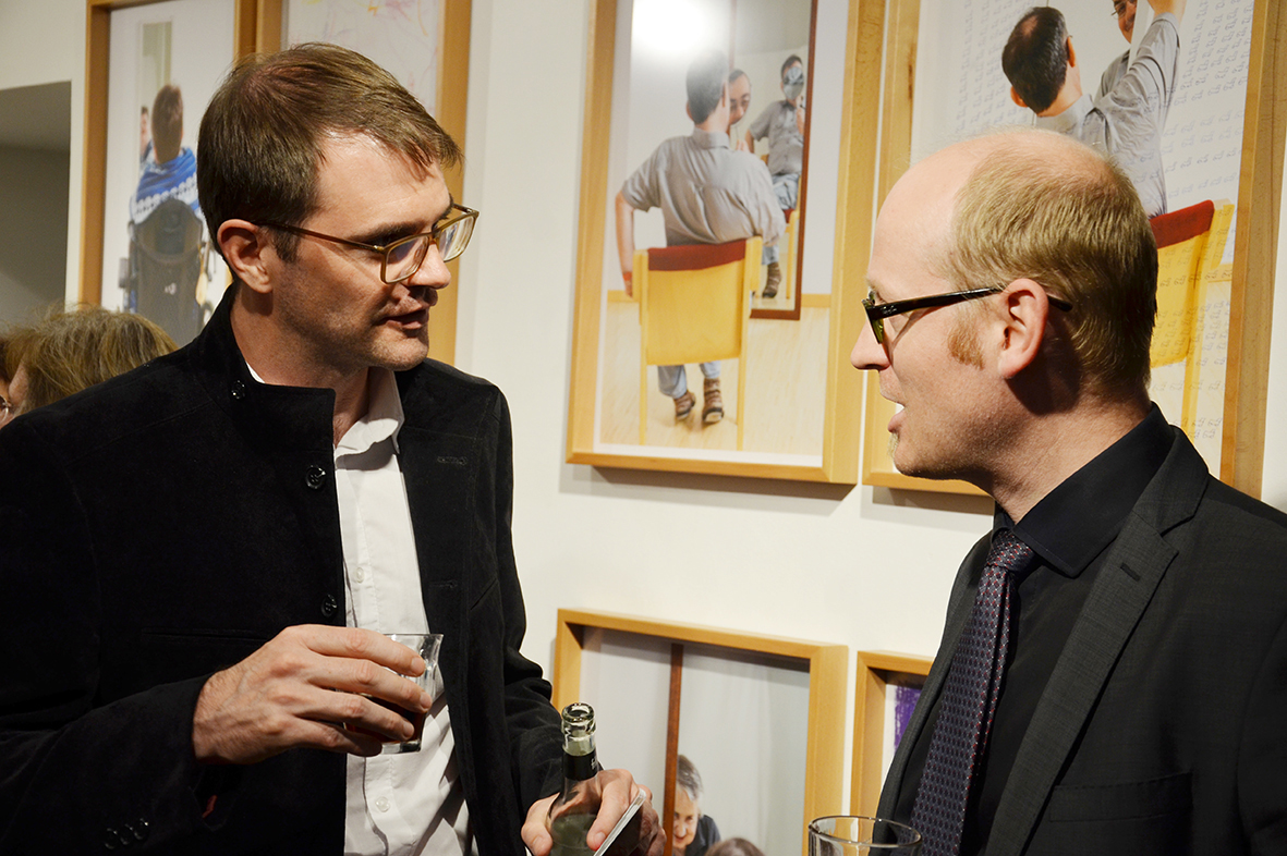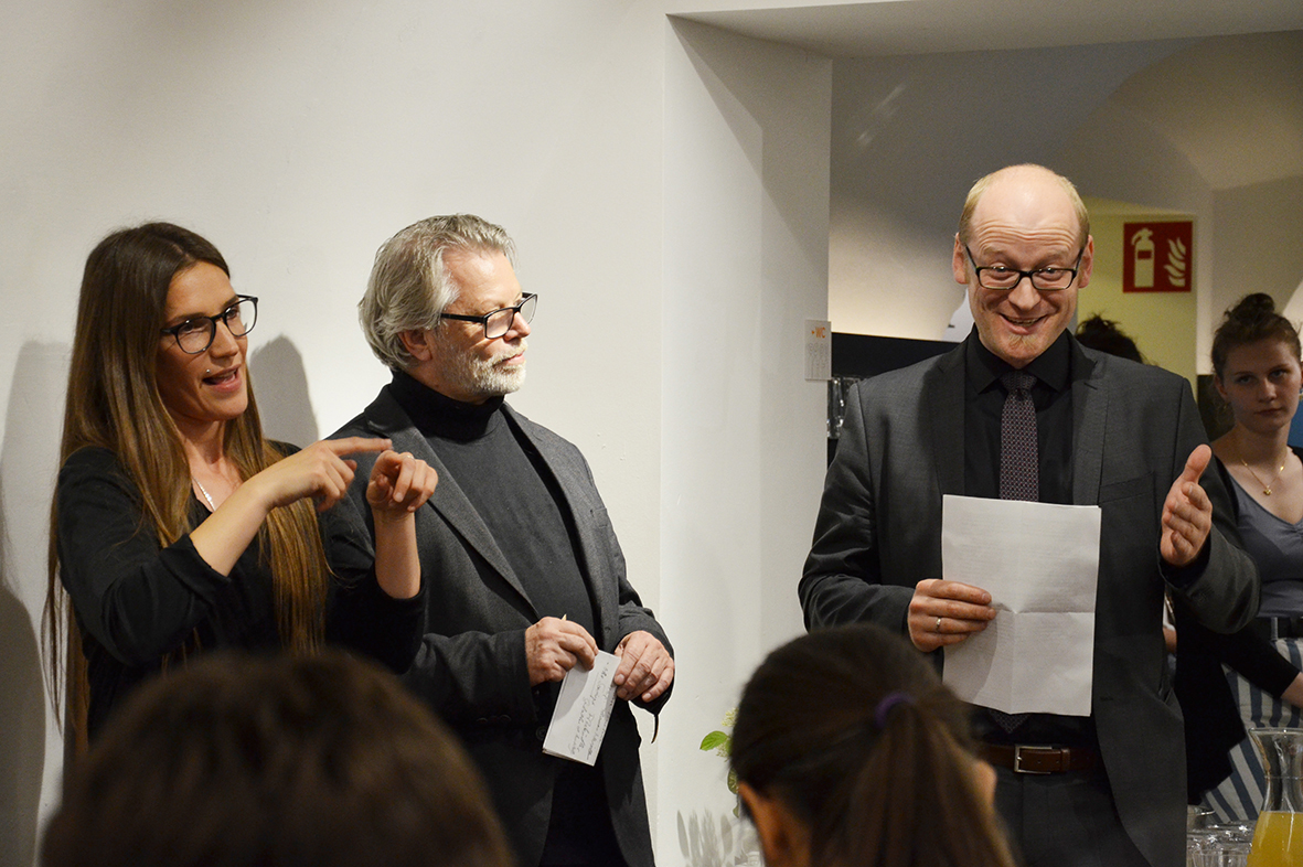 Die Ausstellung ist Teil des Programms des internationalen inklusiven Festivals sicht:wechsel und wurde bereits einige Tage vor dem offiziellen Start des Festivals feierlich eröffnet. Festivalleiter Alfred Rauch, Landesrätin Birgit Gerstorfer, Manuel Höfer für das Landesmusikschulwerk und Thomas Weixlbaumer als Geschöäftsführer von Schön und Gastgeber, sprachen die Eröffnungsworte, die gleichzeitig jeweils in Gebärdensprache übersetzt wurden. Als Vertreter der Landesmusikschule Kirchdorf war Andreas Reckenzain gekommen. Bis zum letzten Platz waren die Galerie und das Café Viele Leute mit Gästen gefüllt. Besonders gefreut haben sich die Initiatoren des Projektes, dass auch viele der an der Ausstellung beteiligten Künstlerinnen und Künstler aus Schön gekommen waren.