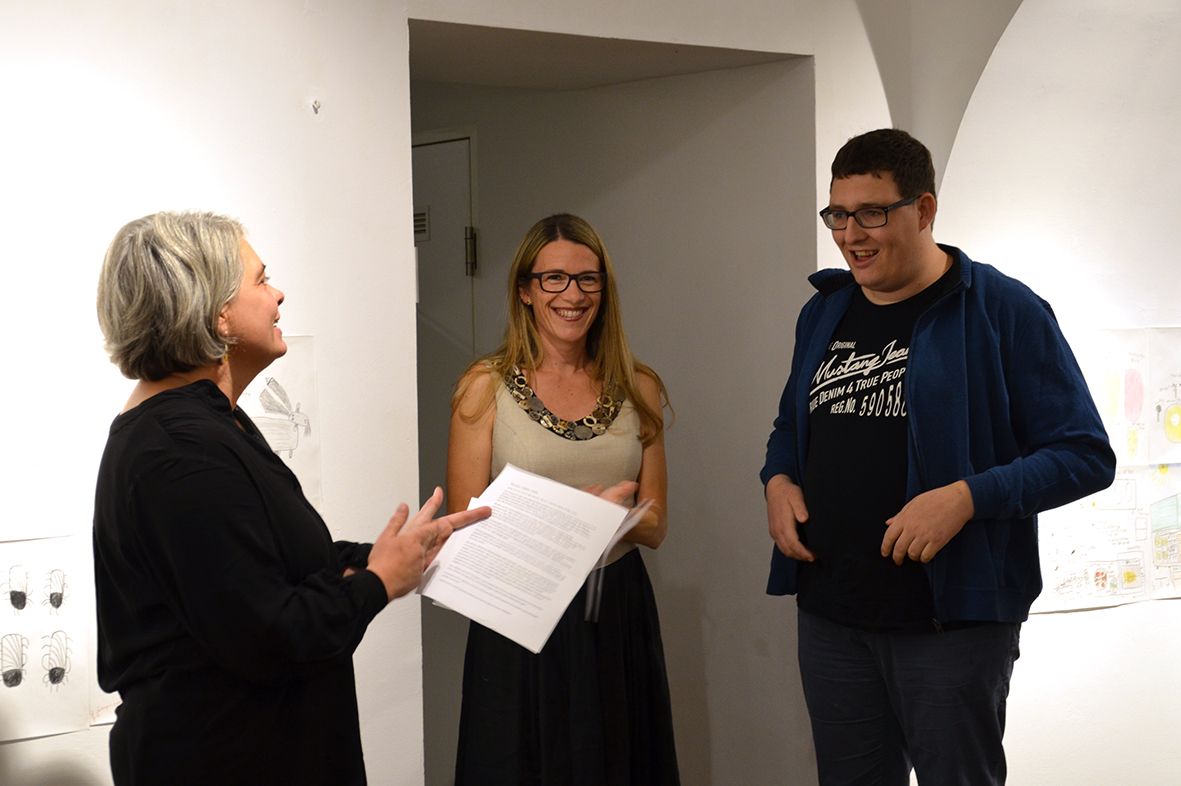 Viele Gäste waren zur Vernissage gekommen, und konnten dort während eines anregenden Abends mit spannenden Entdeckungen, auch mit dem Künstler selbst ins Gespräch kommen. Eröffnet wurde die Ausstellung durch Mag. Sandra Wiesinger, GF des Instituts Hartheim. Jan Schöttl arbeitet im Atelier Neuhauserstadel, wo Mag. Alfred Heindl sein Schaffen mit Fingerspitzengefühl unterstützt.