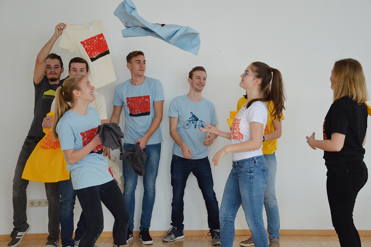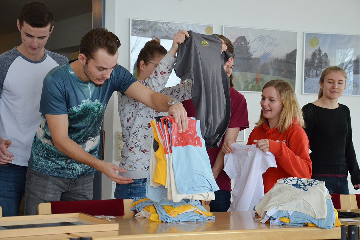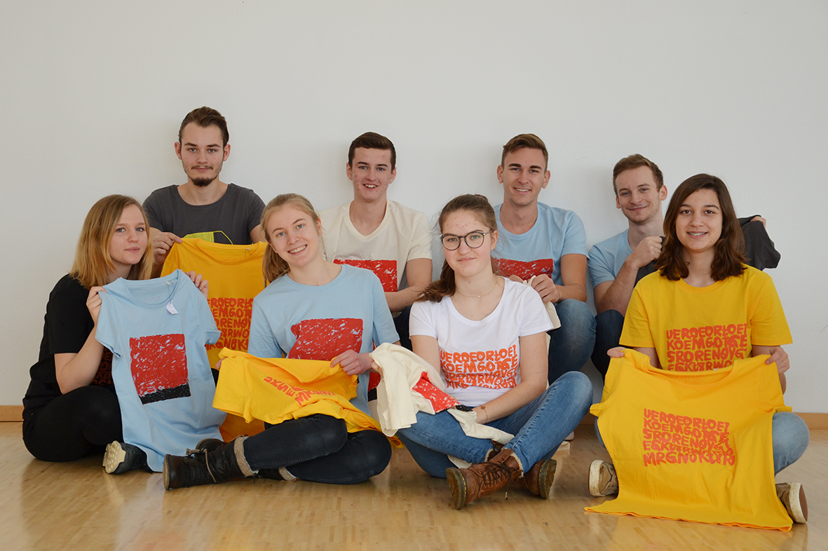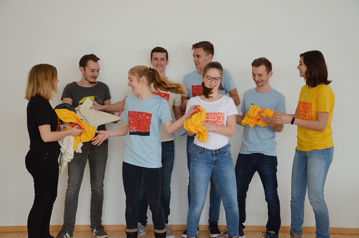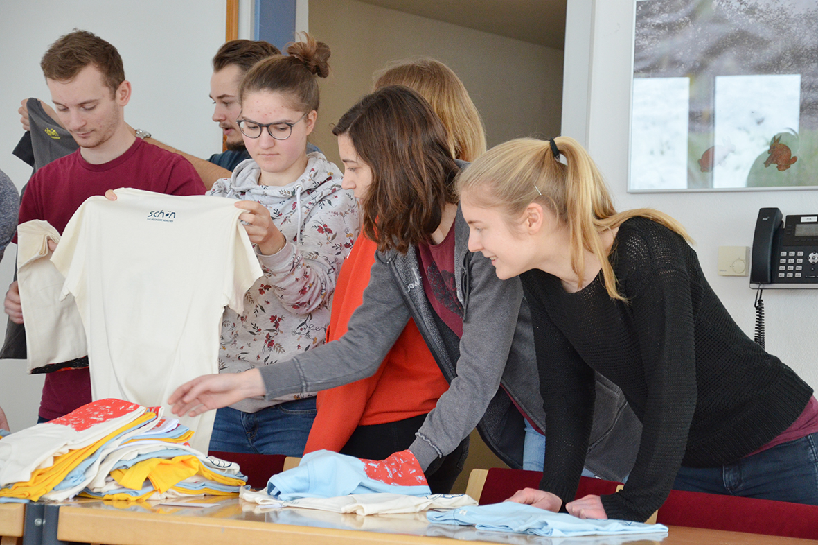 Hier zu sehen: Die Zivildiener und jungen Frauen im Freiwilligen Sozialen Jahr oder Freiwilligen Umweltjahr, die aktuell in Schön für Menschen mit Beeinträchtigungen aktiv sind – beim Leiberl-Check ;)