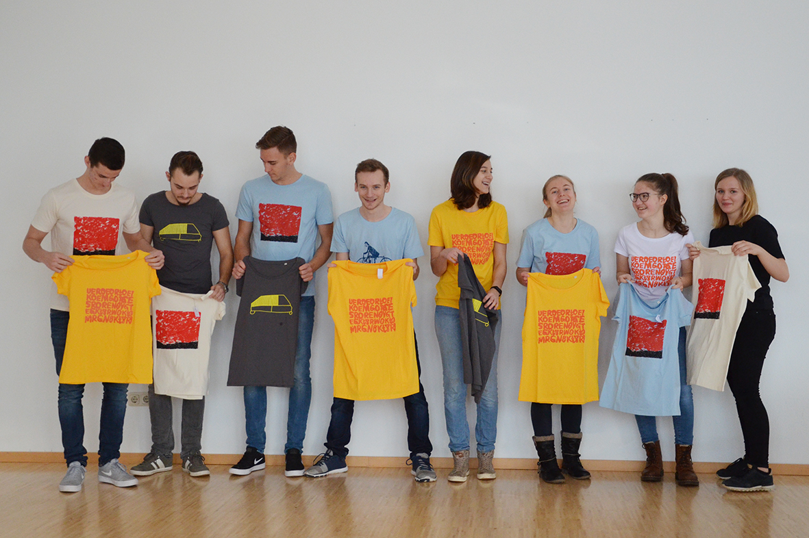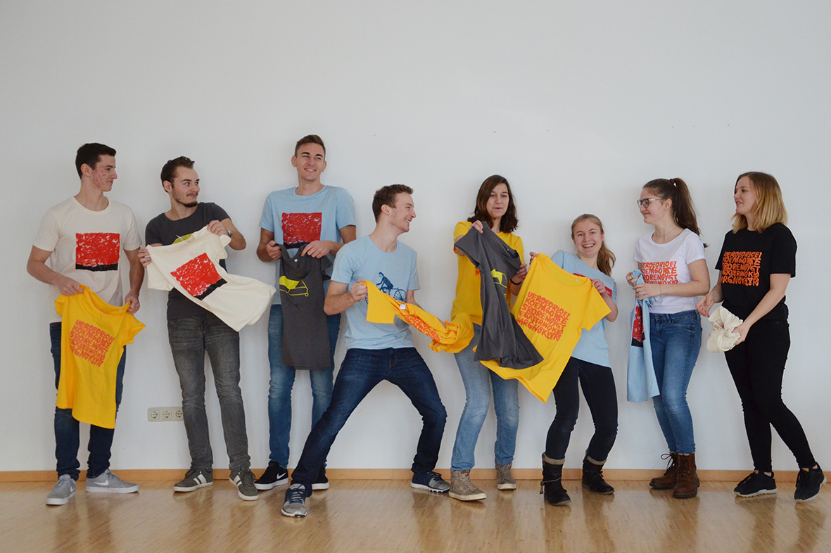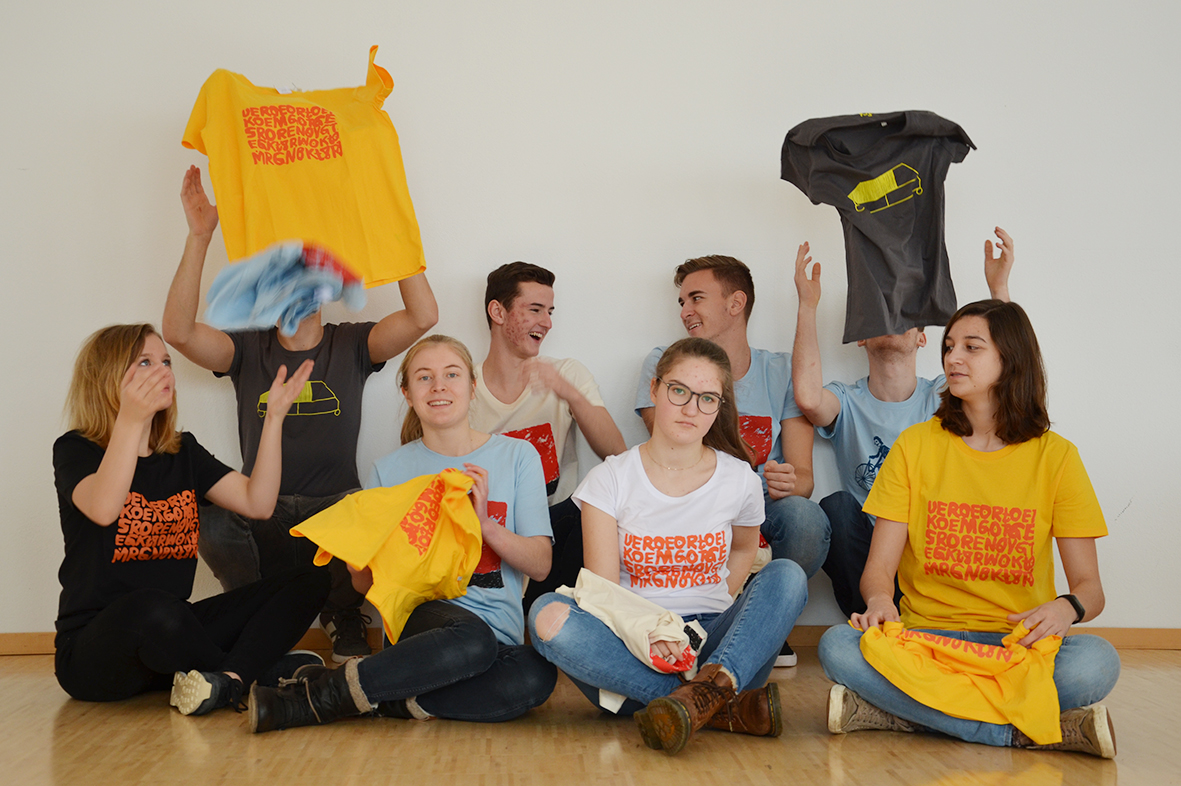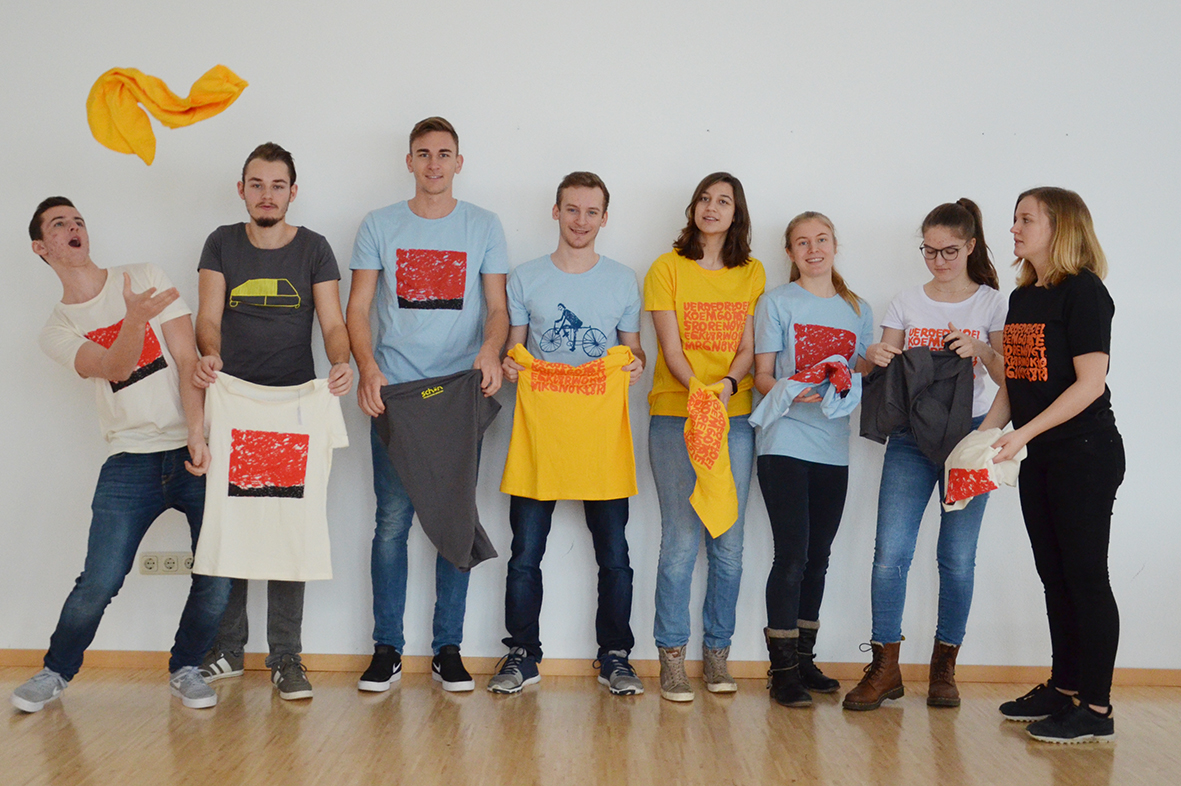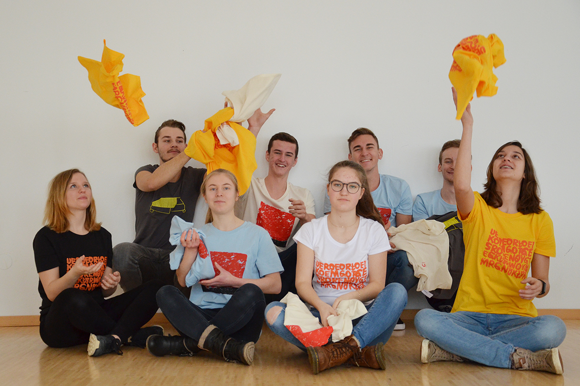 Hier zu sehen: Die Zivildiener und jungen Frauen im Freiwilligen Sozialen Jahr oder Freiwilligen Umweltjahr, die aktuell in Schön für Menschen mit Beeinträchtigungen aktiv sind – beim Leiberl-Check ;)