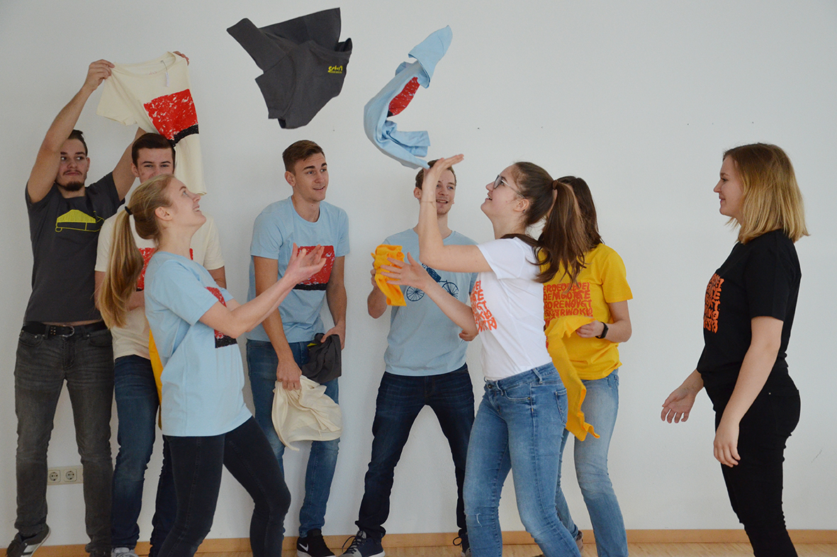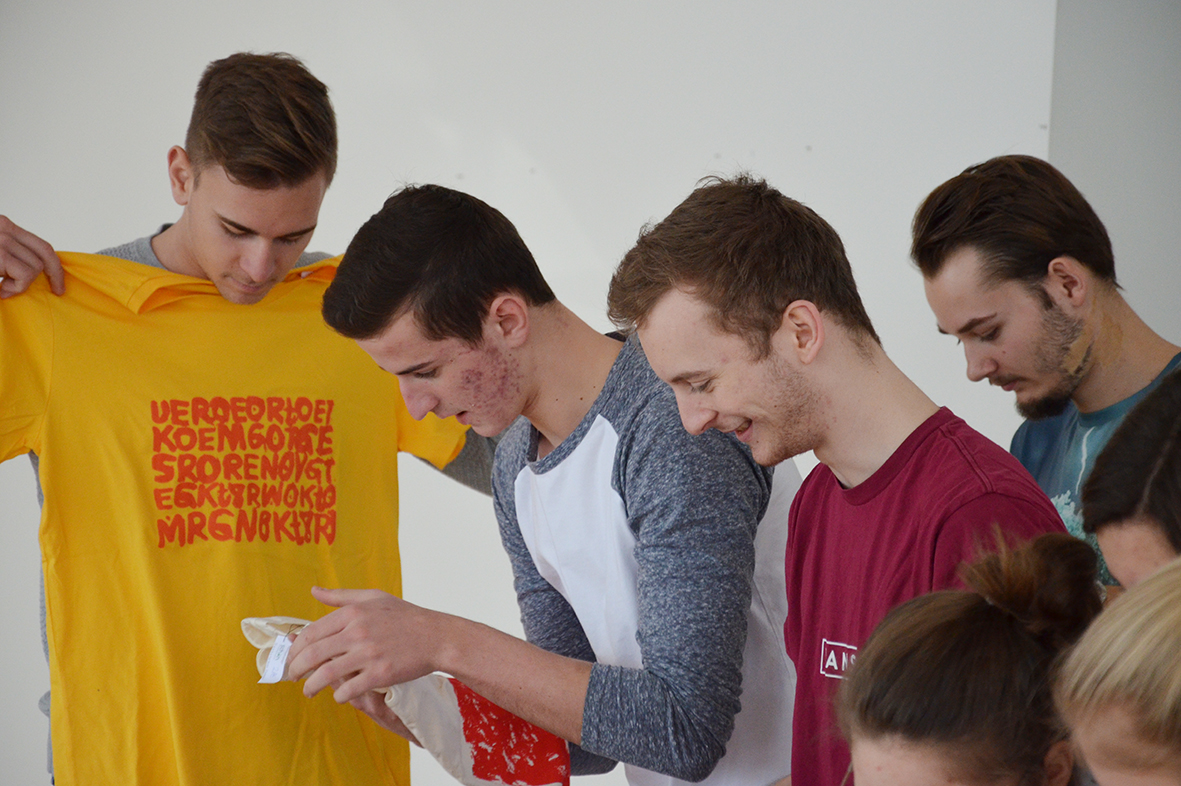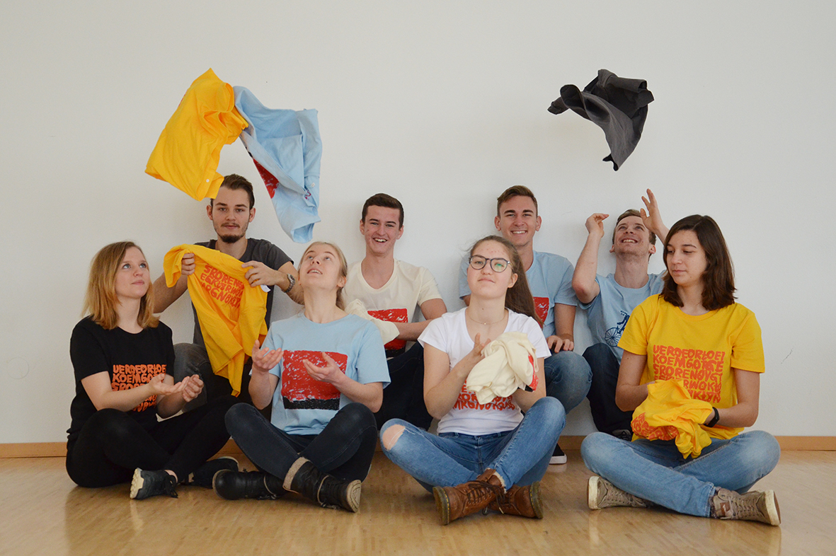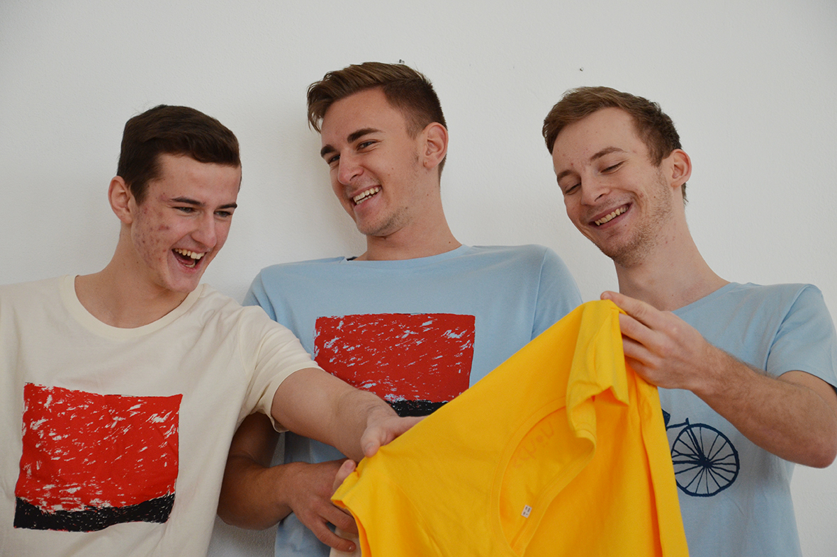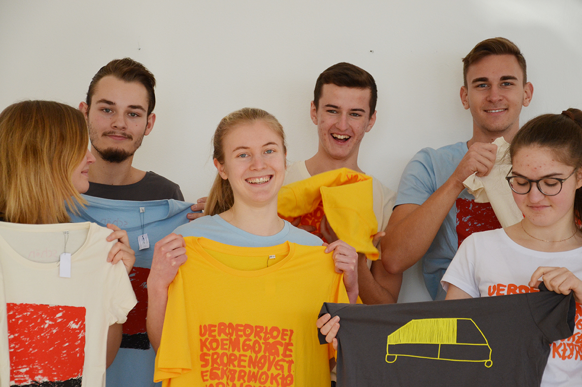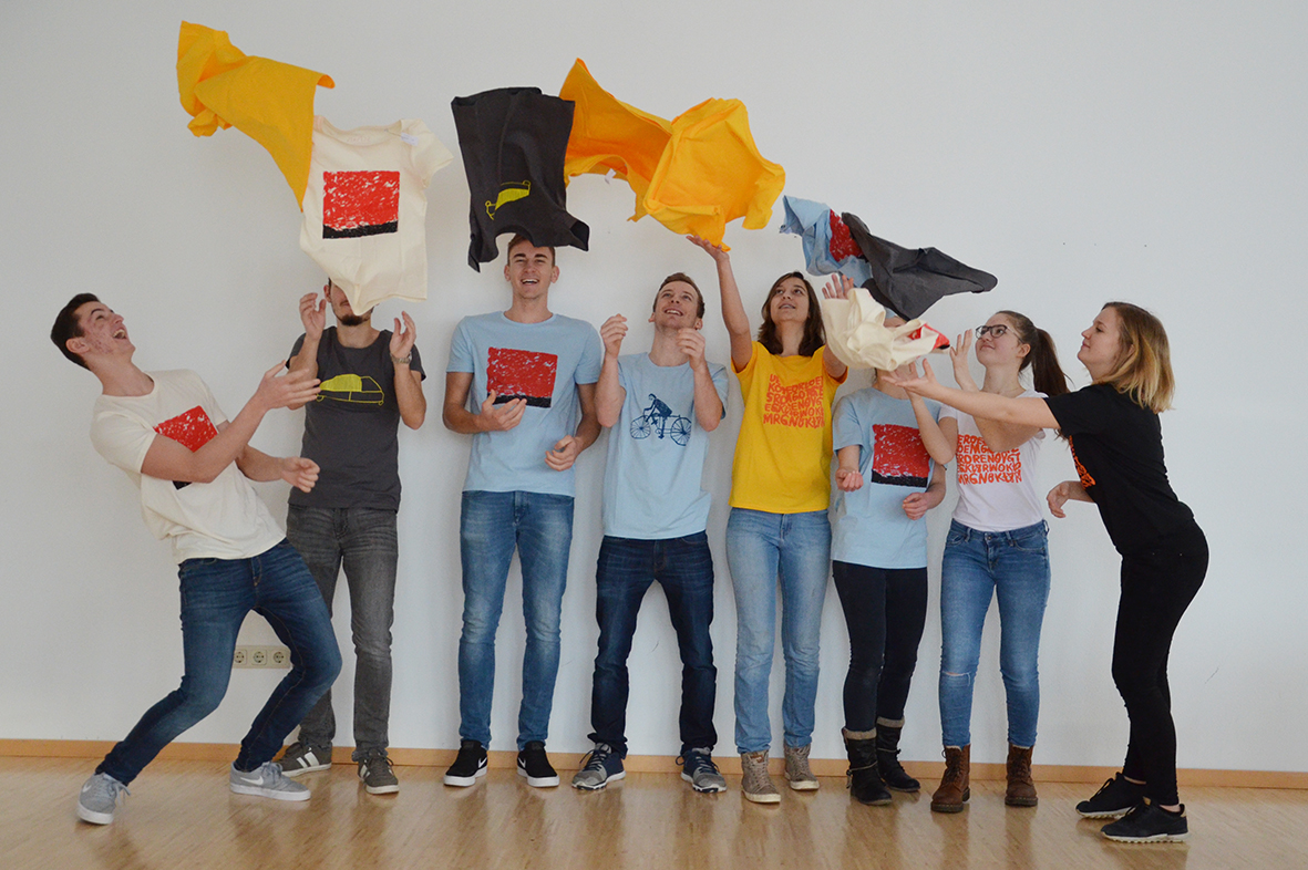 Hier zu sehen: Die Zivildiener und jungen Frauen im Freiwilligen Sozialen Jahr oder Freiwilligen Umweltjahr, die aktuell in Schön für Menschen mit Beeinträchtigungen aktiv sind – beim Leiberl-Check ;)
