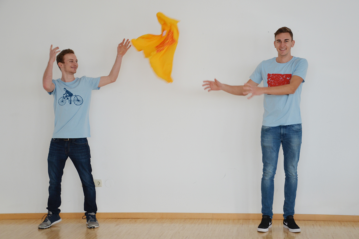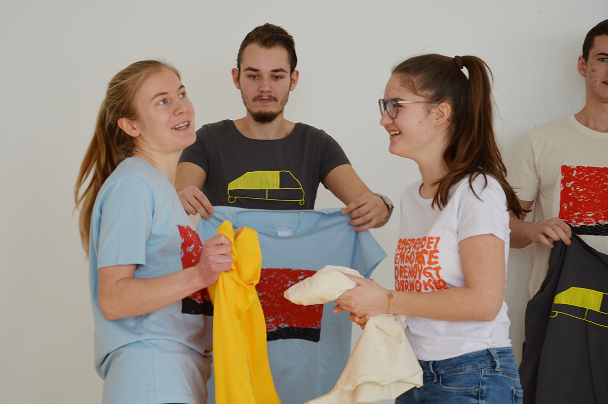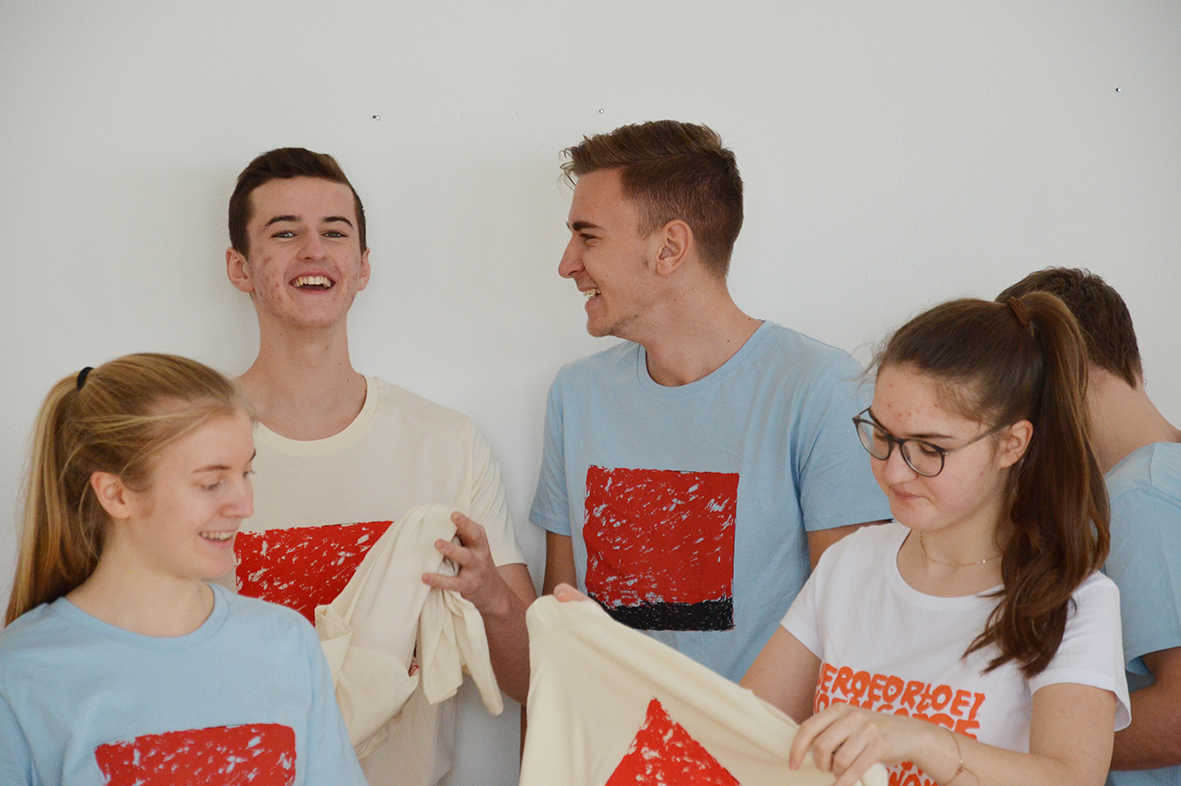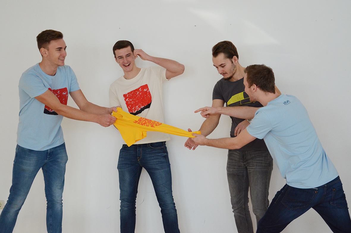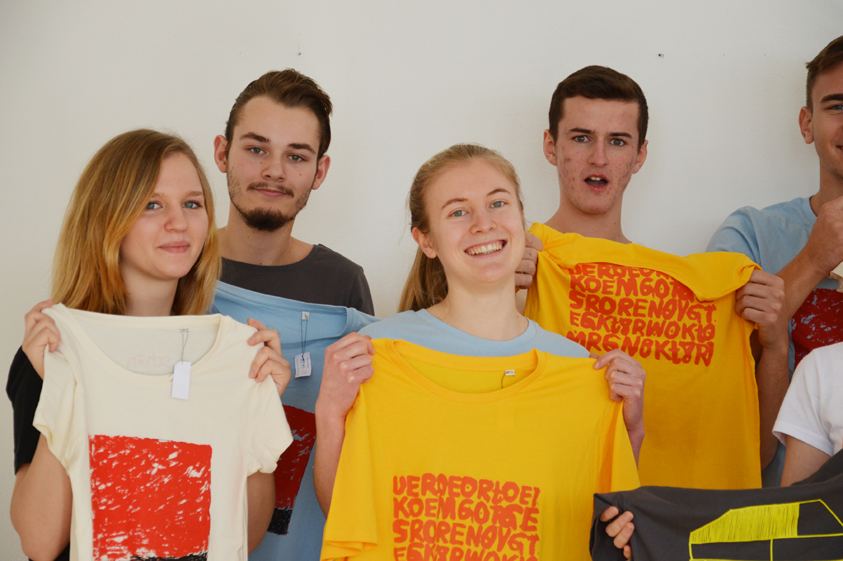 Hier zu sehen: Die Zivildiener und jungen Frauen im Freiwilligen Sozialen Jahr oder Freiwilligen Umweltjahr, die aktuell in Schön für Menschen mit Beeinträchtigungen aktiv sind – beim Leiberl-Check ;)