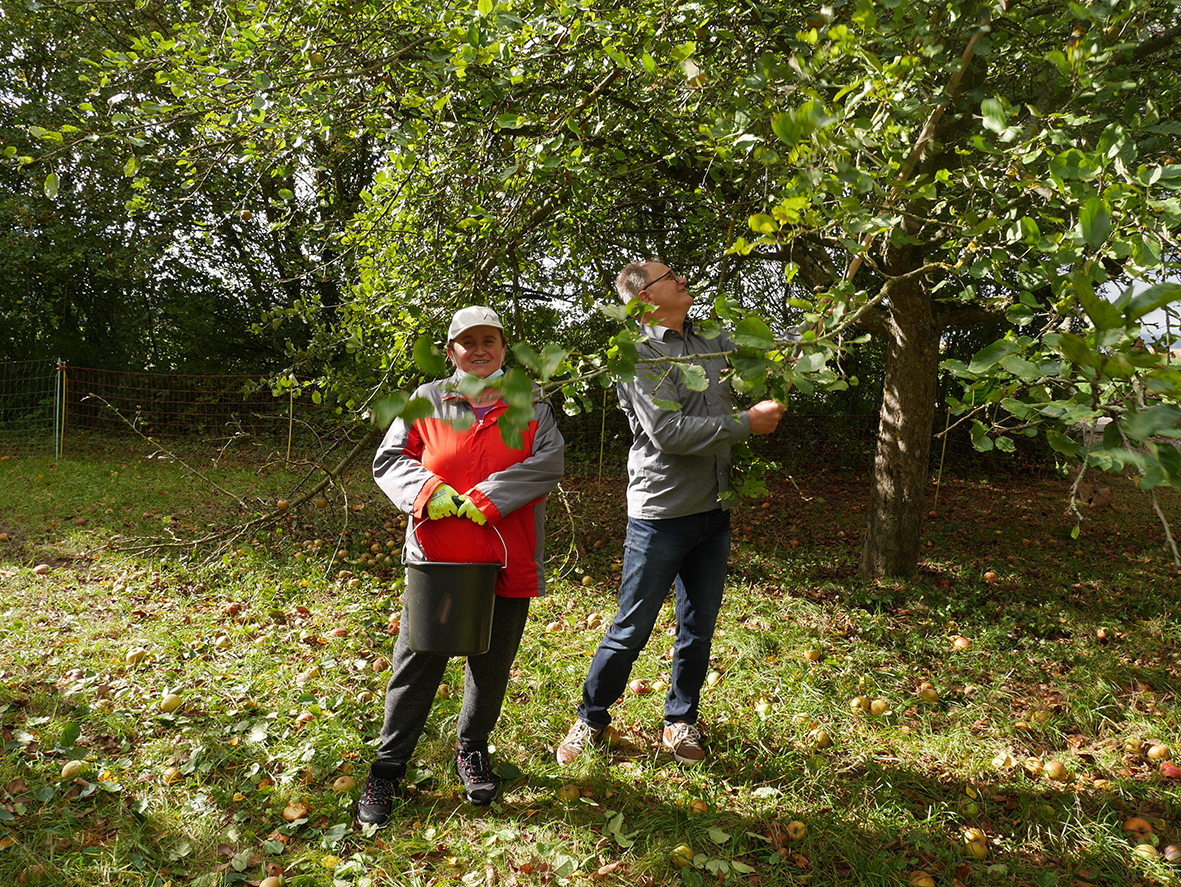 Ob gepresst, gedörrt oder frisch vom Baum genossen, unser Obstgarten bietet eine breite Auswahl an Früchten. Zur Zeit ist Apfelernte und die ursprünglich bei uns heimischen Sorten eigenen sich bestens zur Herstellung von Saft und Dörrobst.