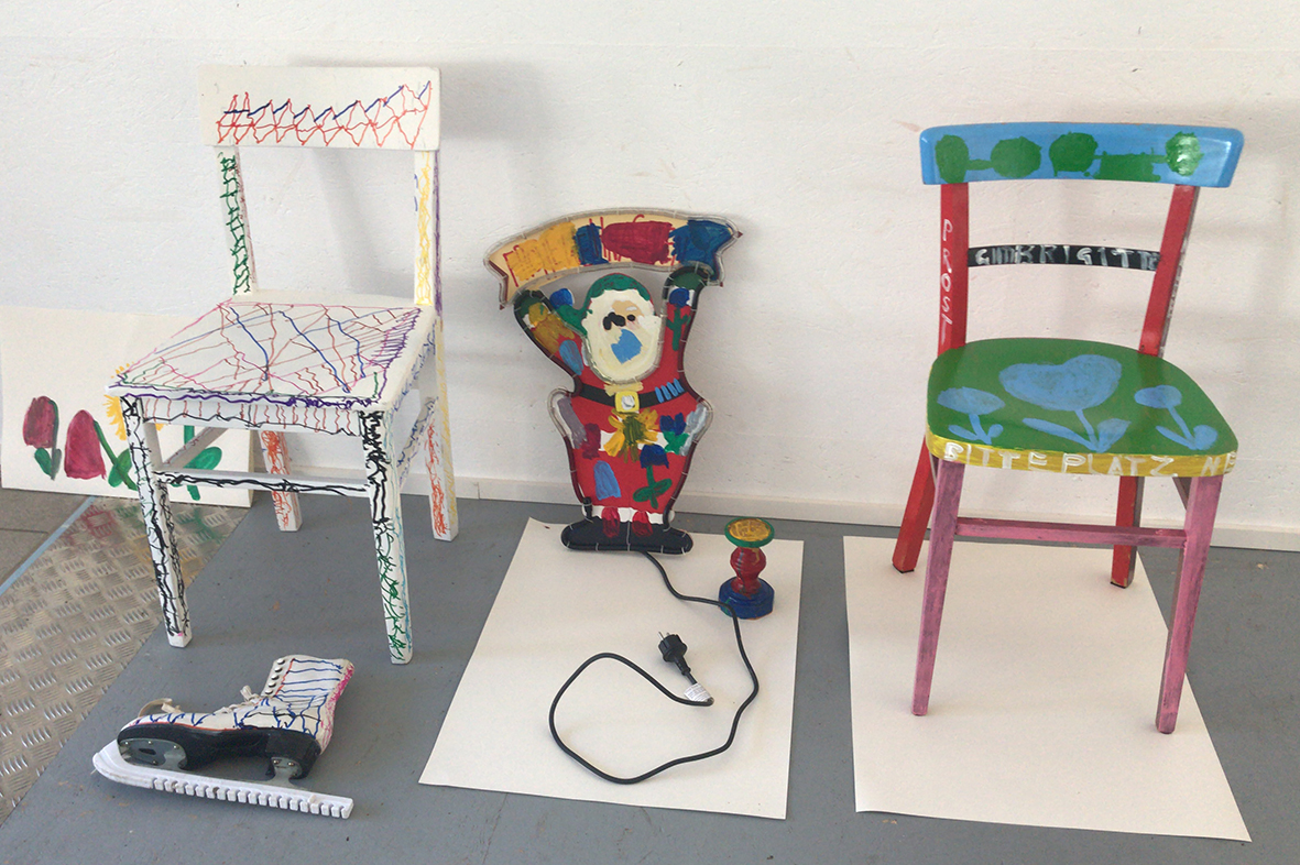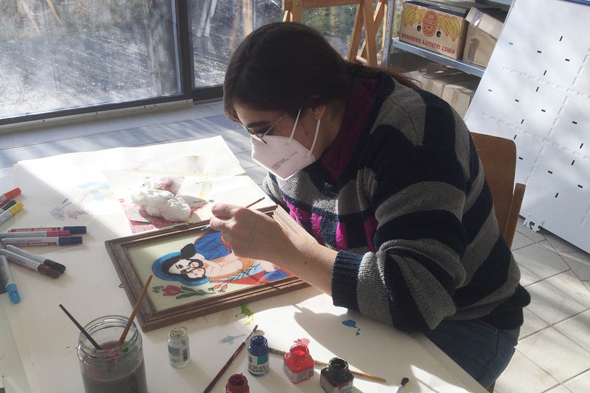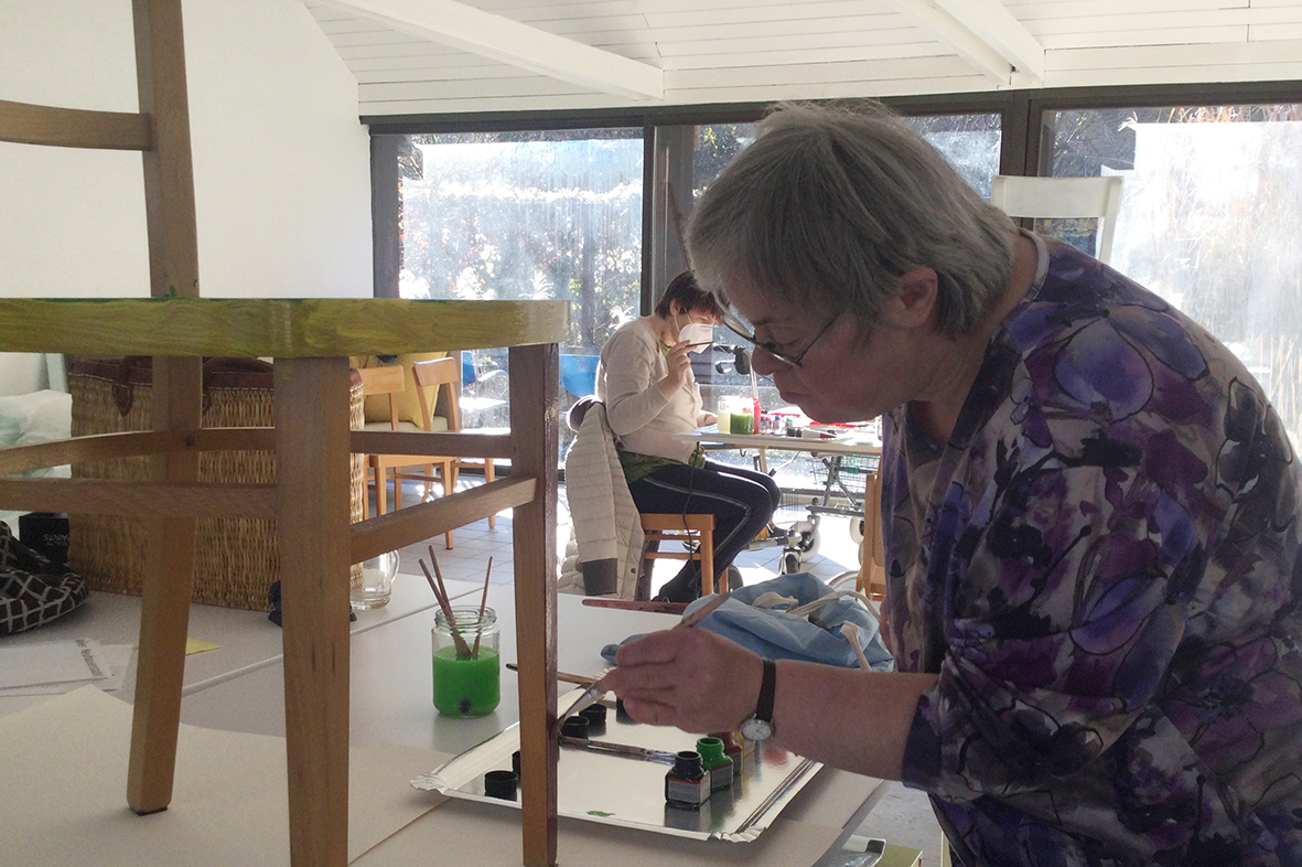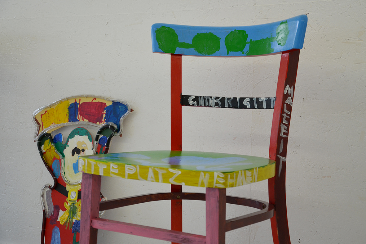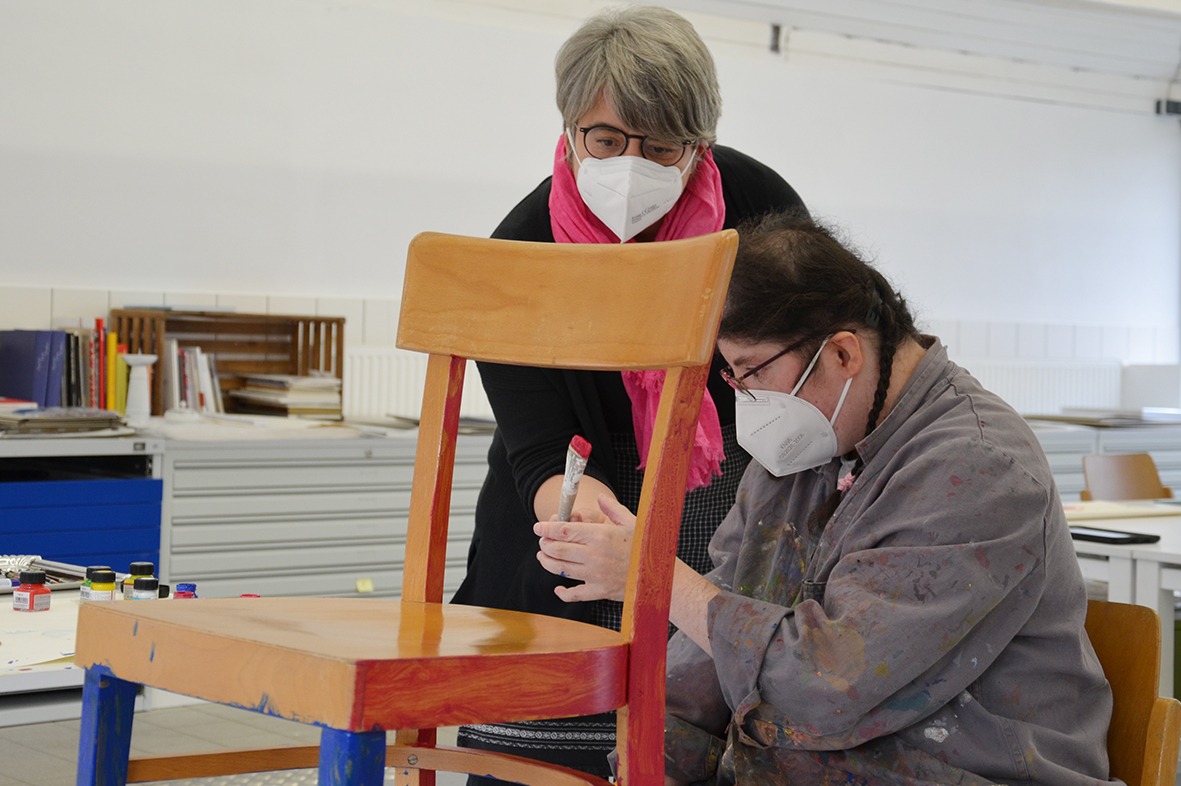 Für die ursprünglich im Advent geplante Ausstellung in der Galerie KULTURFORMEN am Pfarrplatz werden – mit etwas zeitlicher Verzögerung – Möbel und Objekte einer neuen Gestaltung zugeführt.  Geschehen tut das mit einer liebevollen Hingabe, die den fertigen Stücken auch anzusehen ist. Unter der Begleitung von Kristiane Petersmann bemalen oder "bezeichnen" Kund*innen aus Schön Stühle, Tische und wunderbare Kuriositäten, die schließlich den Galerieraum in Linz zu einer in mehrfacher Hinsicht besitzbaren Wunderkammer machen werden. Für unseren Newsblog werfen wir hiermit einen Blick in die Kunstwerkstatt…