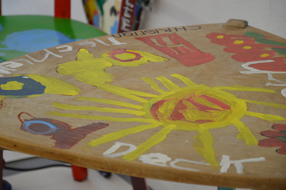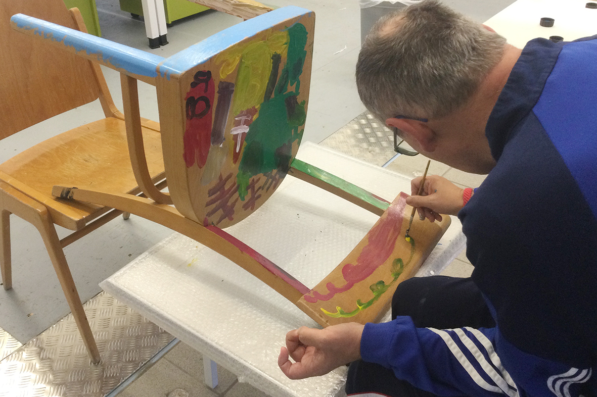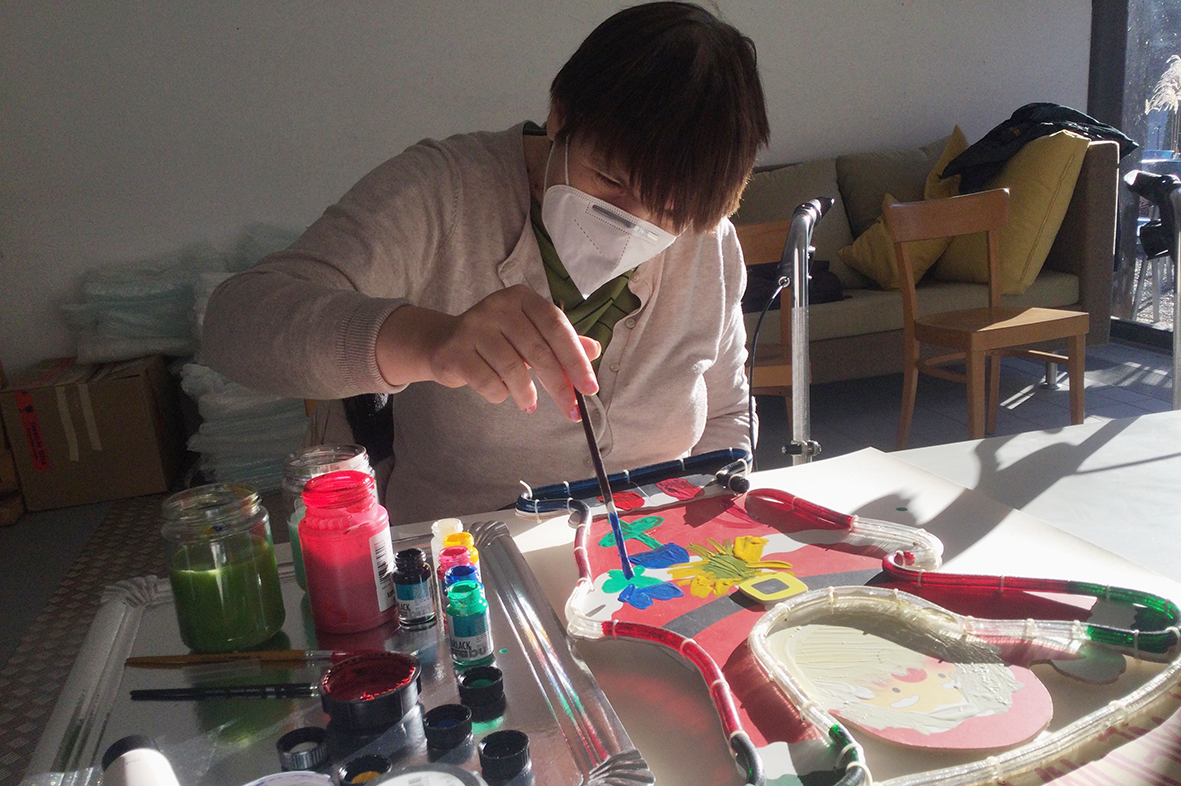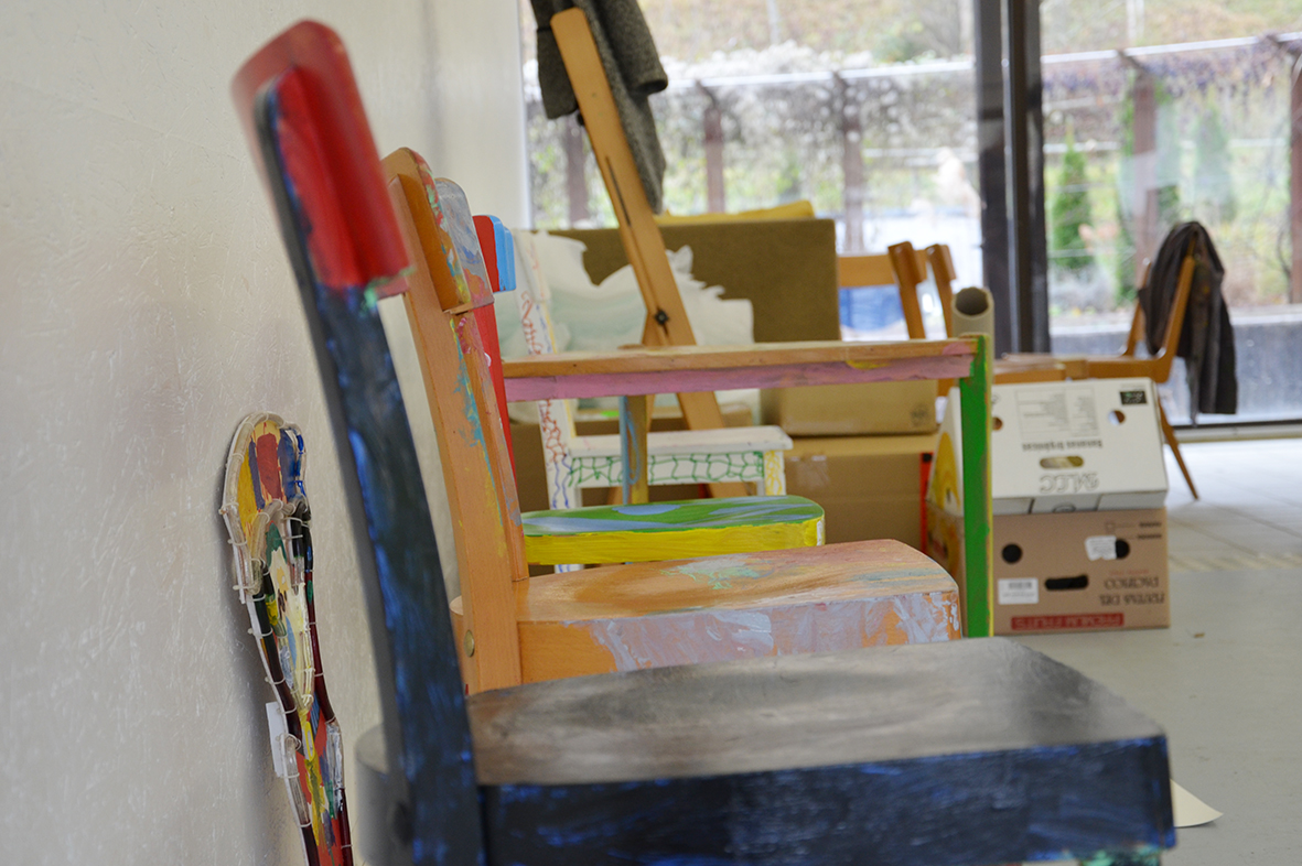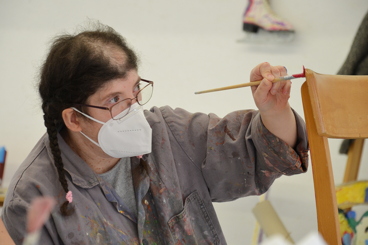 Für die ursprünglich im Advent geplante Ausstellung in der Galerie KULTURFORMEN am Pfarrplatz werden – mit etwas zeitlicher Verzögerung – Möbel und Objekte einer neuen Gestaltung zugeführt.  Geschehen tut das mit einer liebevollen Hingabe, die den fertigen Stücken auch anzusehen ist. Unter der Begleitung von Kristiane Petersmann bemalen oder "bezeichnen" Kund*innen aus Schön Stühle, Tische und wunderbare Kuriositäten, die schließlich den Galerieraum in Linz zu einer in mehrfacher Hinsicht besitzbaren Wunderkammer machen werden. Für unseren Newsblog werfen wir hiermit einen Blick in die Kunstwerkstatt…
