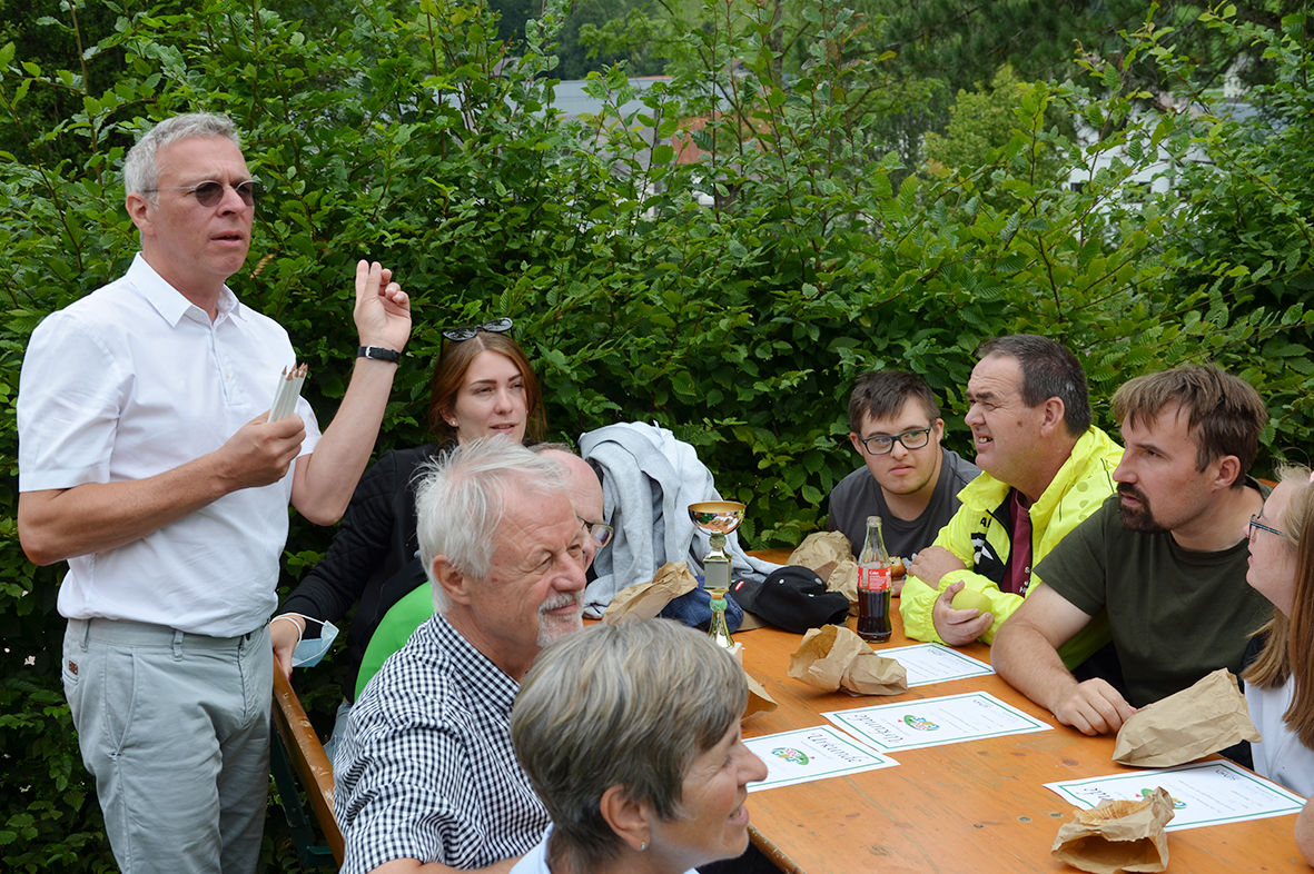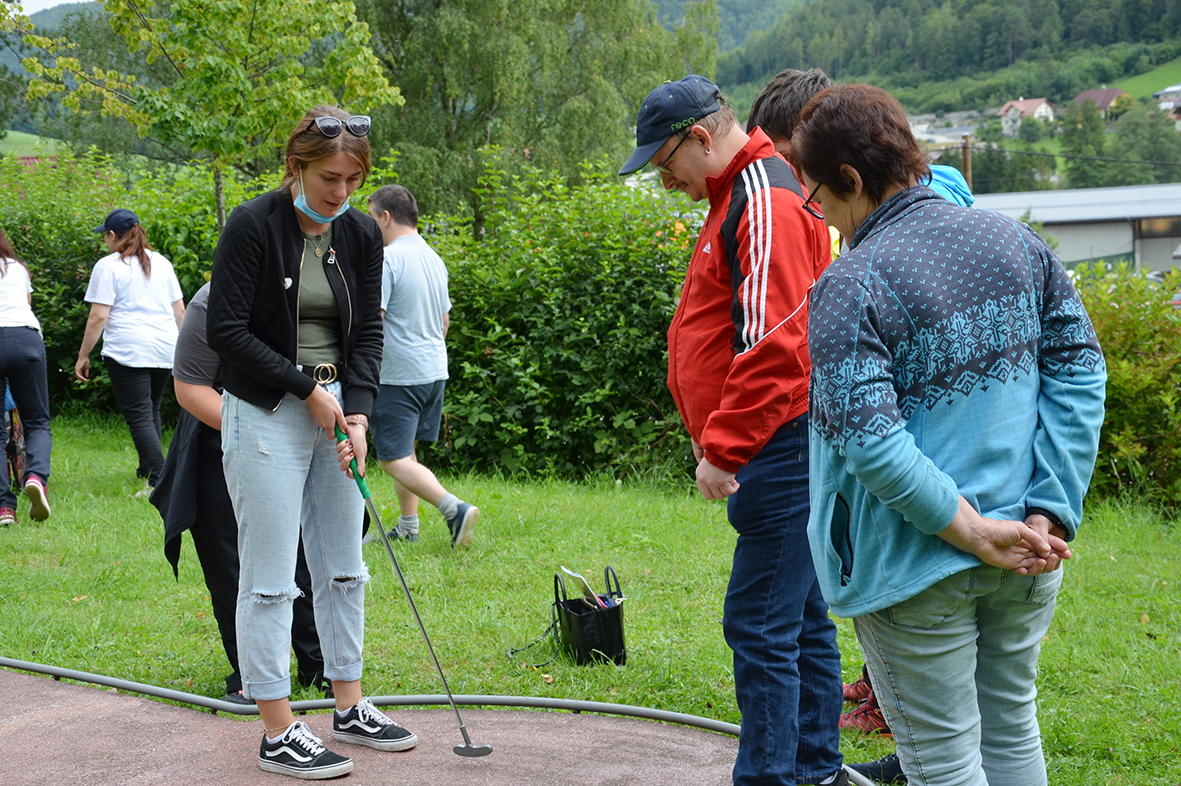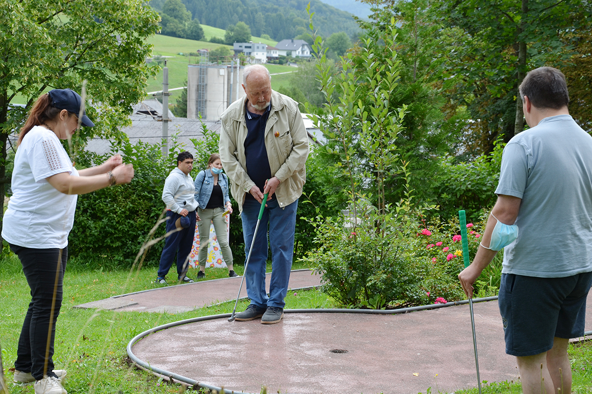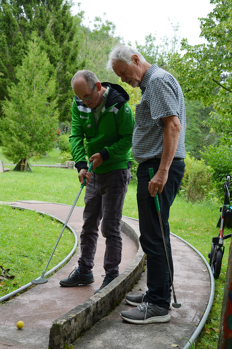 Nach der Absage der "großen" Veranstaltung, die in diesem Sommer am Minigolfplatz als Fest geplant gewesen wäre, konnte zum Glück unser Minigolfturnier im klassischen Stil viele interessierte Teilnehmer*innen aus Schön und auch einige Gäste, von der DIG Klaus über die Lebenshilfe Pettenbach bis zum Seniorenbund Micheldorf motivieren, dabeizusein. Gespielt wurde in unterschiedlichen Teams, so traten die Mitglieder des Seniorenbundes gemischt mit Schönerinnen und Schönern an. Auch der Obmann der GSI, Dr. Wolfgang Schwaiger und seine Frau Angela bildeten gemeinsam mit Christian Klein ein zielsicheres Team, das am Ende auch einen der Preise erhielt.