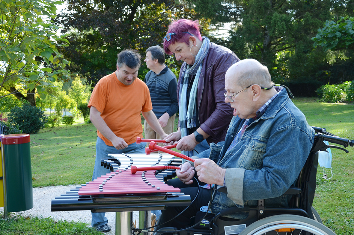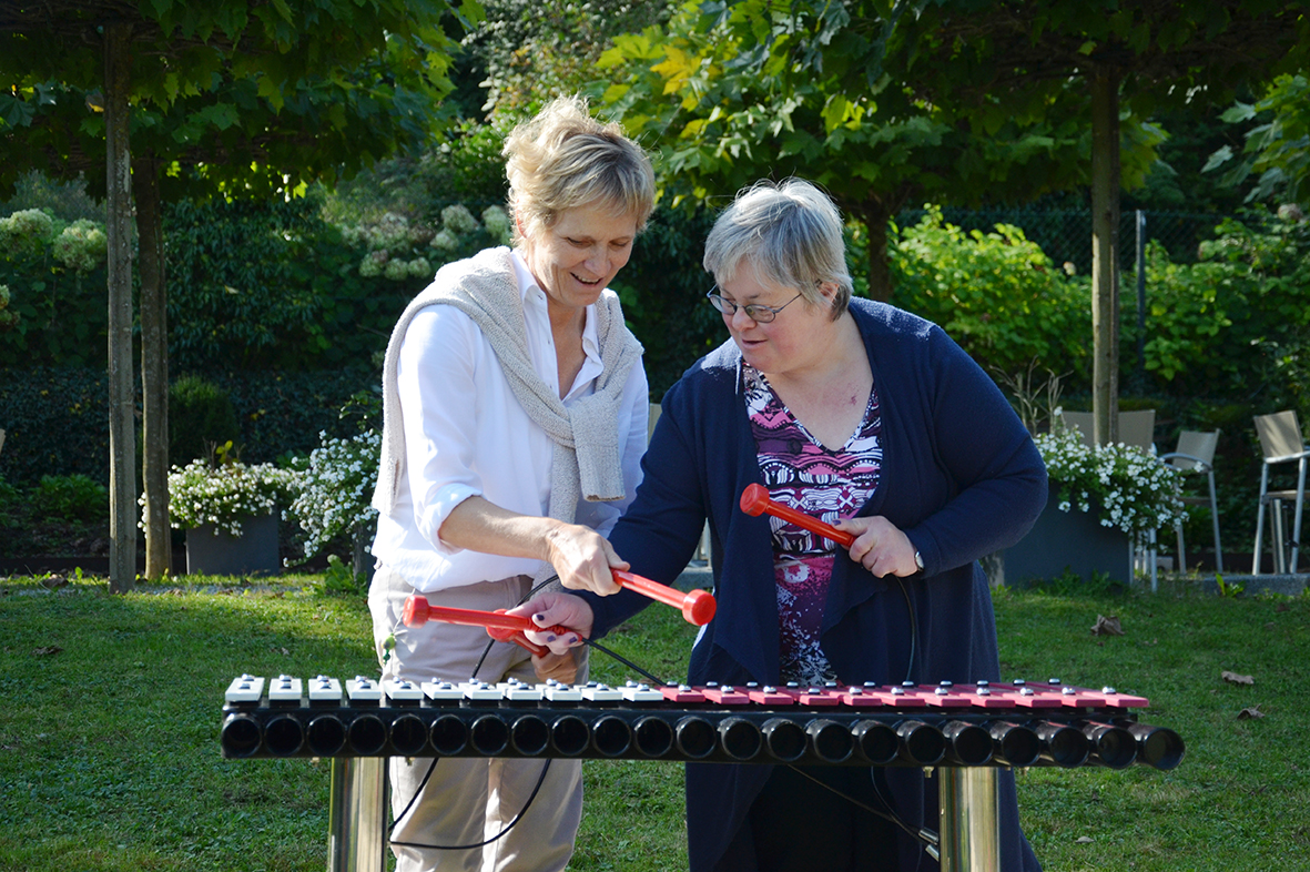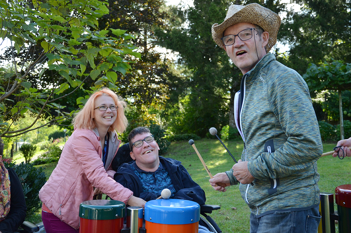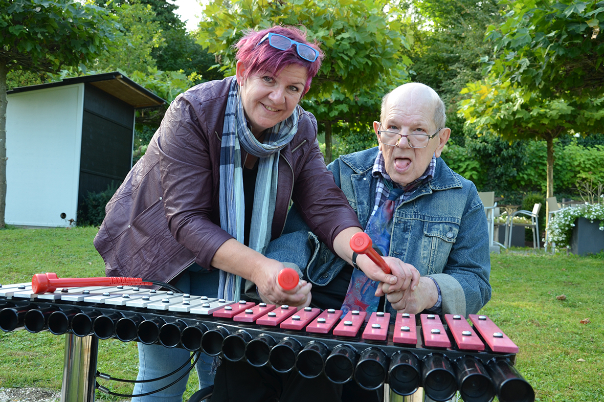 Zur gemeinsamen Erstbespielung versammelten sich viele unserer Bewohnerinnen und Bewohner, sowie die Menschen die in unsere Tagesstruktur kommen mit ihren Betreuerinnen und Betreuern. Und sie haben mit viel Spaß und großer Freude gemeinsam auf den tollen neuen Instrumenten gespielt.