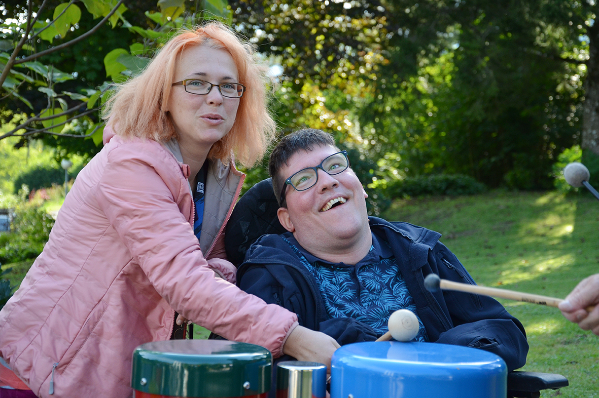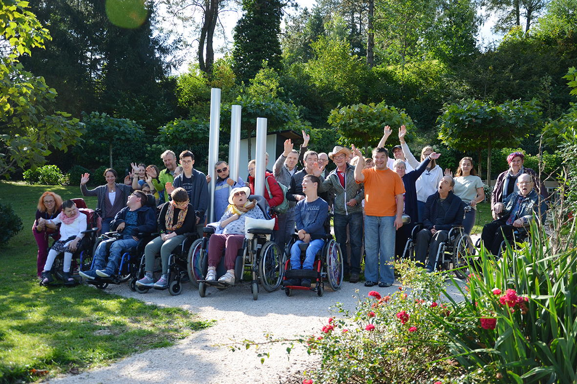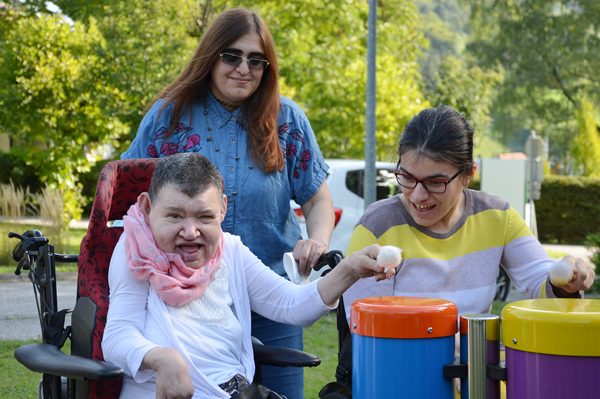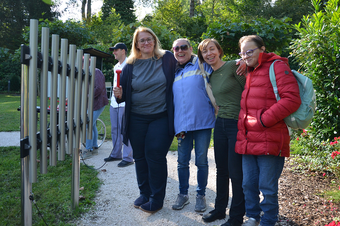 Anfang dieses Herbstes wurden neue Klang-Objekte im Außenbereich, direkt vor dem Kreuzbichlhof aufgestellt und diese sind seither viel in Betrieb! Hier können Menschen, auch mit schweren Beeinträchtigungen, basale Erfahrungen mit Klängen erleben. Alleine oder gemeinsam mit einer betreuenden Person, oder auch im Zusammenspiel mit anderen, bringen sie die unterschiedlichen Objekte zum Klingen. Die Töne, die den Instrumenten entlockt werden können, sind schön und warm und das Spielen ist spannend und macht richtig Spaß!