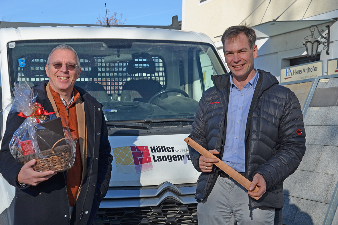 Ein auf den ersten Blick recht einfaches aber edles Produkt aus der Holzwerkstatt in Schön überbrachte Schön Geschäftsführer Mag. Thomas Weixlbaumer kurz vor Weihnachten DI Christian Langeneder. Ein Schuhlöffel – bestehend aus sieben übereinander geleimten Schichten – symbolisiert Stabilität und stellt eine wertvolle Hilfe dar, für die Person, die ihn benutzt.