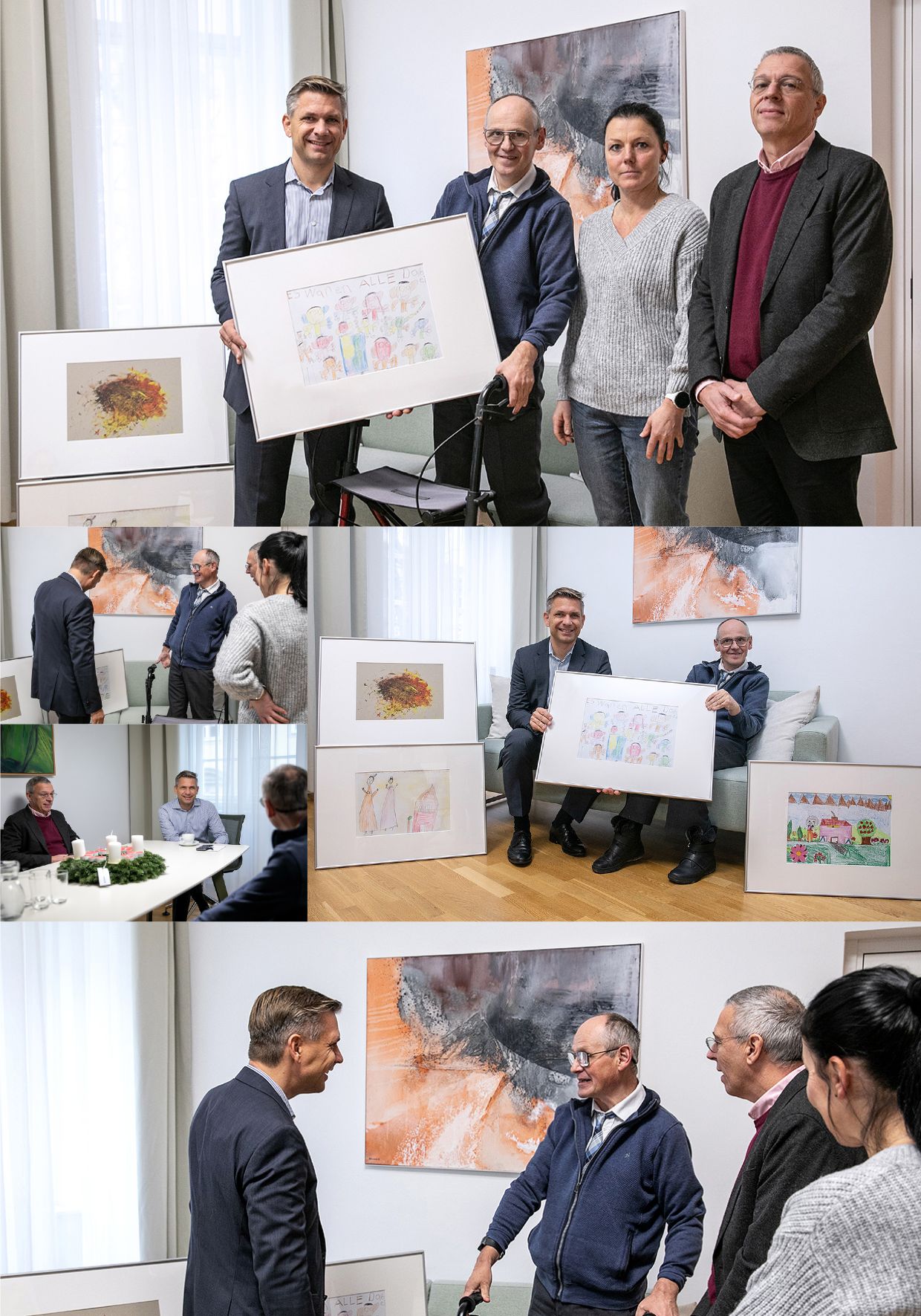 Fast zwei Jahre lang waren mehr als hundert Bilder aus dem Atelier Schön im Landesdienstleistungszentrum ausgestellt. Nun hat eine kleine Delegation aus Schön einige Bilder aus dieser Ausstellung Landesrat Dr. Wolfgang Hattmannsdorfer für Räumlichkeiten des Landes Oberösterreich überlassen. Bei einem Besuch im Büro des Soziallandesrates in der Linzer Altsdadt wurde natürlich auch über die Bilder und die Kunst geplaudert.