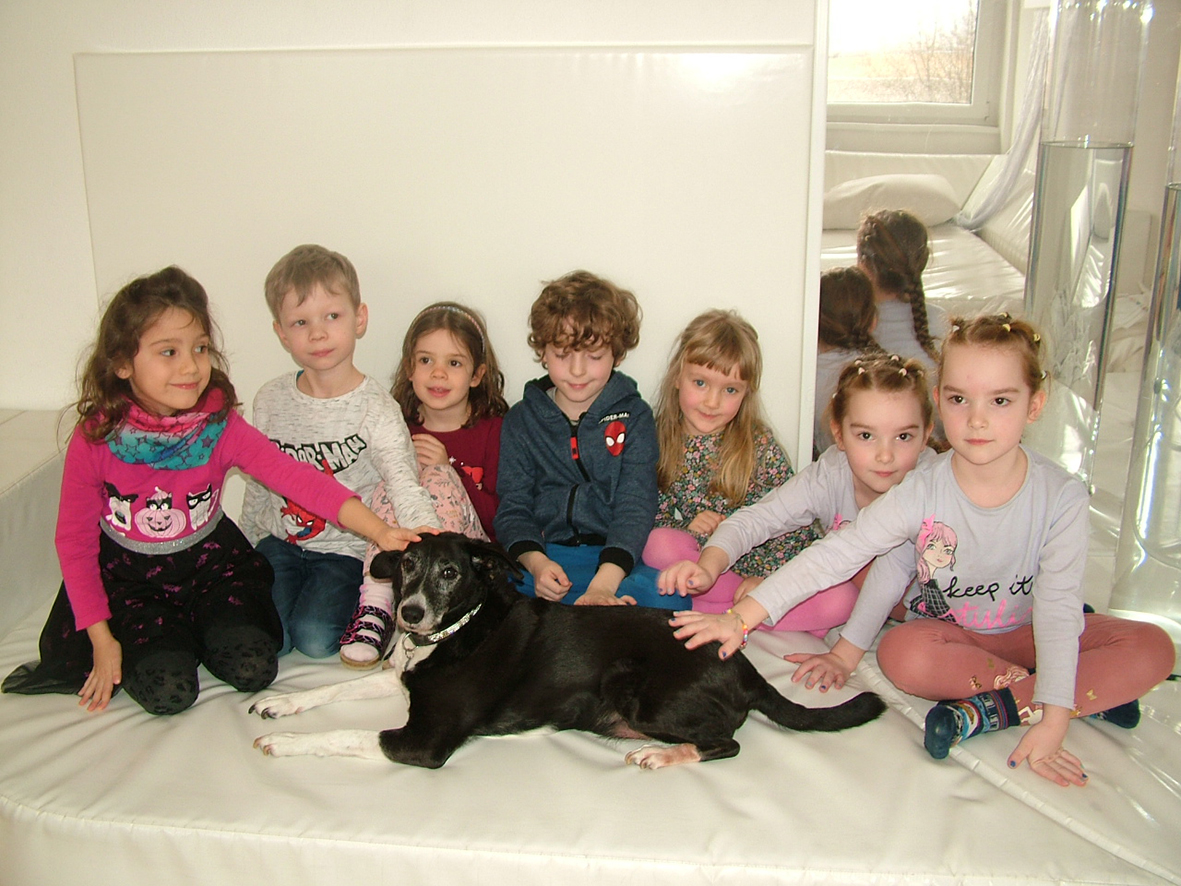 Die Tage, an denen Hund Blacky mit seinem Herrchen zu uns ins Institut Hartheim kommt, sind für die Kinder und Jugendlichen von unserem Hort und Kindergarten immer ganz besondere. Sie lieben es, mit Blacky zu kuscheln, ihn streichen oder mit Leckerli verwöhnen zu dürfen. Sie lernen achtsam mit ihm umzugehen und beobachten ihn und sein Verhalten sehr gerne. Tiergestützte Pädagogik hat in unserem Kindergarten und Hort (  www.institut-hartheim.at ) einen hohen Stellenwert. Dabei wird auf die positive Wirkung eines Tieres gesetzt. Tiergestützte Pädagogik bereichert das Arbeiten mit den Kindern und Jugendlichen und ist ein Baustein im Hinblick auf die Entfaltung ihrer Kompetenten. (Jedes Tier, das in Tiergestützter Pädagogik eingesetzt wird, muss ein Ausbildung mit seinem Herrchen/Frauchen absolviert haben.)