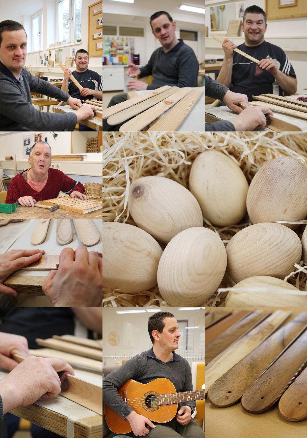 Die schönen Schuhlöffel werden in vielen einzelnen Arbeitsschritten und mit Perfektion gefertigt. Alle diese Schritte können gemeinsam ausgeführt werden und so manche unserer Kund*innen sind dabei Spezialisten für einzelne Tätigkeiten. Jakob P. und Andreas K. zum Beispiel sind Profis in ihren Bereichen. Die aus 7 (!) aufeinandergeleimten Schichten bestehenden Schuhlöffel müssen geschliffen und am Ende auch geölt werden, bis sie – sorgsam versehen mit einem Schön-Branding – schließlich in den Verkauf gelangen.