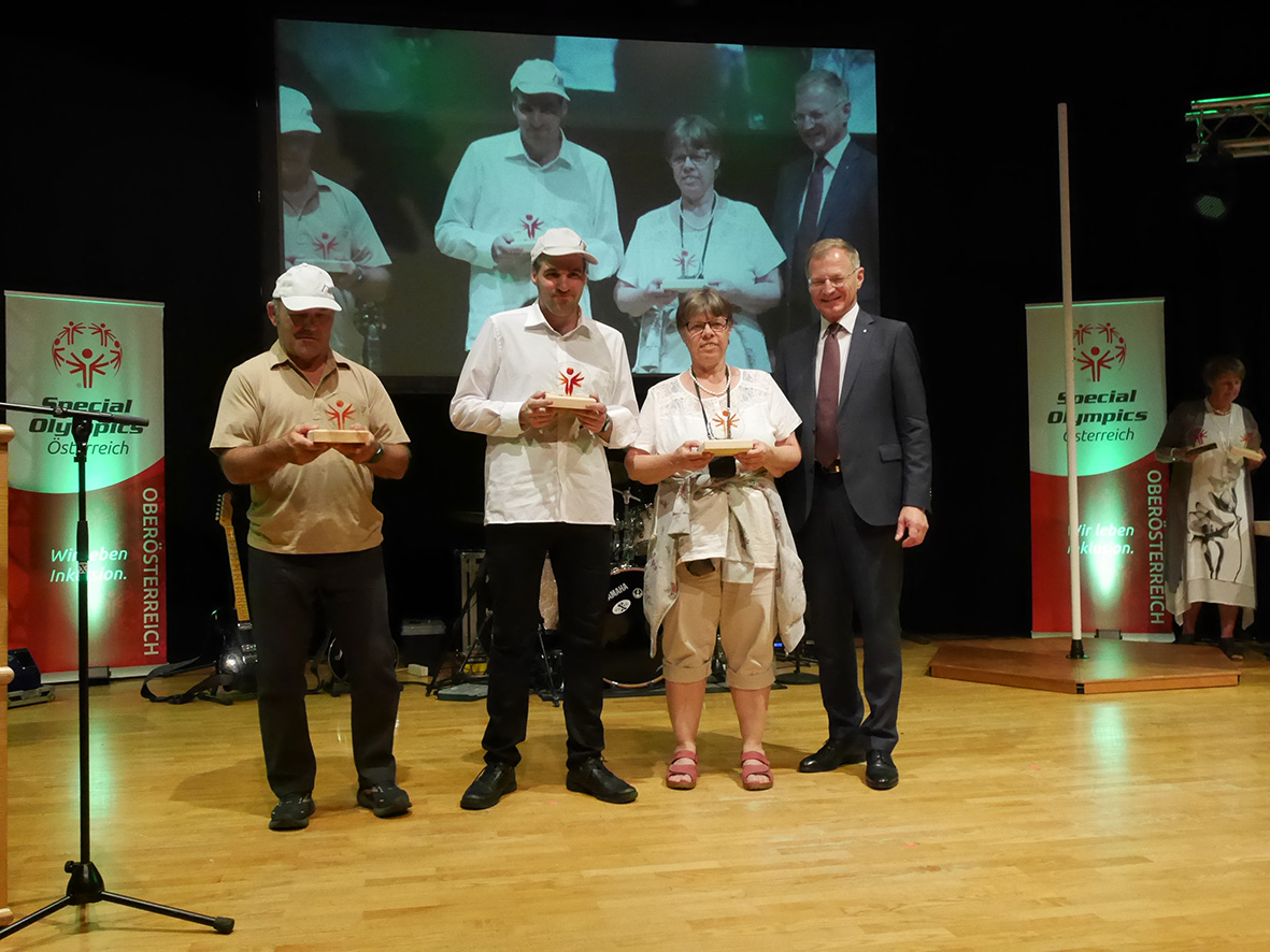 Mit viel Enthusiasmus und Freude war unsere kleine Delegation beim ersten "Special Olympics Oberösterreich Ball" im Kulturzentrum Timelkam dabei. Im Rahmen der Veranstaltung wurden die Gewinner:innen der nationalen Spiele der Special Olympics 2022 von LH Mag. Thomas Stelzer geehrt und die oberösterreichische Delagation für die Weltspiele in Berlin 2023 verabschiedet.