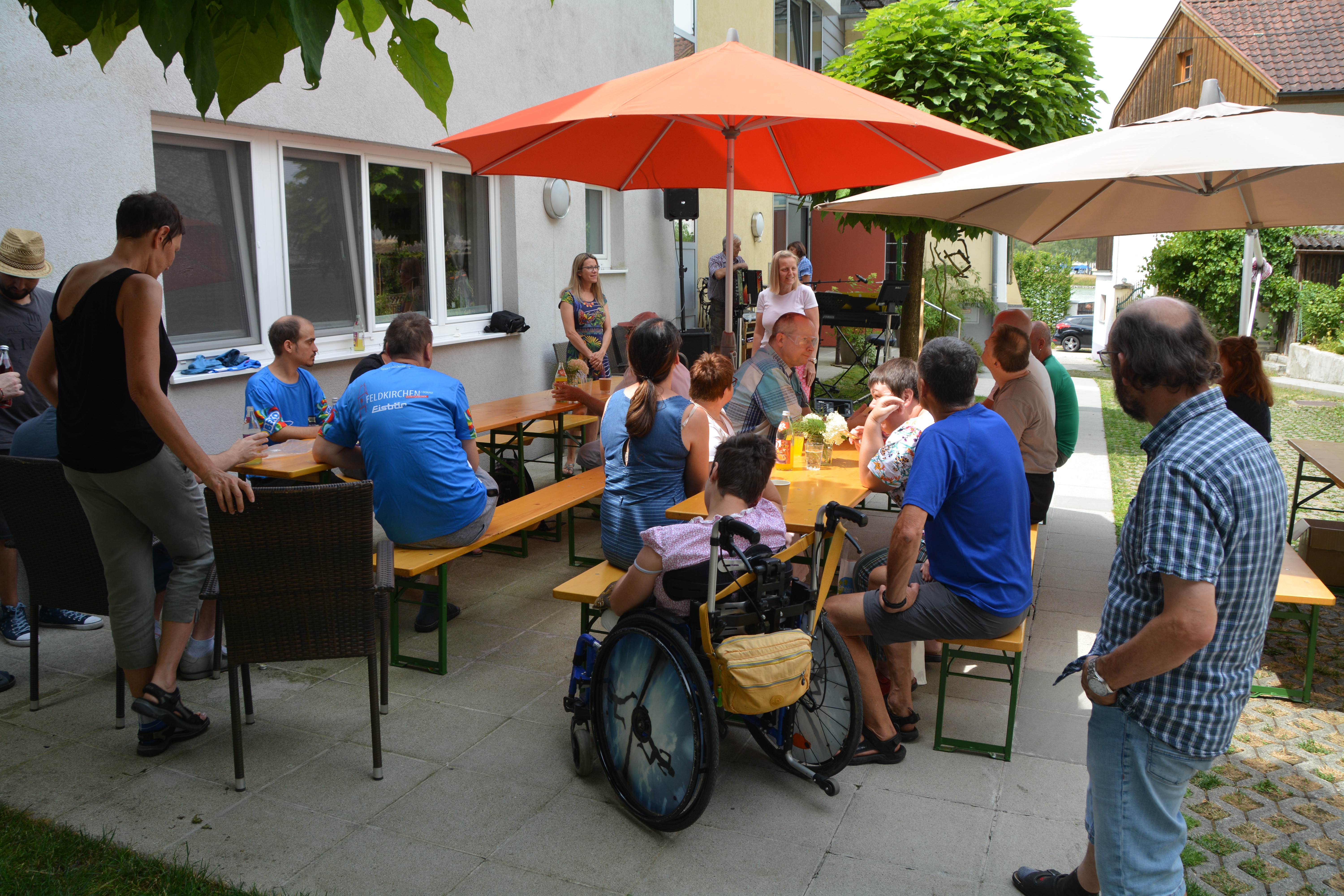 Vor 20 Jahren sind die ersten Bewohner:innen in unsere Außenstelle in Oberlandshaag in der Gemeinde Feldkirchen gezogen. Grund genug zu feiern und es sich bei "Bratl' aus da Rein" und anschließendem Tanz gut gehen zu lassen. Dass Bewohner:innen und Mitarbeiter:innen sehr gut harmonieren, konnte man auch bei diesem Fest wieder feststellen. Es sind die scheinbar kleinen Gesten, hinter denen sich Großes verbirgt: Zuwendung, die agogisches Arbeiten und gelingendes Leben erst möglich macht.