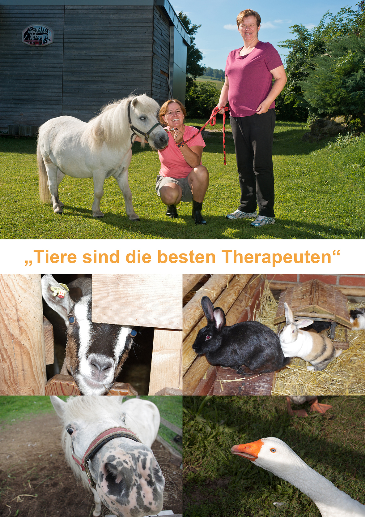Tiere sind eine enorme Bereicherung im Alltag der von uns betreuten Menschen. Sie schenken den Menschen Aufmerksamkeit und Zuneigung und erfahren gleichzeitig von unseren Bewohner:innen Zuwendung und Liebe. Tiere haben keine Vorurteile, für sie ist nur der respektvolle Umgang von Bedeutung. In der Arbeit mit den Tieren erlernen die Menschen in unserer Einrichtung auch ein Stück weit Selbstbestimmung und Verantwortungsbewusstsein. Oft sind sie in der Position derer, um die sich andere kümmern und sie unterstützen. Bei der Pflege und Betreuung der Tiere erfahren sie einen Rollenwechsel, nun sind sie in der Verantwortung - eine ganz wesentliche Erfahrung in der persönlichen Entwicklung.