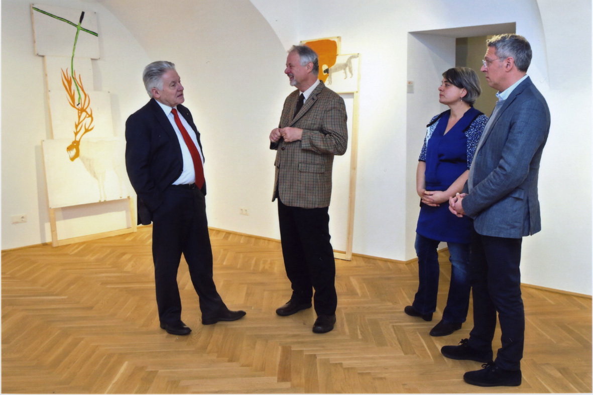 Landeshauptmann Dr. Josef Pühringer kam auf Einladung von Obmann Dr. Wolfgang Schwaiger und der Leiterin der KULTURFORMEN Mag.a Kristiane Petersmann und GF Mag. Thomas Weixlbaumer zu Besuch in die neue Galerie und das Café Viele Leute am Pfarrplatz in Linz. Der Landeshauptmann zeigte sich beeindruckt von den Werken der jungen KünstlerInnen des italienischen Atelier dell´errore, die in der aktuellen Ausstellung gezeigt werden.