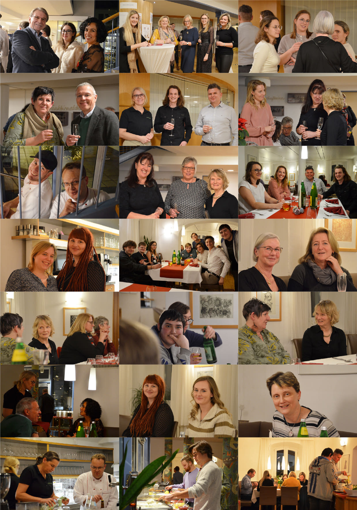 Ende Jänner fand in Schön ein Empfang für alle Kolleginnen und Kollegen statt, die aktiv in Schön beschäftigt sind, oder die – schon im Ruhestand – immer noch gerne ihre Kontakte zur Schön pflegen. Nach einem Prosecco-Empfang und begrüßenden Worten unseres Geschäftsführers Mag. Thomas Weixlbaumer, waren alle zu einem feinen Abendesssen im hauseigenen Restaurant eingeladen. Das Küchenteam zauberte dabei einfache aber dafür unheimlich gute Mahlzeiten für alle – vom gebackenen Henderl, über Vegatarisches bis hin zum Veganen Menü, war alles vorbereitet. Das Essen war natürlich wichtig und fein, aber die Hauptsache waren viele nette Gespräche und gute Laune! Danke an alle, die gekommen sind und Danke an alle, die an diesem Abend den Dienst in den WGs und in Küche und Service machten! Auch ein Danke geht an unsere Geschäftsleitung, für diese Einladung.