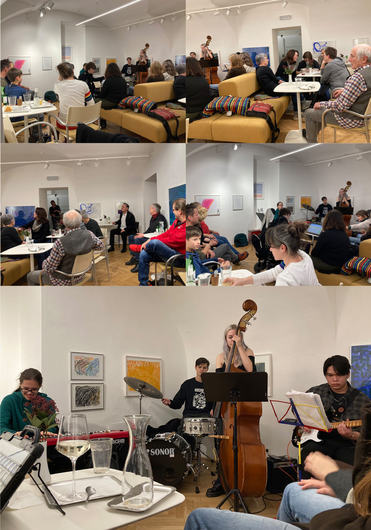 Kleine, feine Konzerte werden schön langsam zu einer neuen akustisch-chilligen Spezialität im Café Viele Leute…… :) Ein wirklich feines Jazzkonzert zu Jahresbeginn gab eine junge Formation, die sich im nahegelegenen Musikgymnasium gefunden hat! Bereits zum zweiten Mal hat das Quartett am 5. Jänner mit einem überzeugenden Repertoire quer durch die Jazz-Standards für beste Simmung gesorgt. Wir bedanken uns ganz herzlich bei den drei jungen Musikern und der jungen Musikerin!