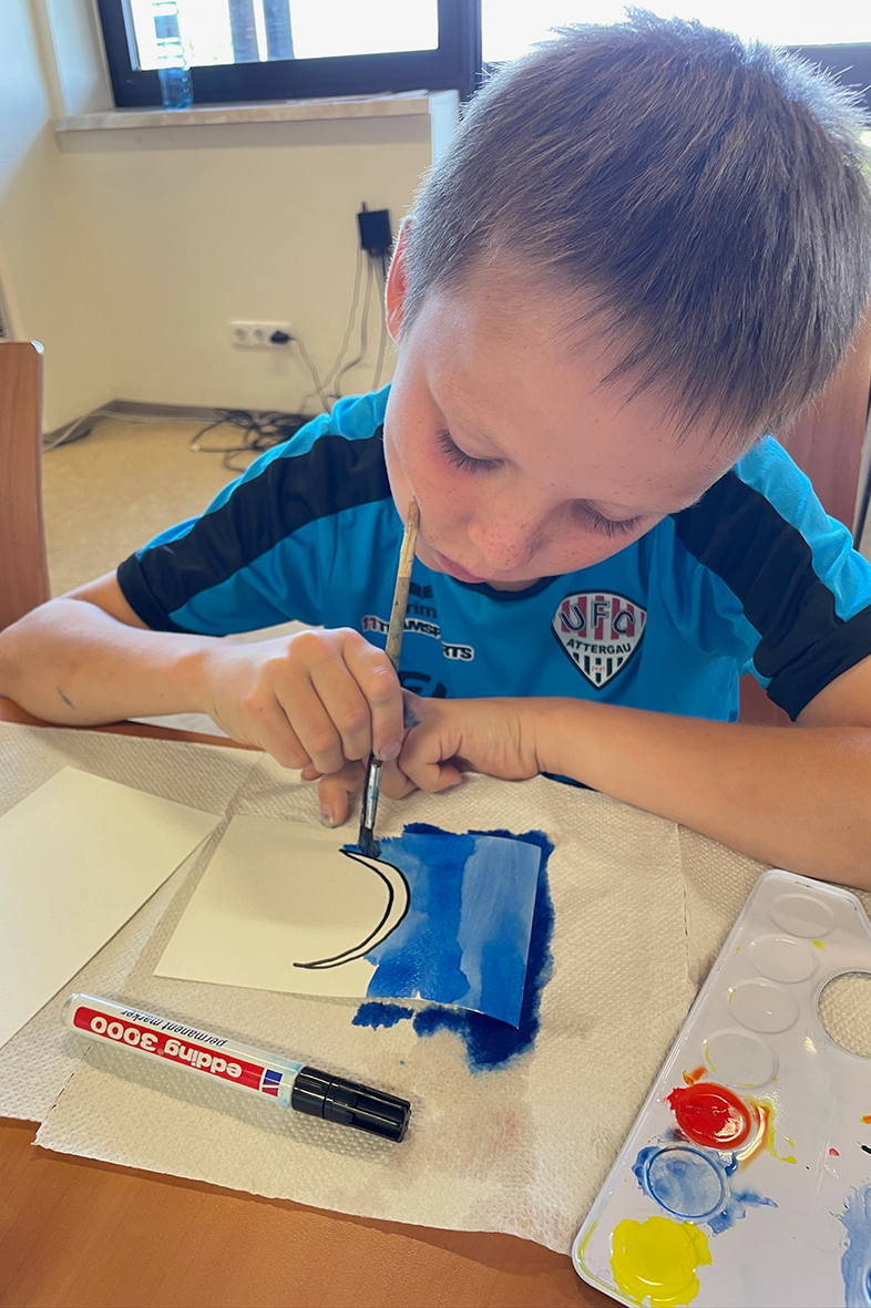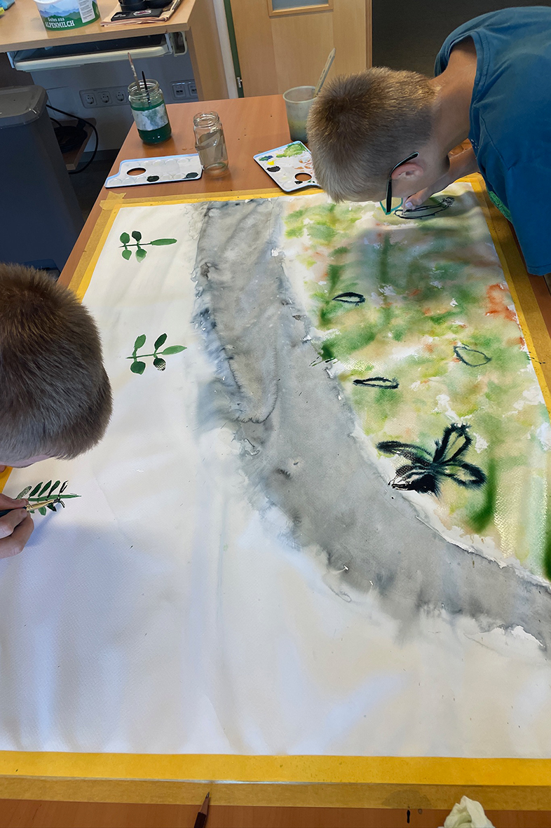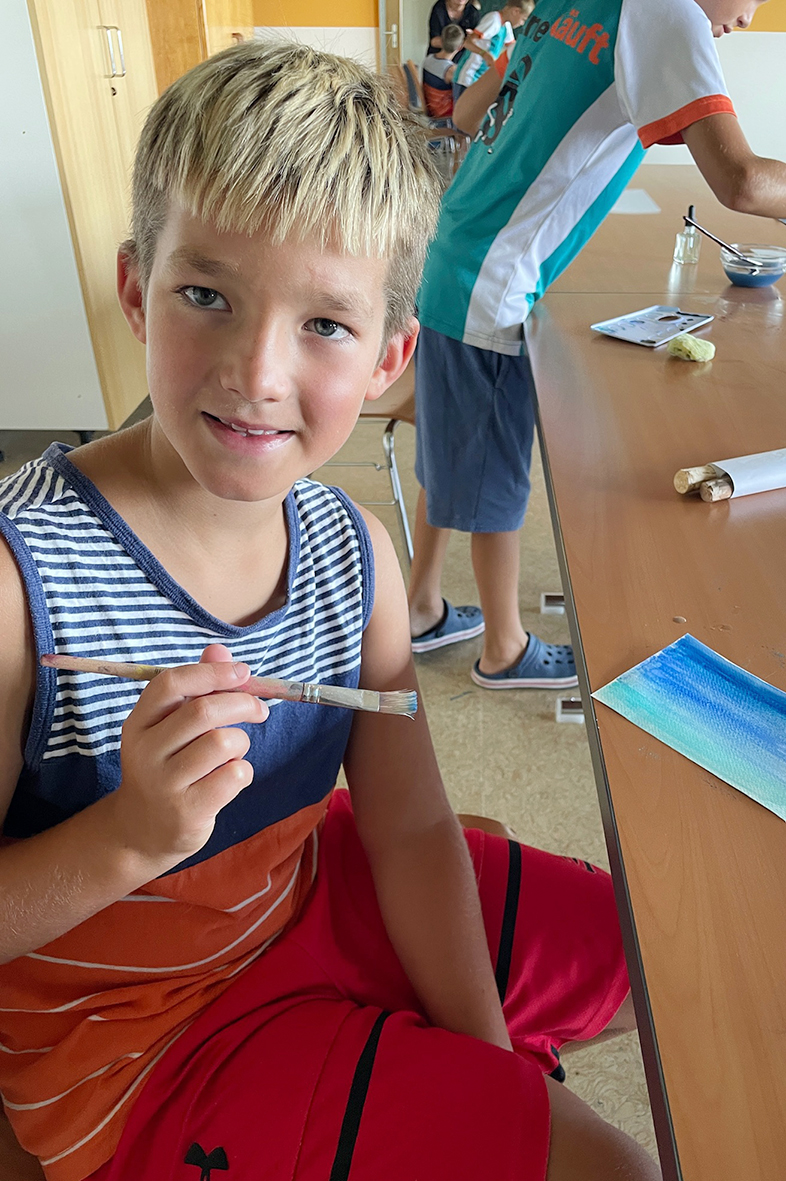 Bereits zum dritten Mal bot Kristiane Petersmann, die Leiterin der KULTURFORMEN gemeinsam mit dem Bühnenbildner Moritz Nitsche einen Sommerworkshop für Kinder aus der Ukraine an, die seit Beginn des Krieges in ihrem Land von der Einrichtung NOAH in St. Georgen im Attergau betreut werden. In diesem Jahr standen dabei die Farben aus der Natur im Fokus des Geschehens. Am Anfang stand dabei die Annäherung an Farben in ihren verschiedensten Schattierungen. Die Kinder und Jugendlichen malten dazu viele Farbabstufungen mit Aquarellfarben und setzten sich in einem zweiten Schritt mit dem Vorkommen von Farben in der Natur –  in Wasser, Himmel und in der Pflanzenwelt – auseinander. Ganz wunderbare Bilder sind dabei eintstanden!