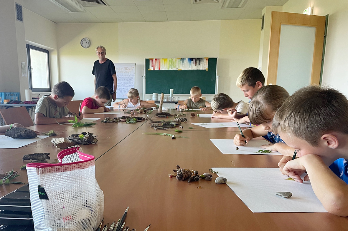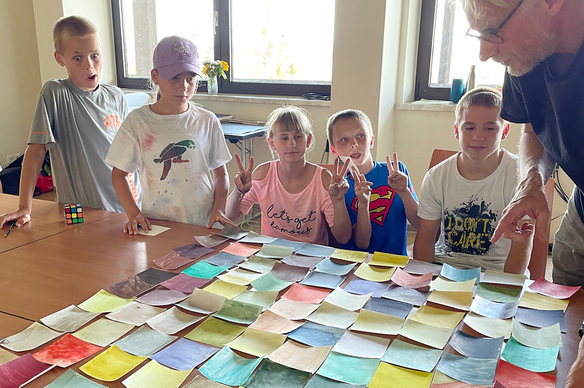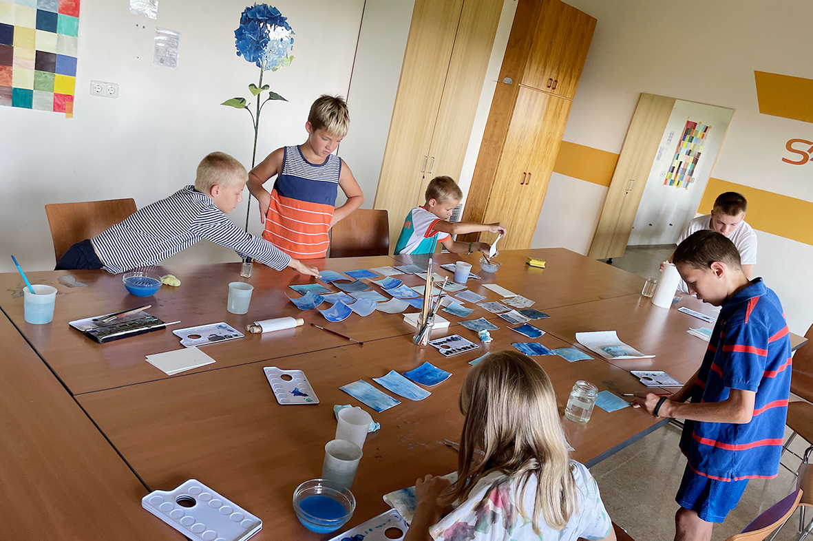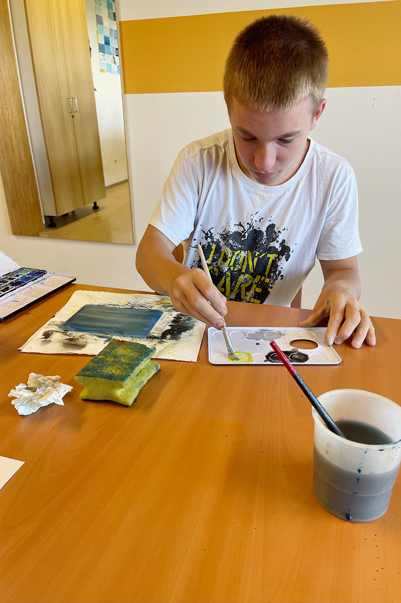 Bereits zum dritten Mal bot Kristiane Petersmann, die Leiterin der KULTURFORMEN gemeinsam mit dem Bühnenbildner Moritz Nitsche einen Sommerworkshop für Kinder aus der Ukraine an, die seit Beginn des Krieges in ihrem Land von der Einrichtung NOAH in St. Georgen im Attergau betreut werden. In diesem Jahr standen dabei die Farben aus der Natur im Fokus des Geschehens. Am Anfang stand dabei die Annäherung an Farben in ihren verschiedensten Schattierungen. Die Kinder und Jugendlichen malten dazu viele Farbabstufungen mit Aquarellfarben und setzten sich in einem zweiten Schritt mit dem Vorkommen von Farben in der Natur –  in Wasser, Himmel und in der Pflanzenwelt – auseinander. Ganz wunderbare Bilder sind dabei eintstanden!
