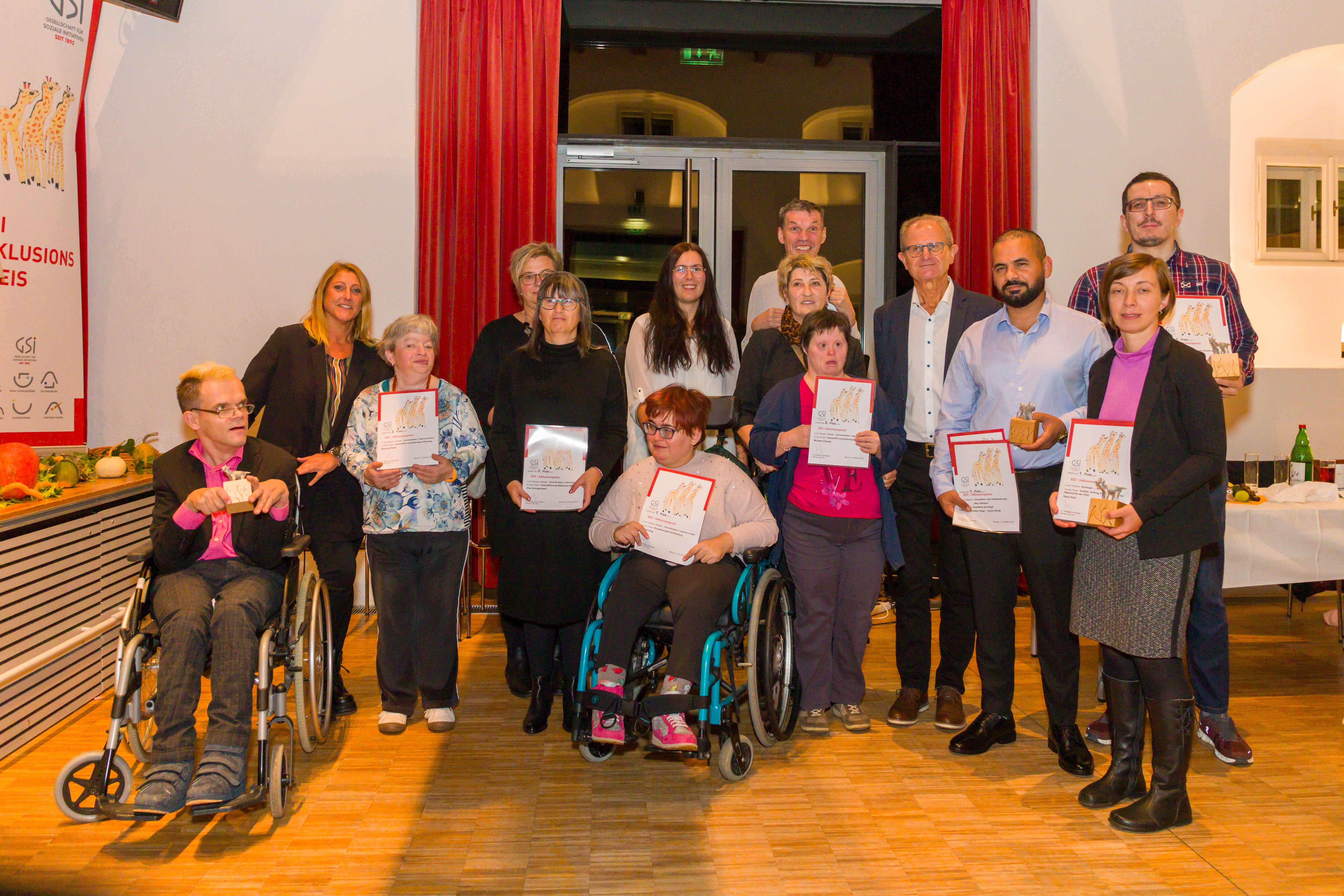Vergangenen Donnerstag, den 10. Oktober, verlieh die “GSI-Gesellschaft für Soziale Initiativen” bereits zum vierten Mal den GSI-Inklusionspreis im Rahmen des Inklusionsforums 2024. Zahlreiche Besucher:innen haben sich im Kulturtreff der Gemeinde Alkoven eingefunden und feierten gemeinsam die glücklichen Preisträger:innen in den fünf Kategorien „Innovation und Verbesserung“, „Synergie“, „Soziales“, „Jugend“ und „Kunst“. Moderiert wurde die Veranstaltung von GSI Obmann Dr. Wolfgang Schwaiger und IV-Sprecher Erwin Kowar. Ehrengäste waren unter anderem Bgm.in Mag.a Monika Weberberger-Rainer, Labg. Thomas Antlinger  und Vertreter:innen der GSI-Vereinsleitung. Highlight der Veranstaltung waren die vielen künstlerischen Einlagen der Menschen aus den verschiedenen GSI-Tochterfirmen.