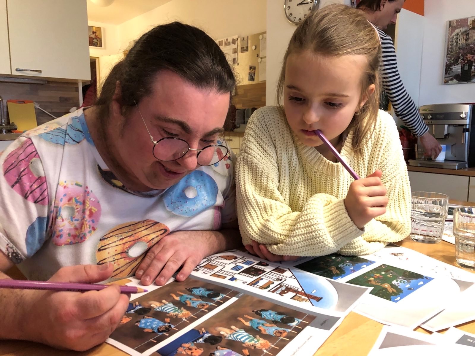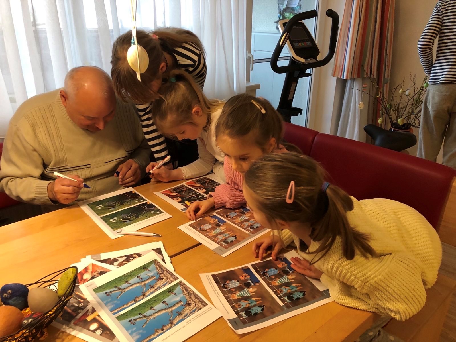 Eine Bewohnerin hat den Kindern Fotos gezeigt, als sie selber bei der Erstkommunion war, davon waren die Kinder schwer beeindruckt. Es war ein sehr gelungener Nachmittag den alle genossen haben. Die Kinder wollen sehr bald wieder in die WG kommen und die Bewohner:innen besuchen.