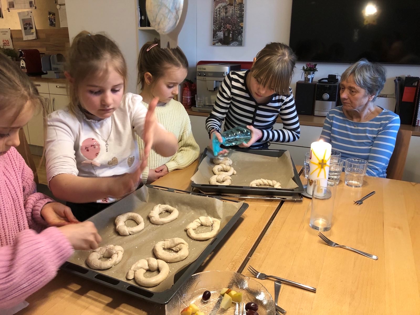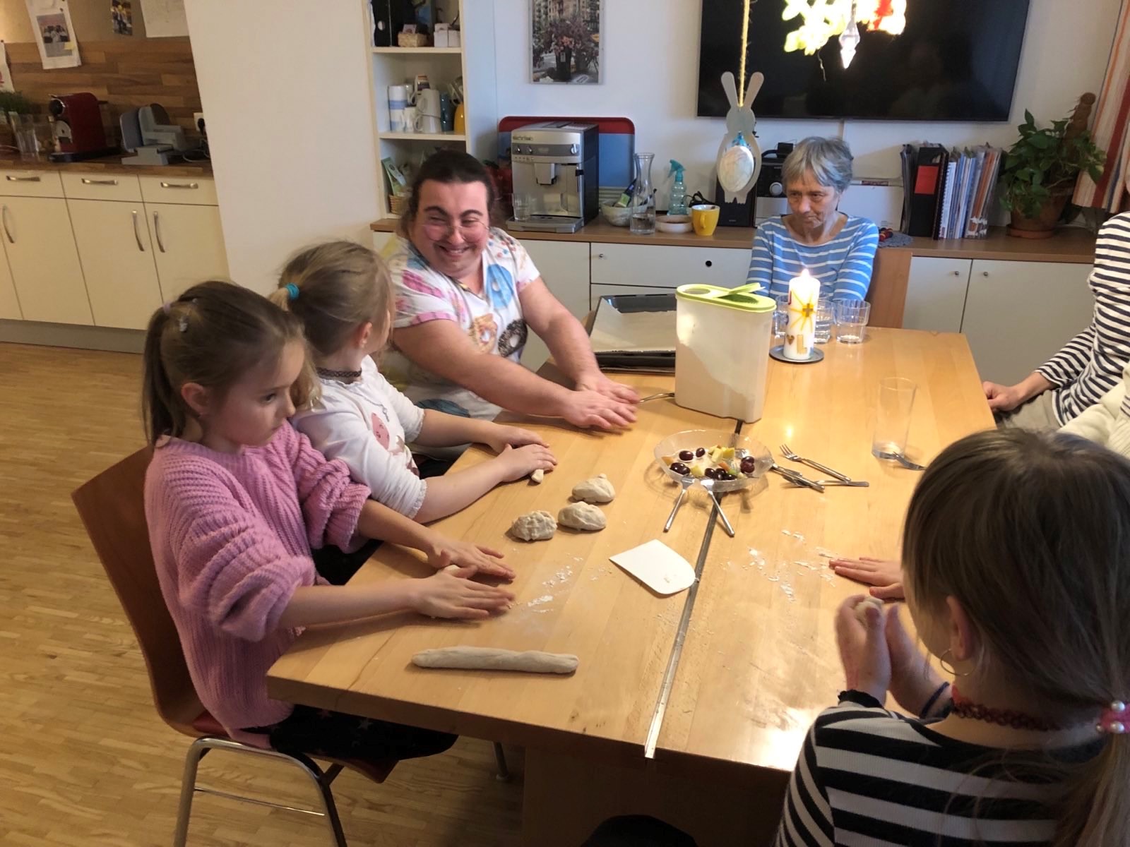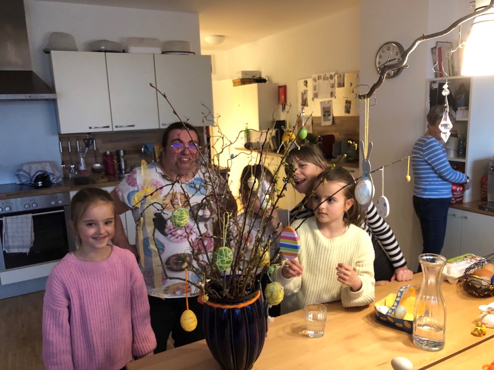 Im März waren Kinder aus Ottensheim im Zuge der Vorbereitung zur Erstkommunion zu Besuch in der Wohngruppe Ottensheimat SAT. Nach einer kleinen Vorstellrunde haben die Kinder die Wohngemeinschaft mit Osterdekoration geschmückt. Ein Osterstrauch durfte dabei natürlich nicht fehlen. Danach wurden gemeinsam Rätsel gelöst und Fastenbrezen gebacken, die im Anschluss geteilt und gegessen wurden. Zum Abschluss wurde mit großer Freude gesungen und getanzt. Die Kinder konnten alle Bewohner:innen dazu motivieren, was ein besonders Erlebnis für alle war.
