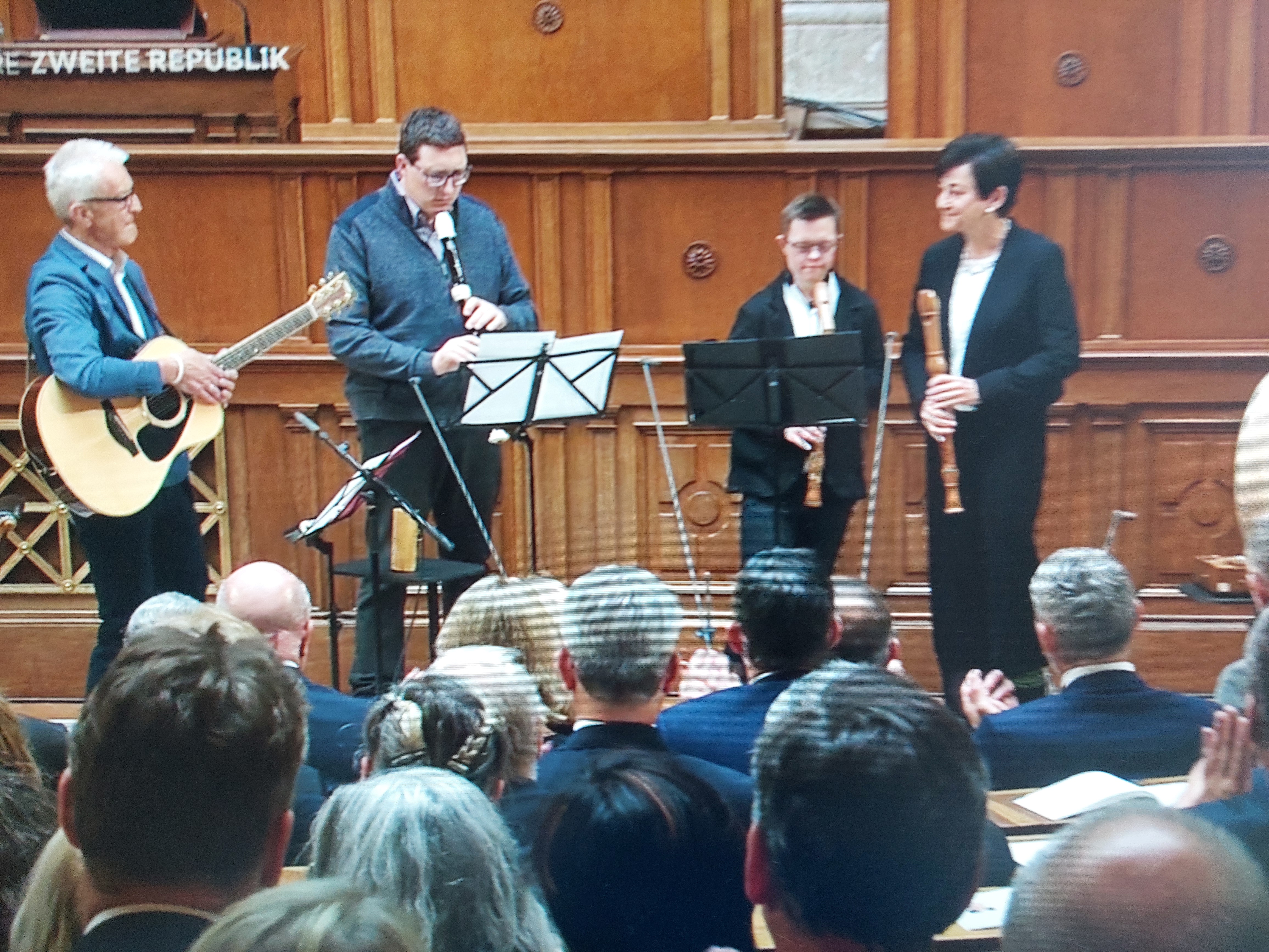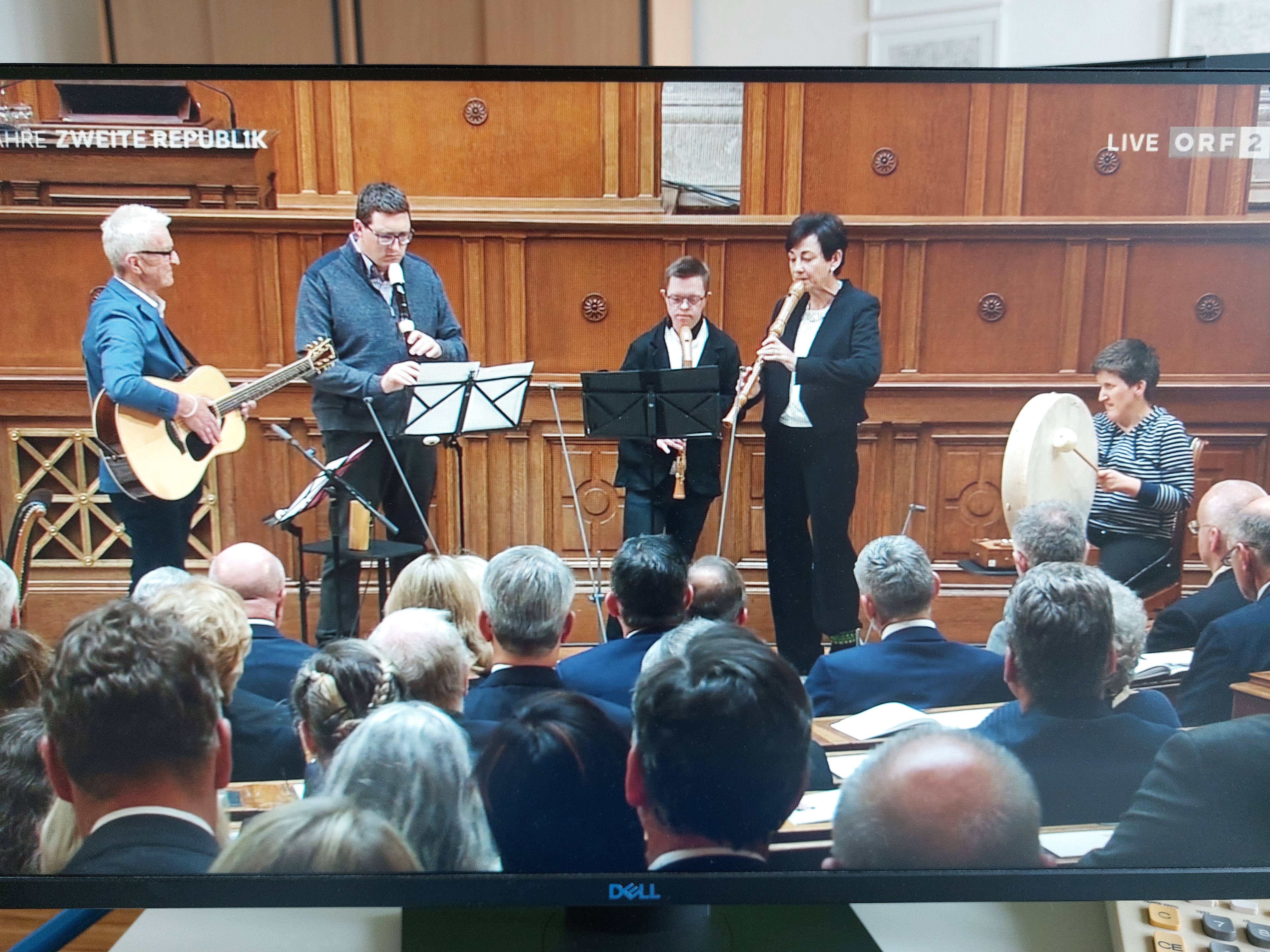 Musiker:innen aus dem Institut Hartheim bei der Gedenkfeier im Parlament