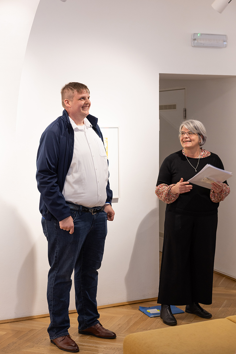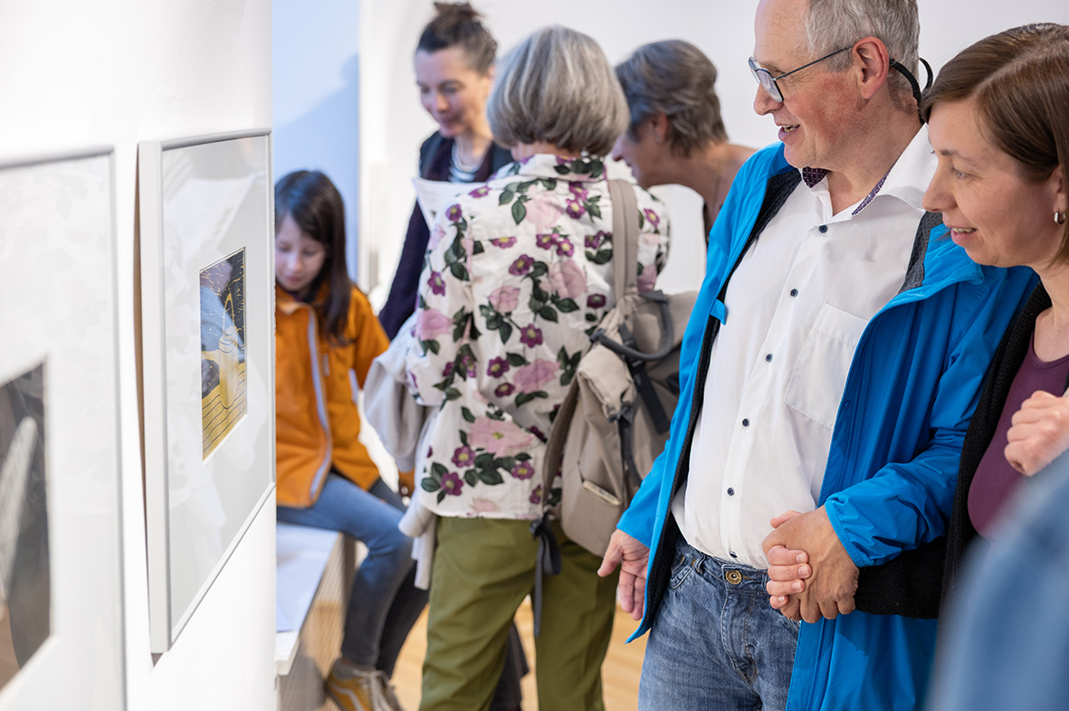 Anlässlich des siebenten internationalen, inklusiven Kulturfestivals sicht:wechsel zeigt die Galerie nun bis zum 5. Juli neue Werke von Kevin Lombard. Der junge Künstler, er arbeitet seit einigen Jahren im Atelier Kunst Inklusiv in Regensburg, hat für diese Ausstellung wunderbare Stilleben geschaffen. Seine Bilder sind in Linol- und Holzschnitttechnik erstellte Druckgrafiken, klar, expressiv und voller Kontraste. Gut gelaunt feierte Kevin Lombard bei der Vernissage gemeinsam mit den Gästen auch seinen Geburtstag. Der Musiker Günther Gessert spielte ein Happy Birthday auf seinem Marxophone und alle Gäste stimmten mit ein. Die Ausstellung in der Galerie Kulturformen, mit dem Fokus auf Kunst von Menschen mit Beeinträchtigungen, kann jeweils zwischen Dienstag und Samstag von 10-18 Uhr besucht werden.