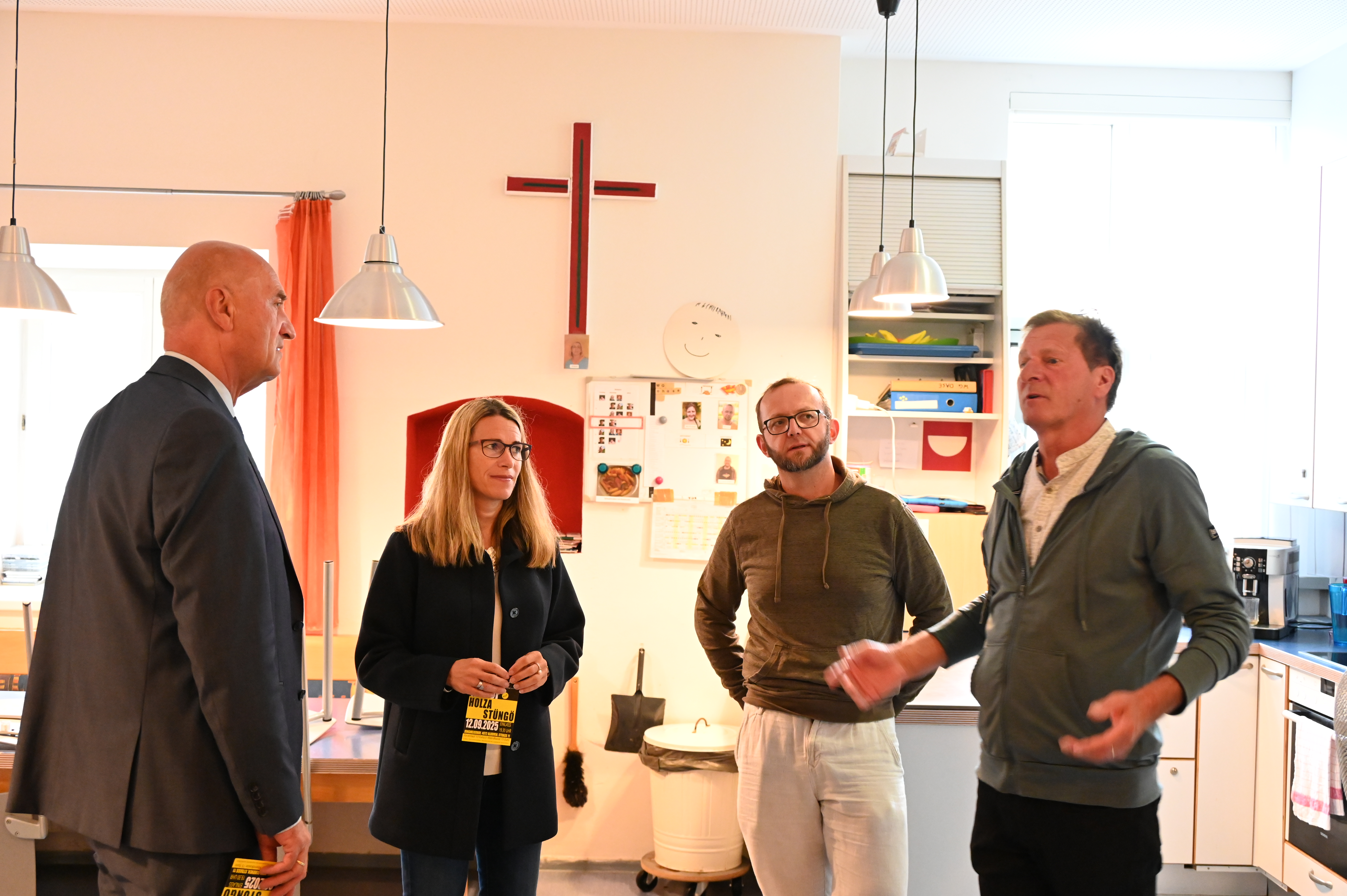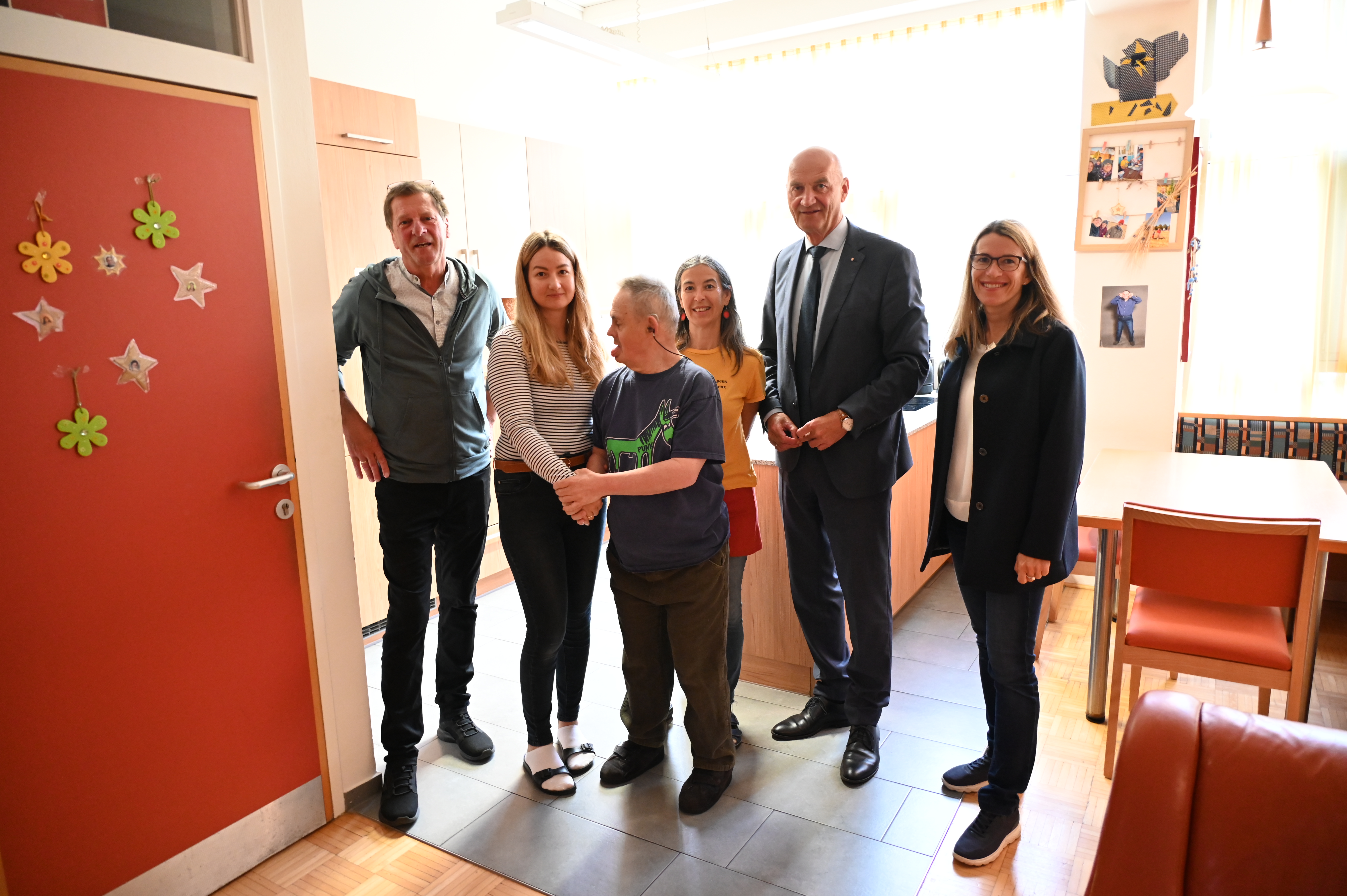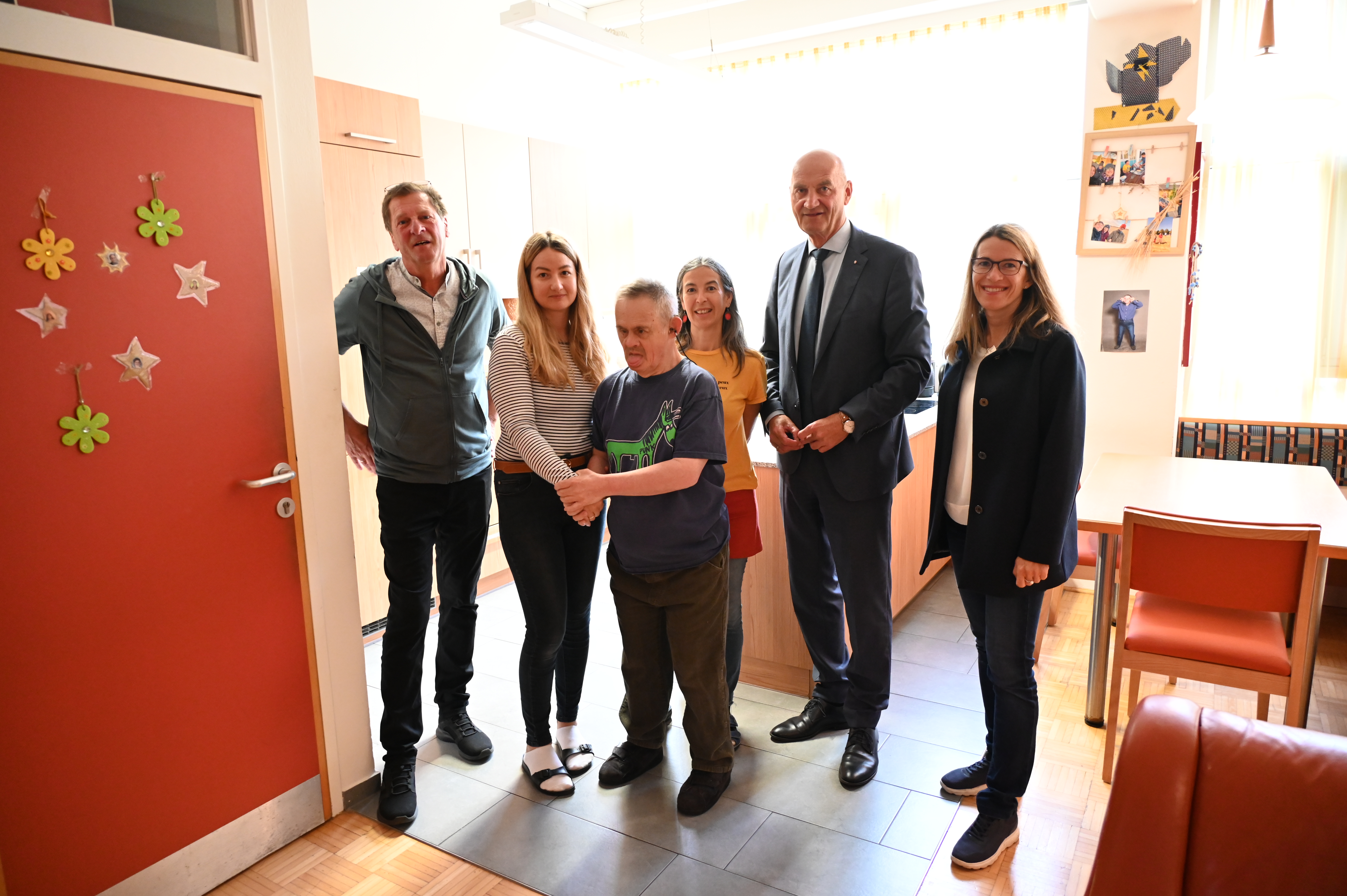 Im Institut Hartheim werden seit nunmehr sechzig Jahren Menschen aller Altersgruppen mit kognitiven und mehrfachen Beeinträchtigungen betreut und gepflegt. Professionelle Begleitung und eine hohe Qualität der angebotenen Betreuungsleistungen sind ein zentrales Anliegen unseres Hauses. Um diesem Anspruch gerecht werden zu können, erfolgt ein regelmäßiger Austausch mit den Entscheidungsträger:innen des Landes Oberösterreich. So wurden beim Besuch von Landesrat Dr. Christin Dörfel vergangenen Donnerstag vor allem die Belange unserer Außenstellen “Jungmeierhof” und “Auingerhof” ausführlich besprochen. Landesrat Dr. Dörfel bedankte sich bei den Mitarbeiter:innen für die ausgezeichnete Arbeit und war an den besonderen Herausforderungen in der Betreuung an diesen beiden Standorten sehr interessiert.