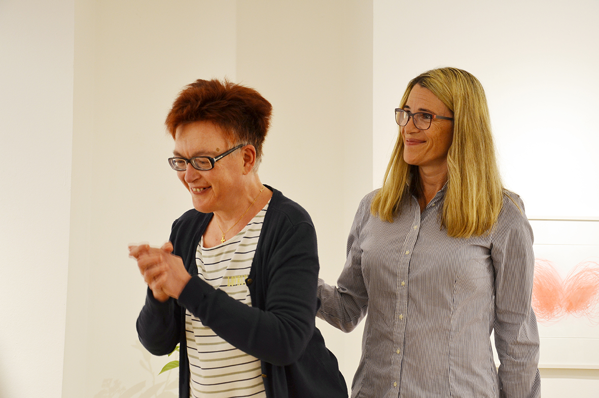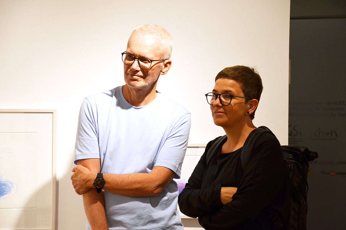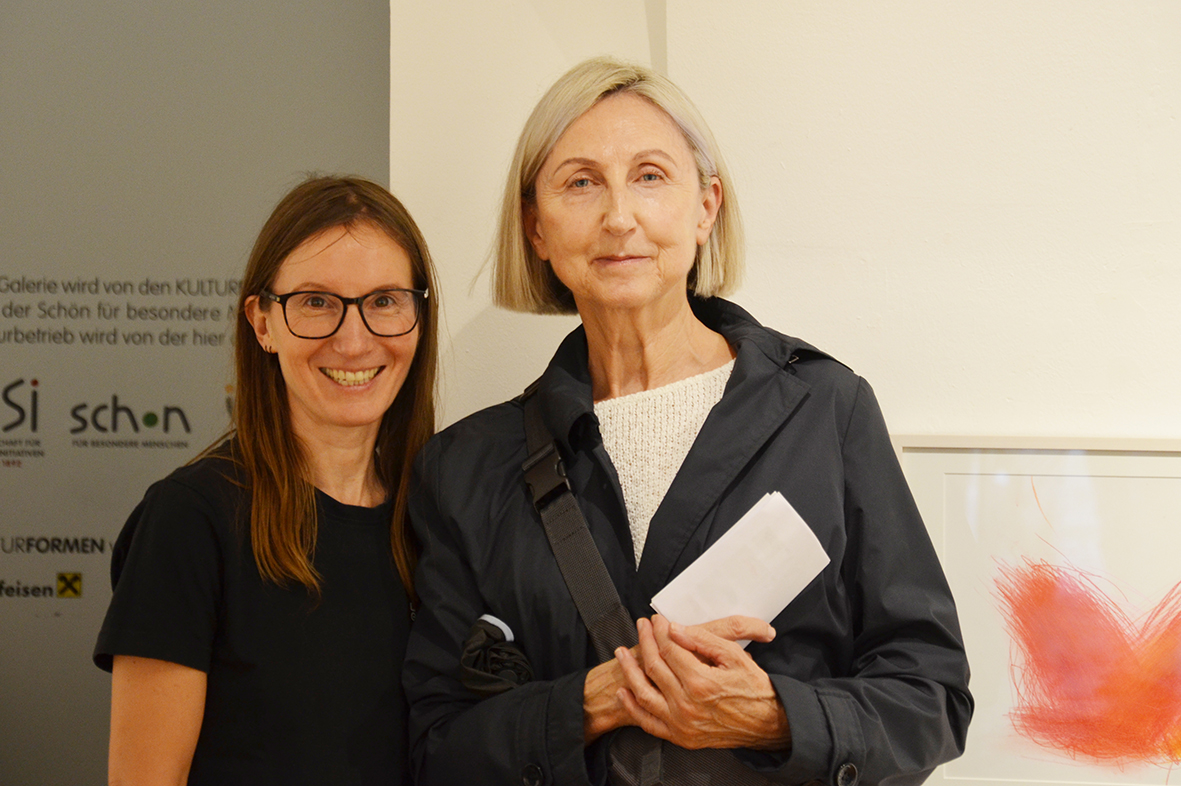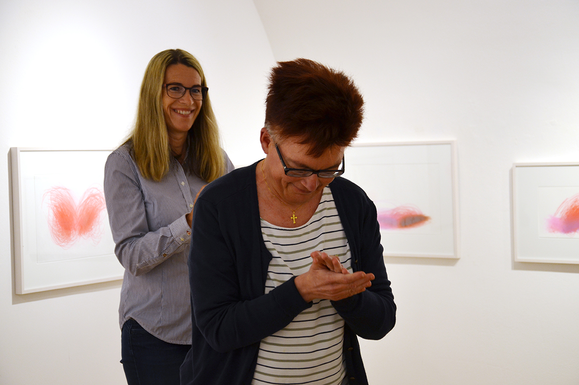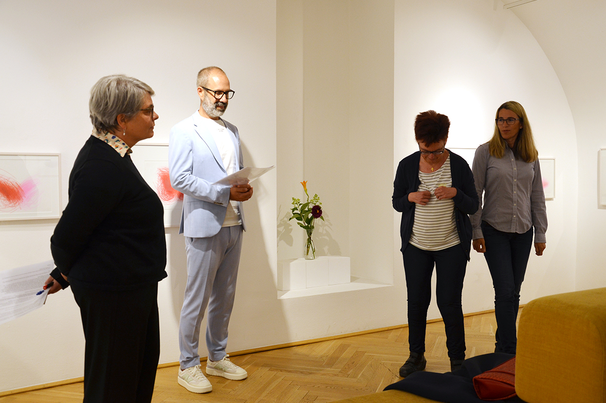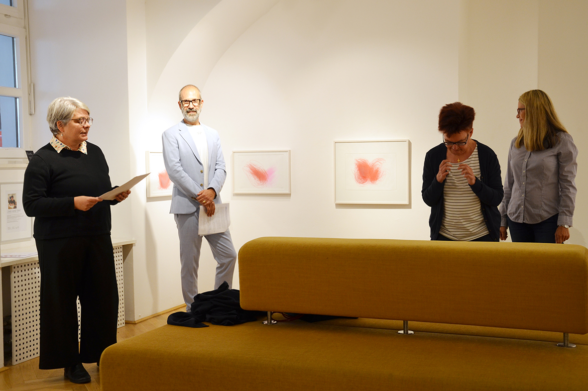 Einführende Worte zur Künstlerin selbst und zu ihrer Arbeit kamen von Mag. Joachim Reder, und Geschäftsführerin Mag. Sandra Wiesinger vom Institut Hartheim und von Mag. Kristiane Petersmann, der künstlerischen Leiterin der Galerie.