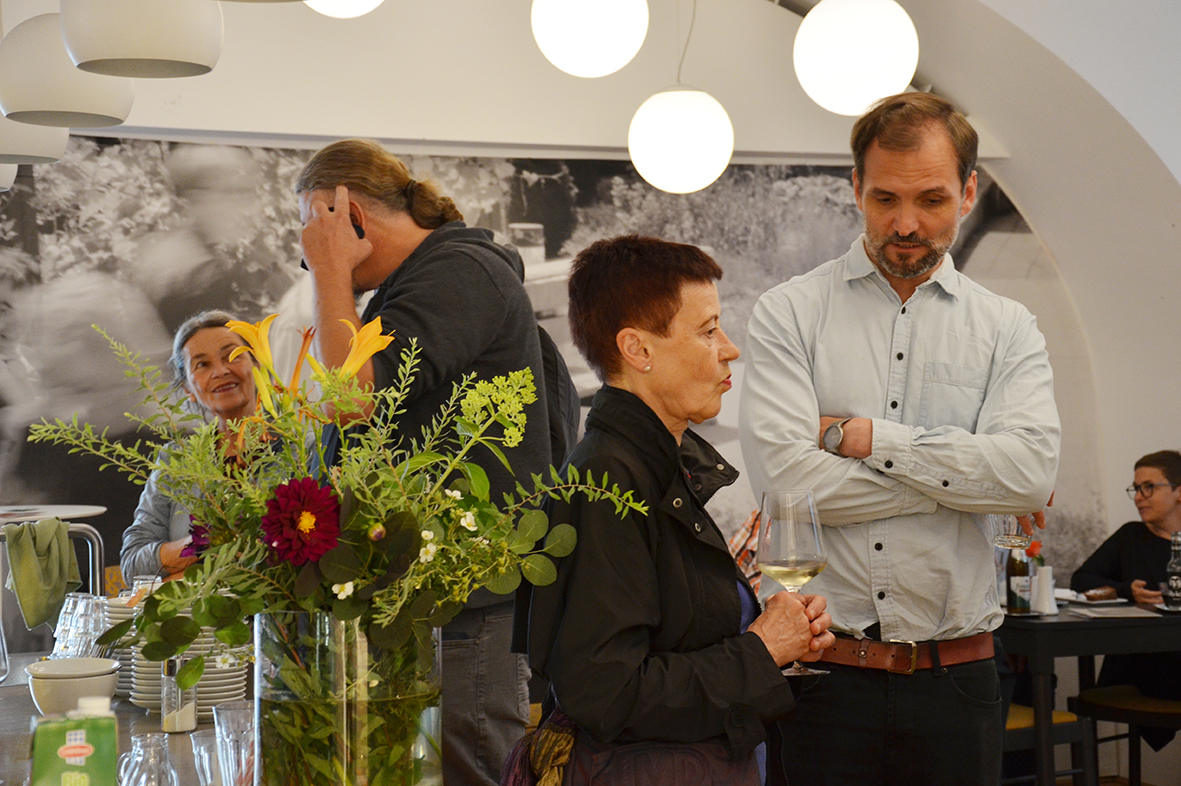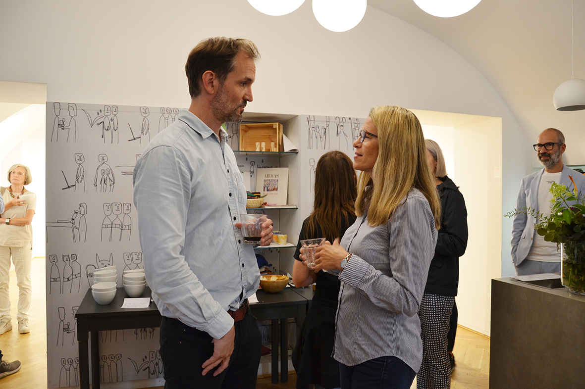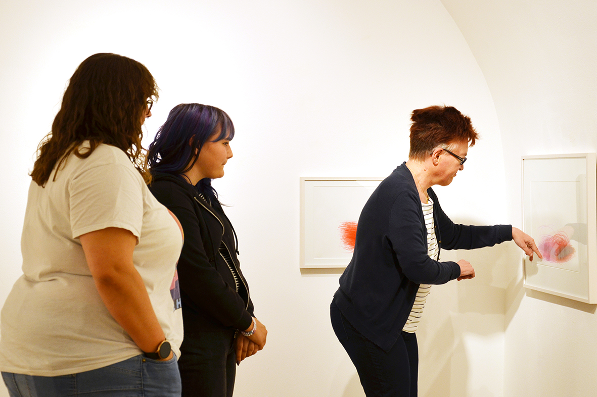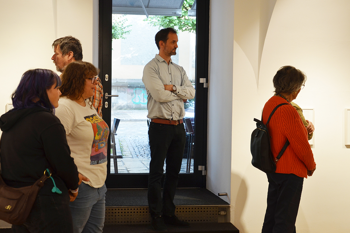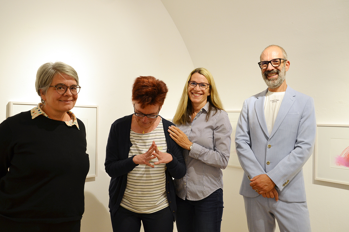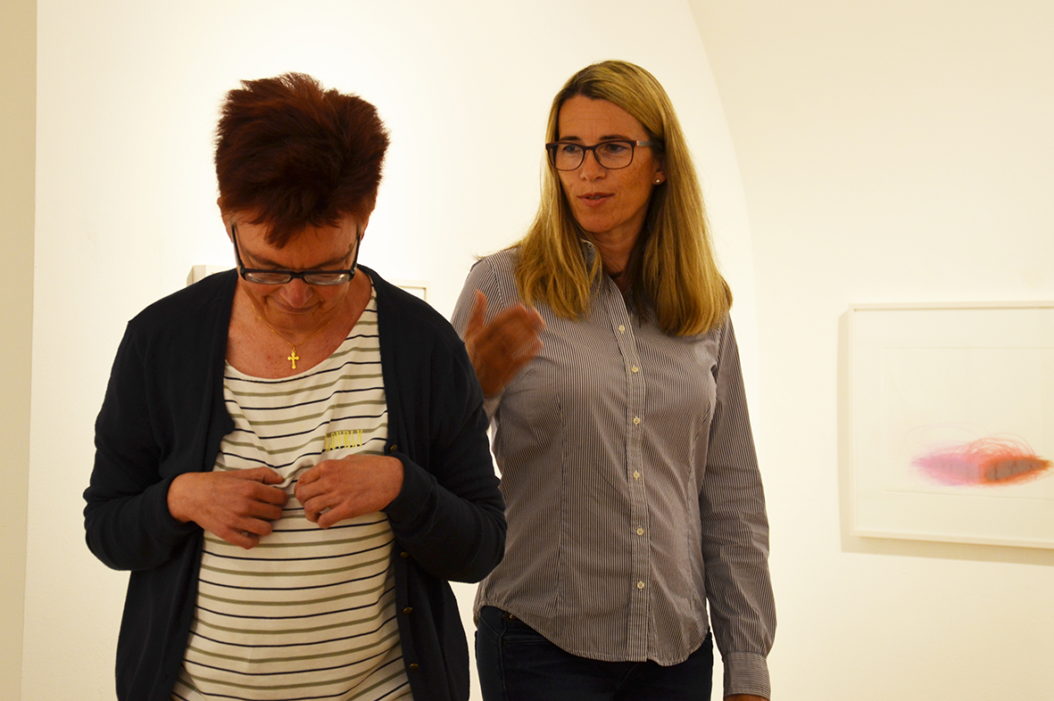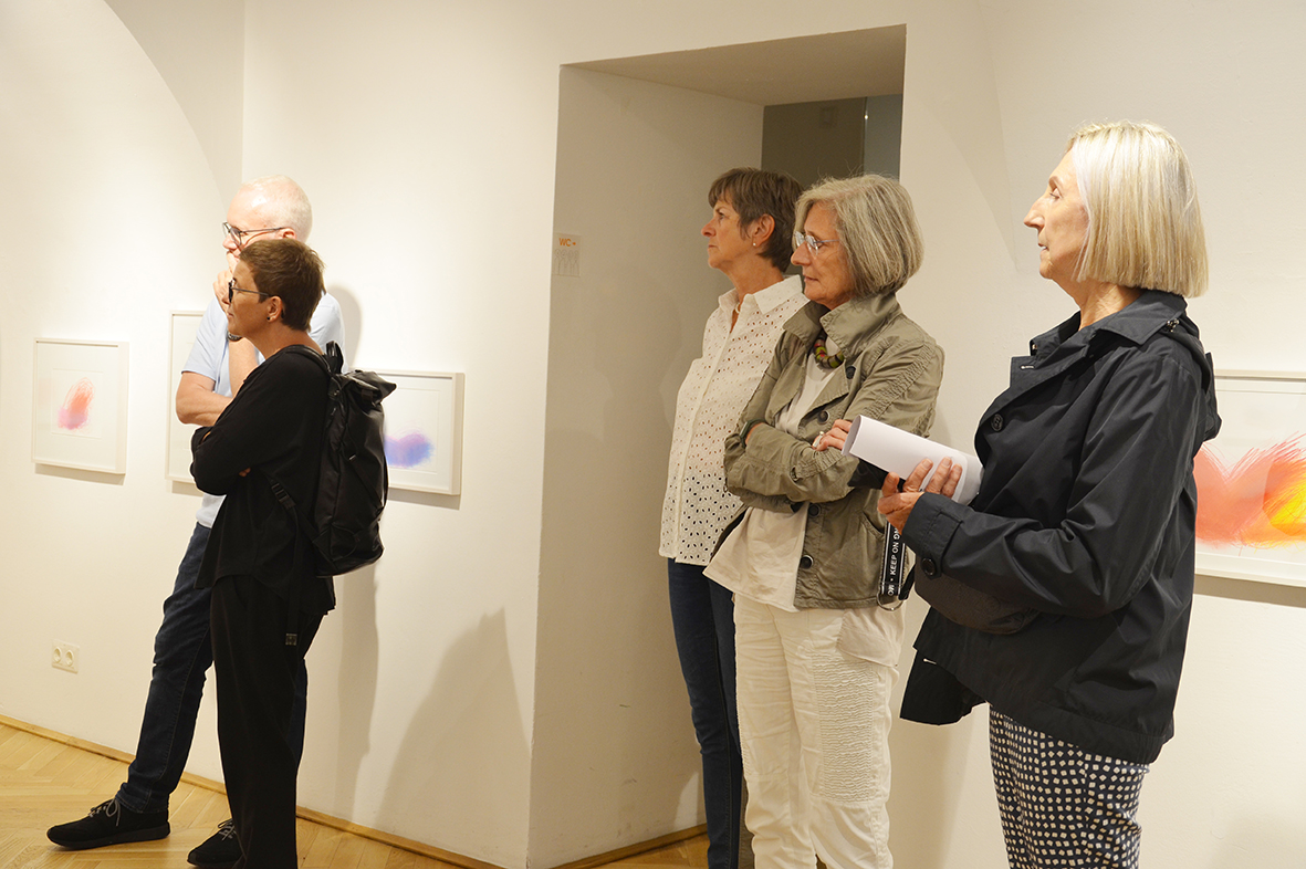Einführende Worte zur Künstlerin selbst und zu ihrer Arbeit kamen von Mag. Joachim Reder, und Geschäftsführerin Mag. Sandra Wiesinger vom Institut Hartheim und von Mag. Kristiane Petersmann, der künstlerischen Leiterin der Galerie.